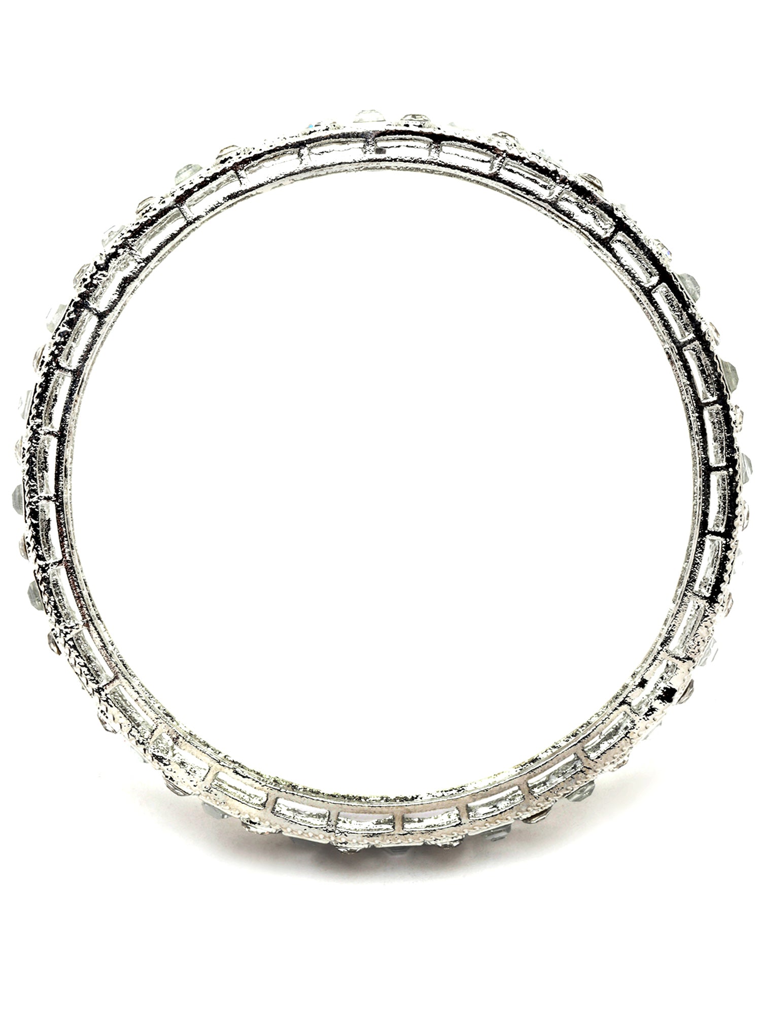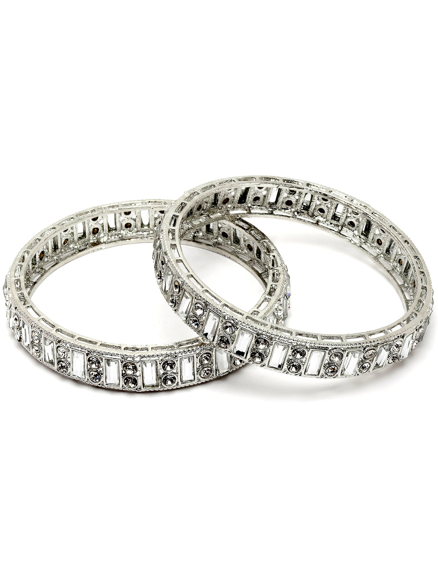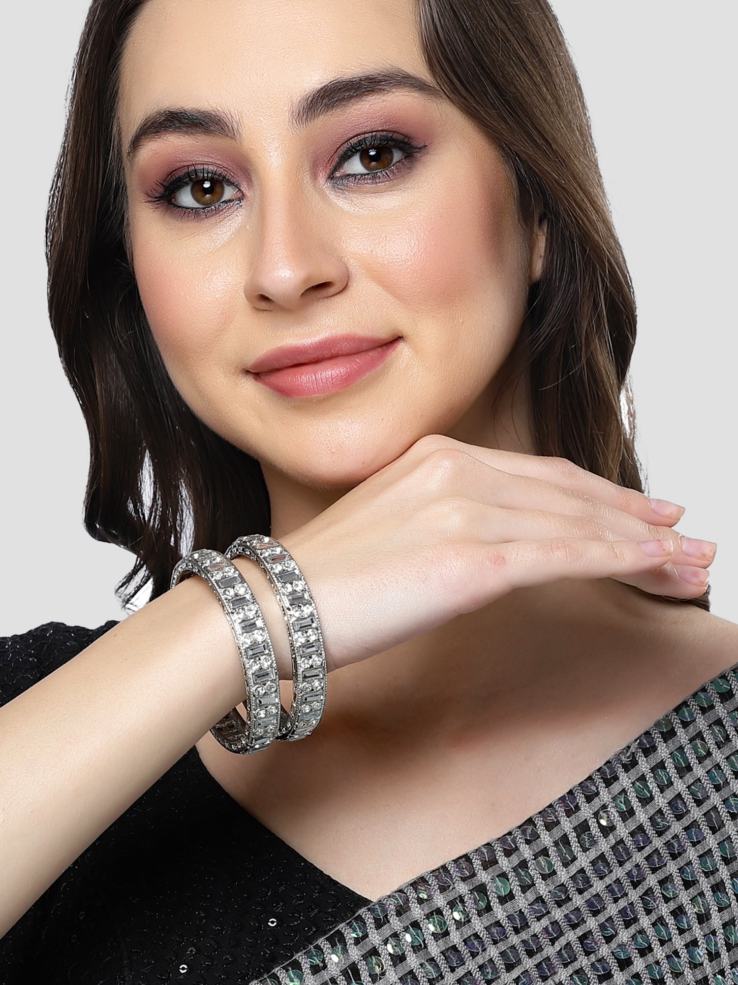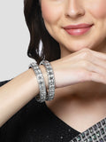 Karatcart Silver Plated Set of 2 Cubic Zirconia Studded Bangles for Women