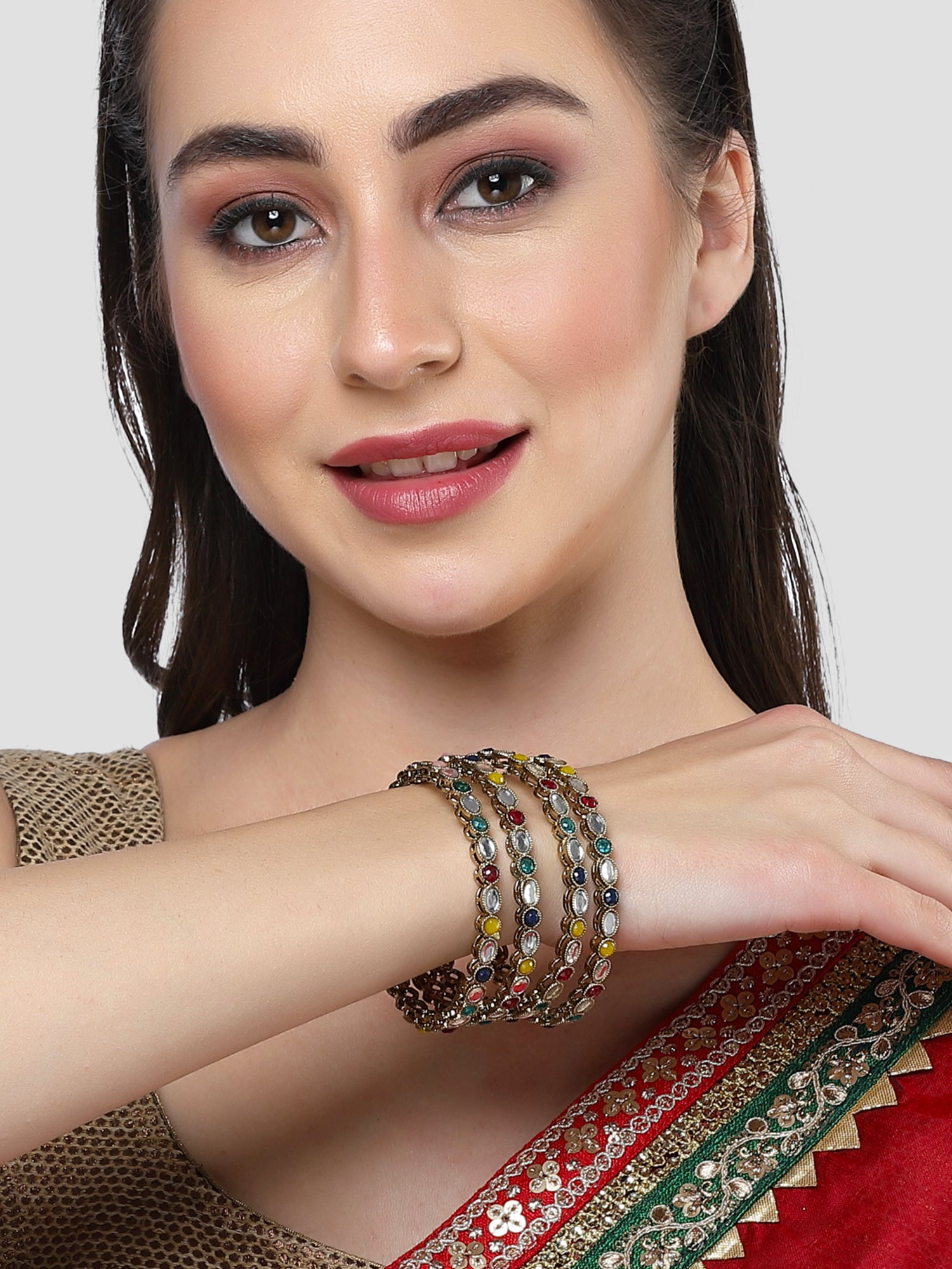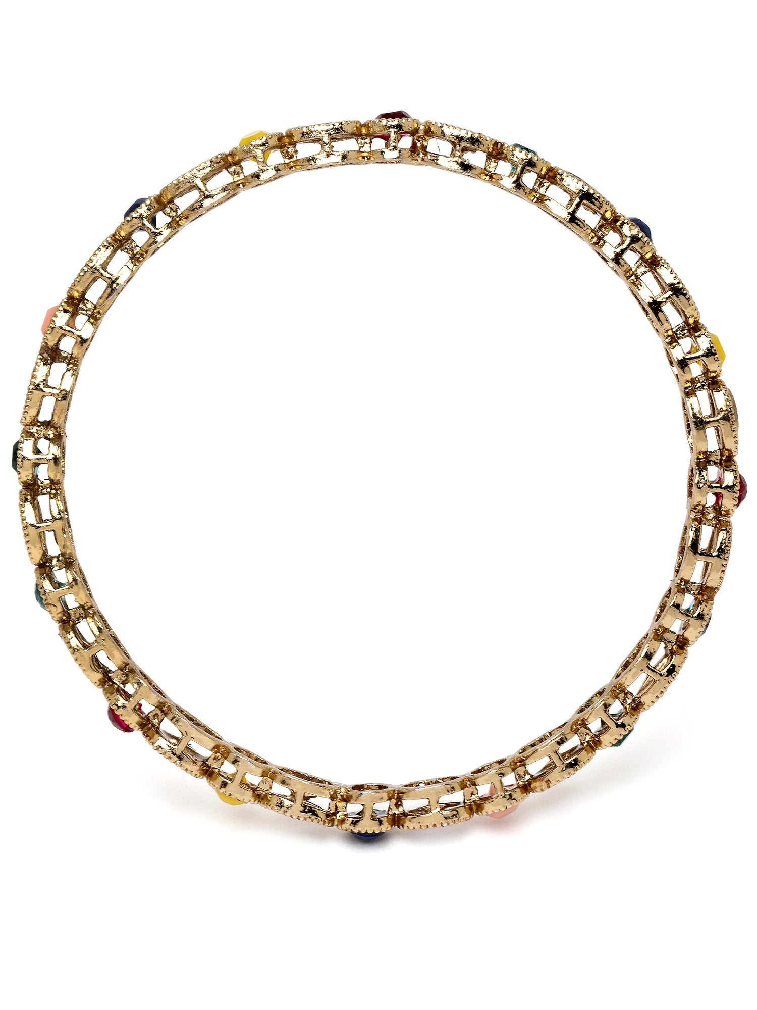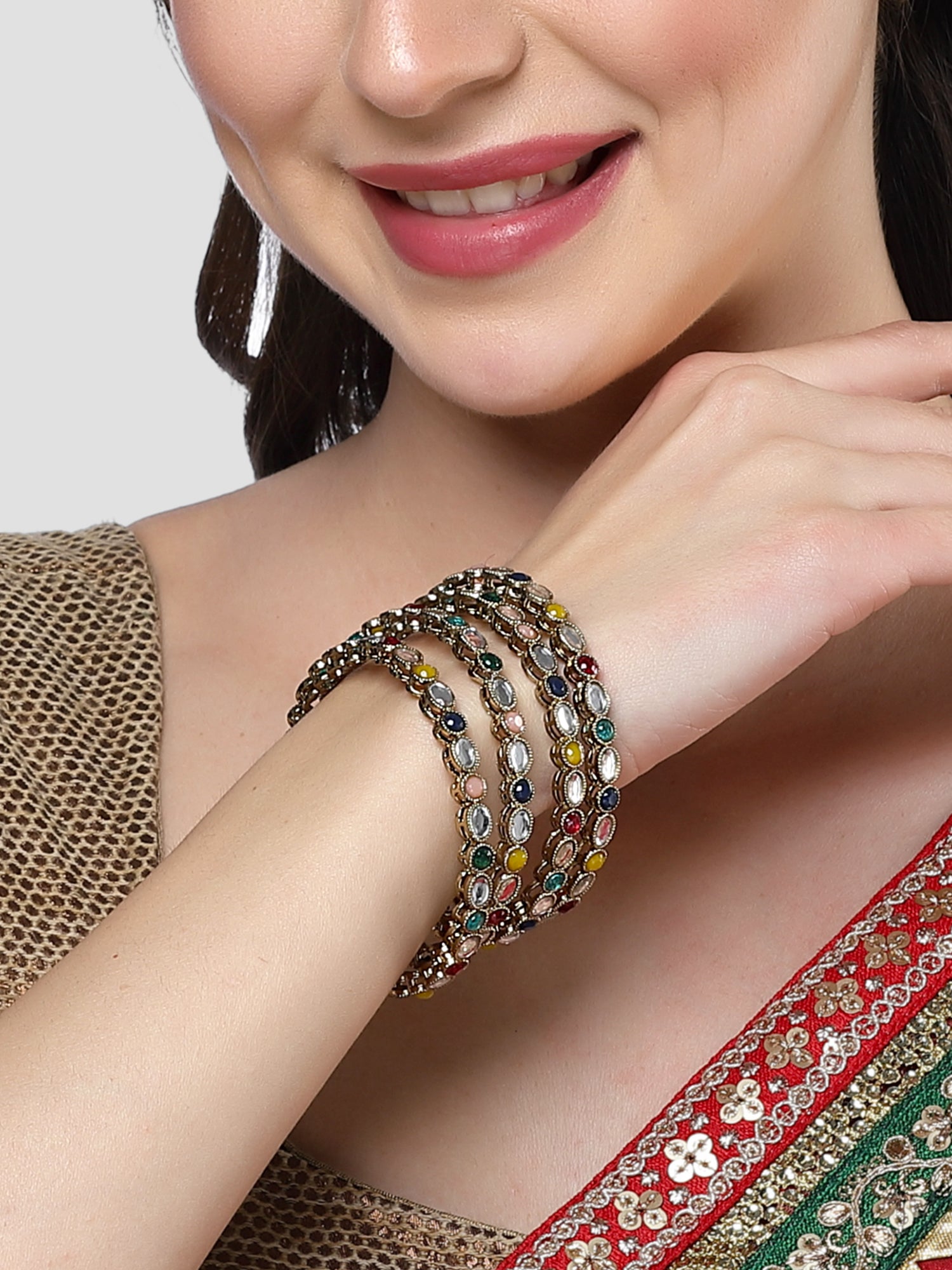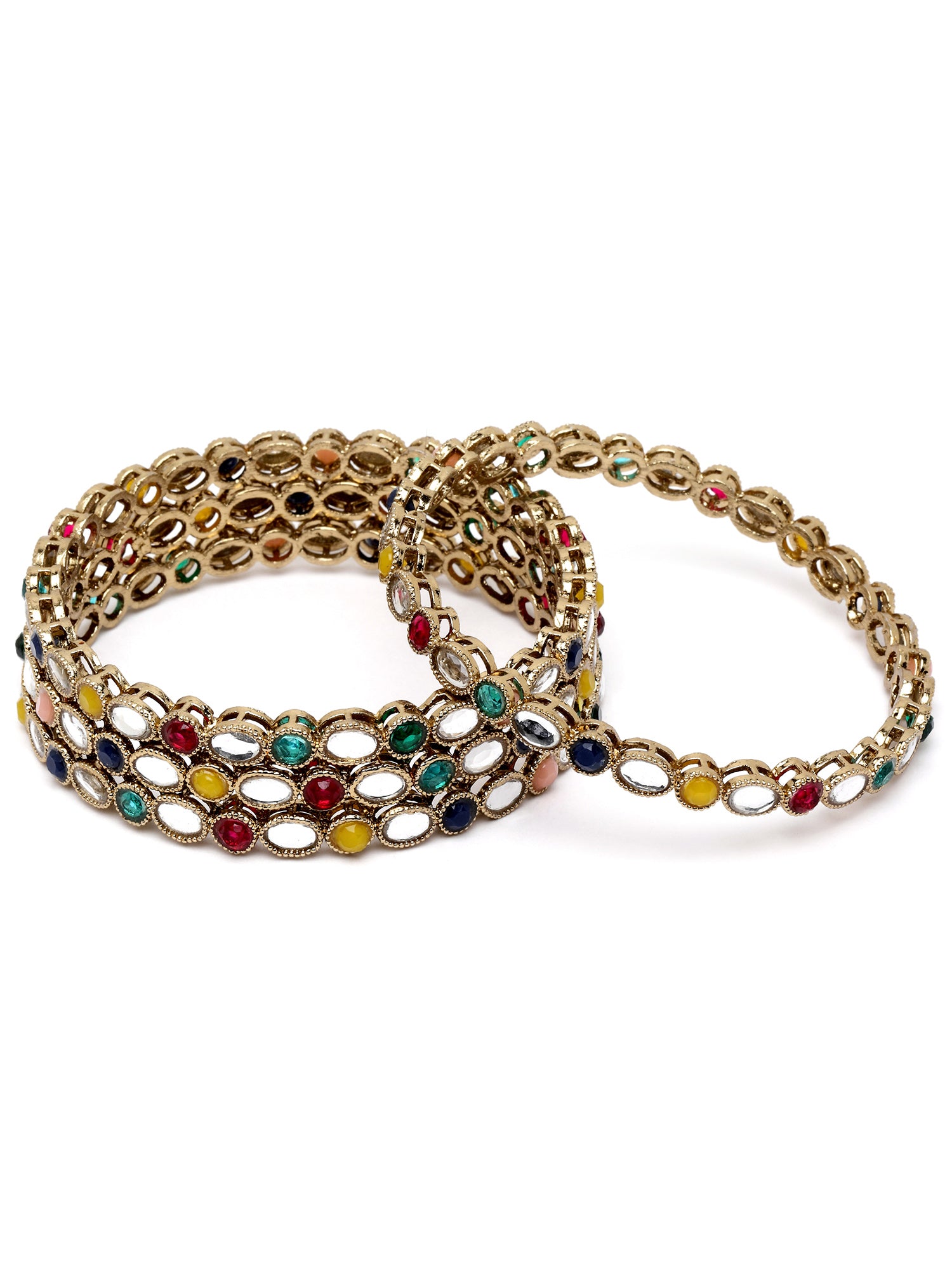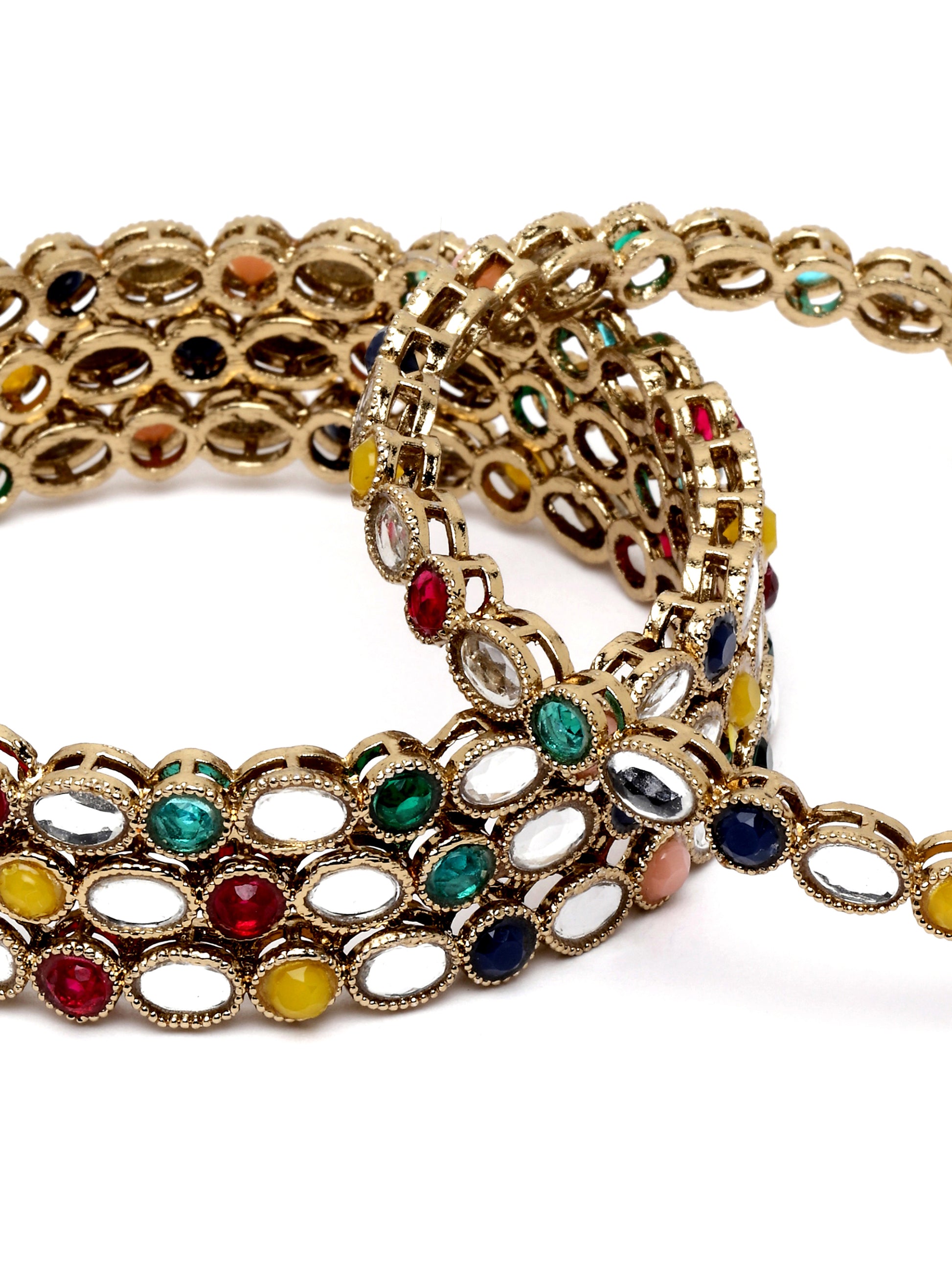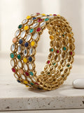 Karatcart Gold Plated Set of 4 Oval Shape Multicolor Stone Studded Bangles for Women