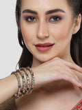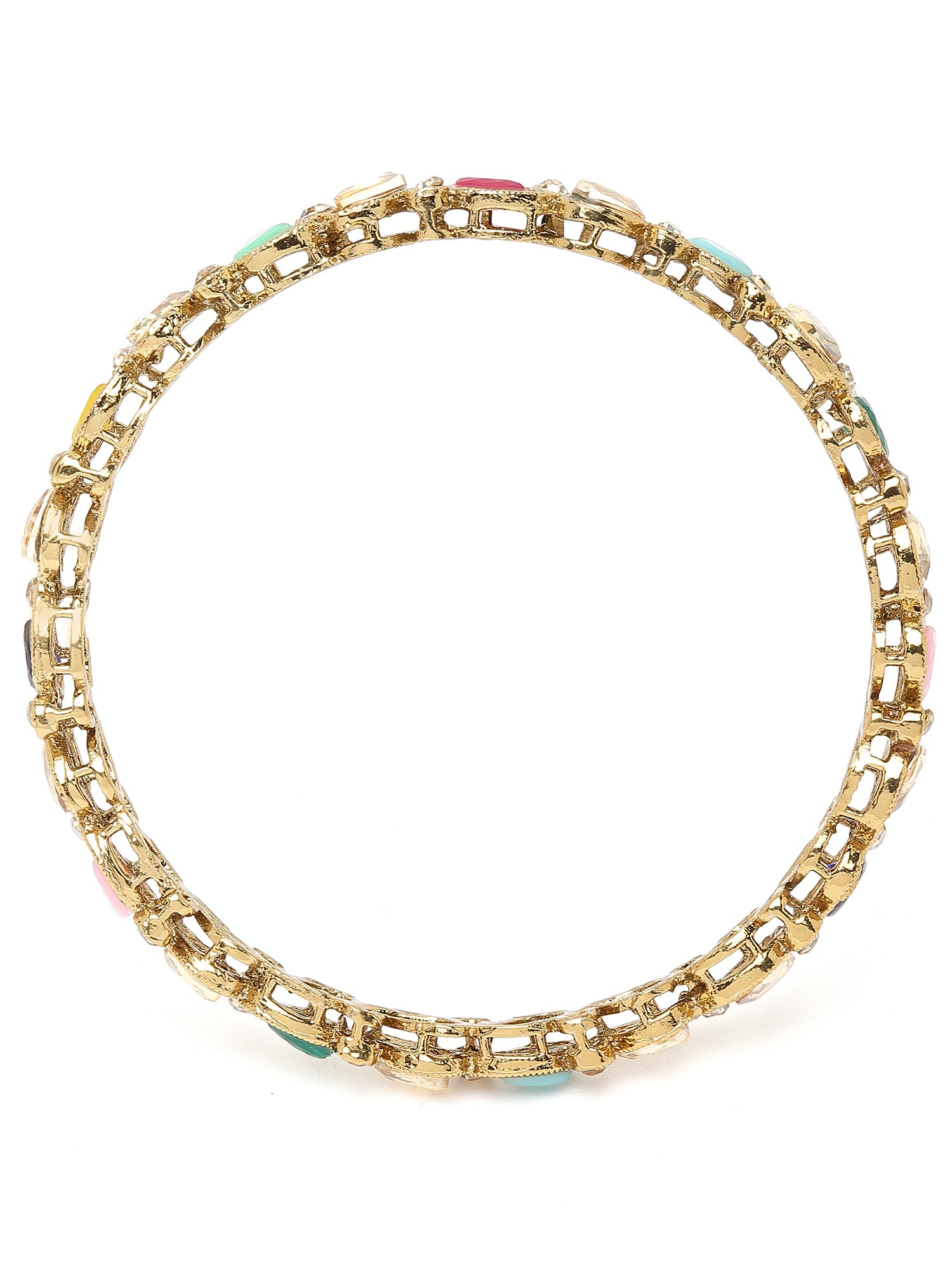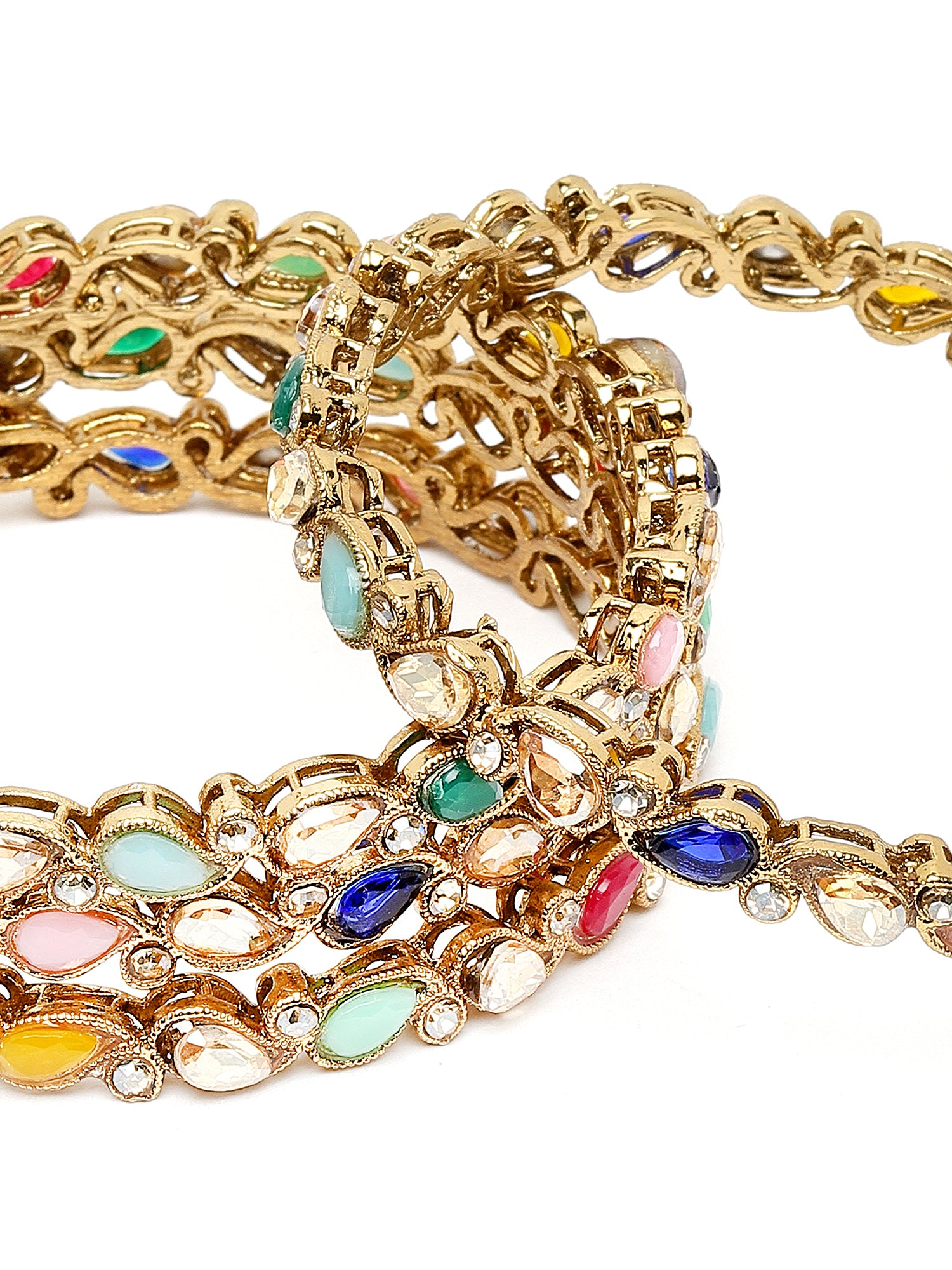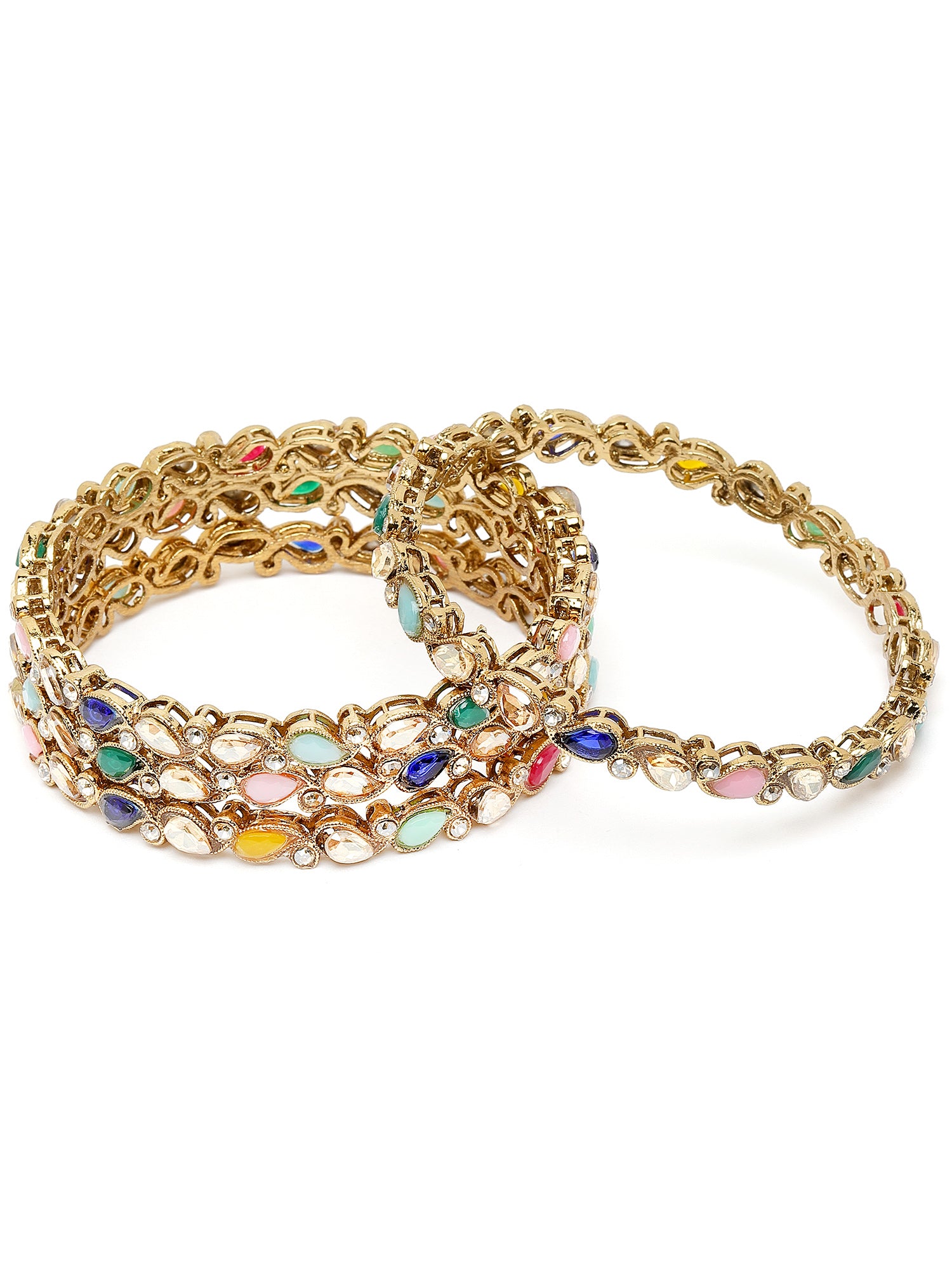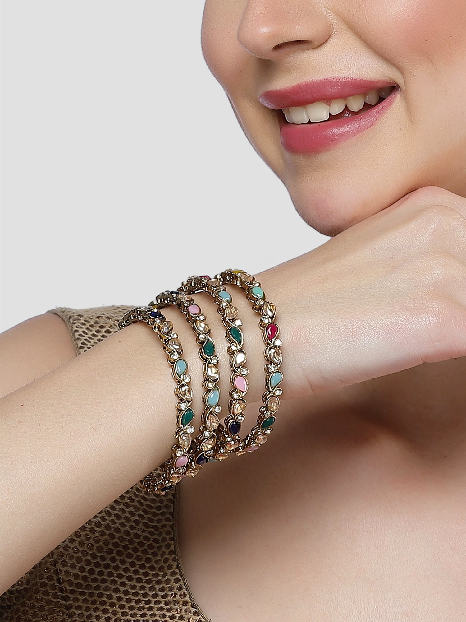 Karatcart Set of 4 Gold Plated Drop Shape Multicolor Stone Studded Bangles for Women