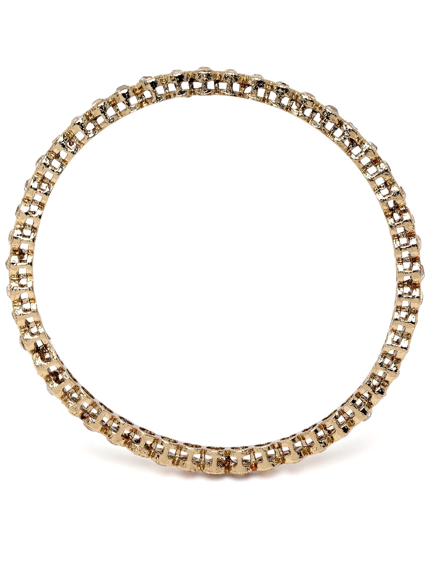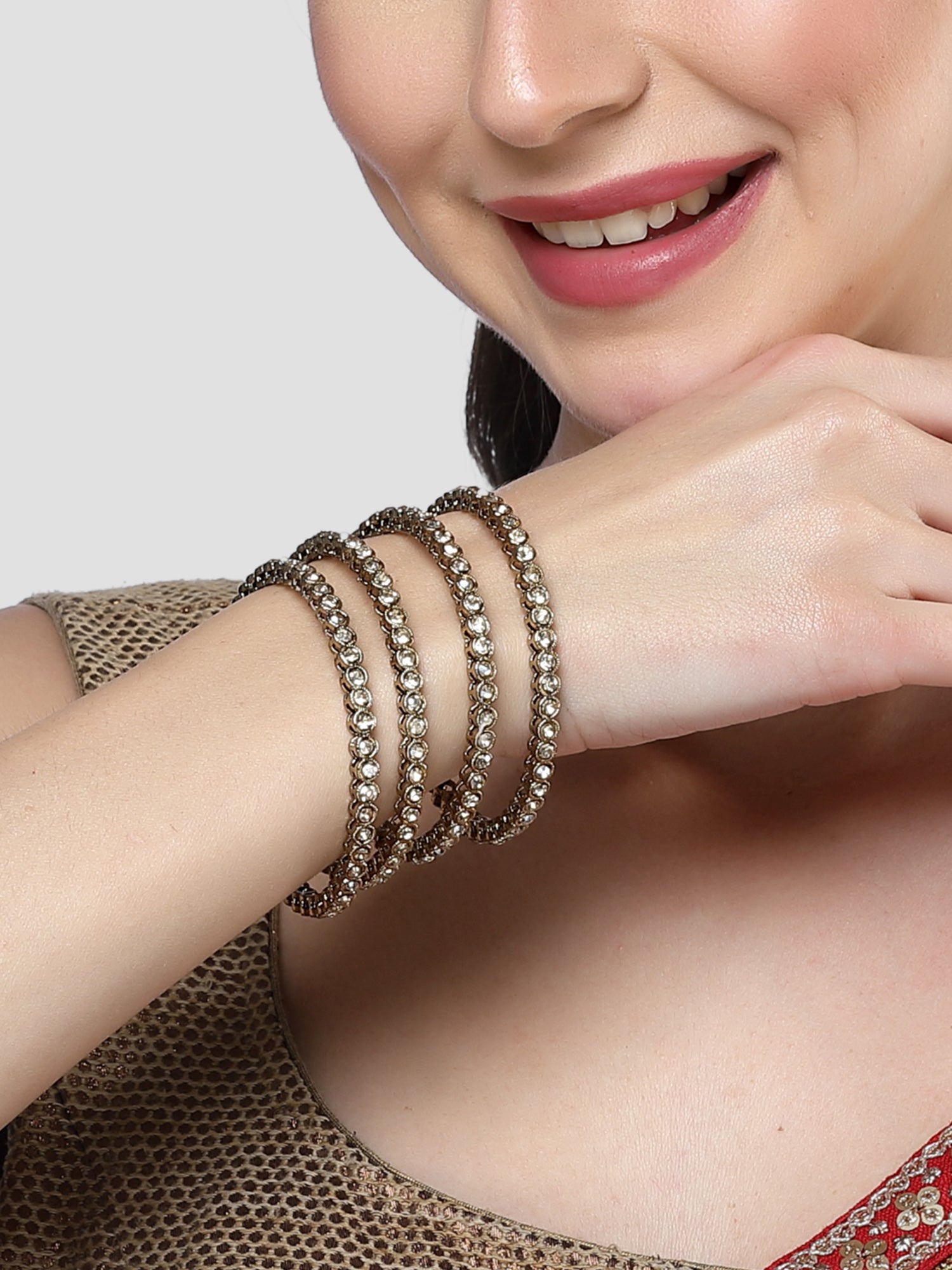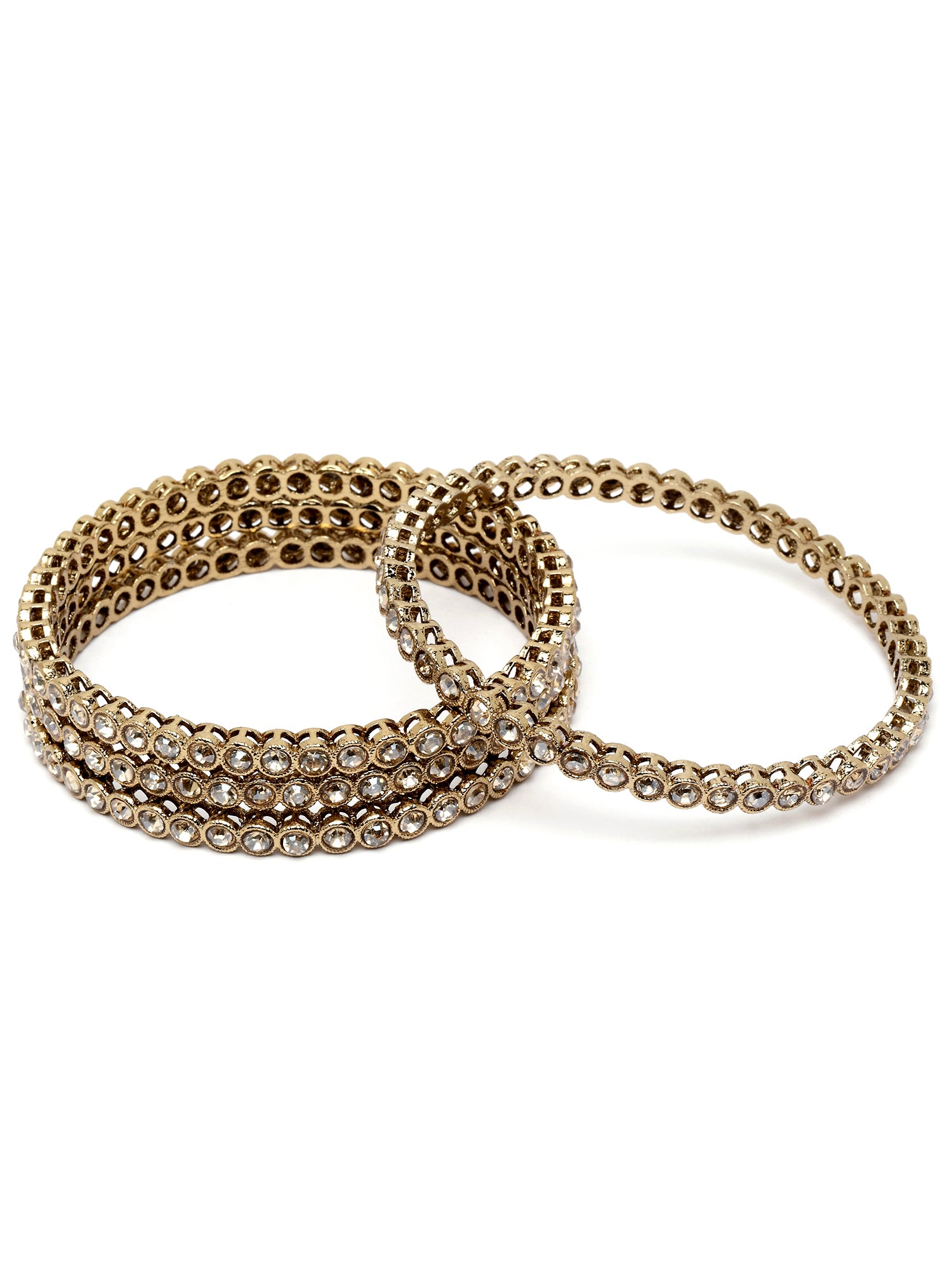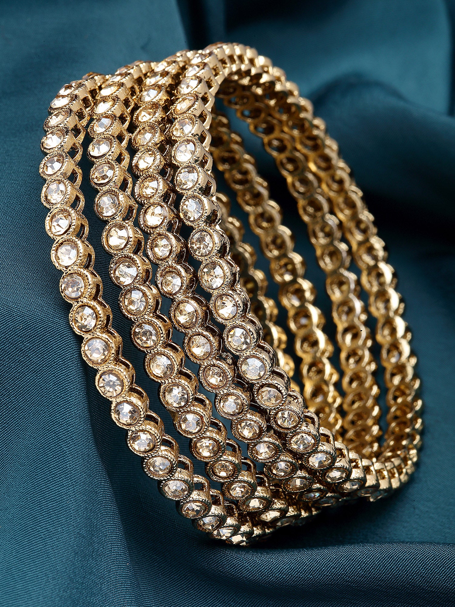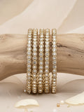 Karatcart Set of 4 Gold Plated Round Shape Golden Kundan Studded Bangles for Women