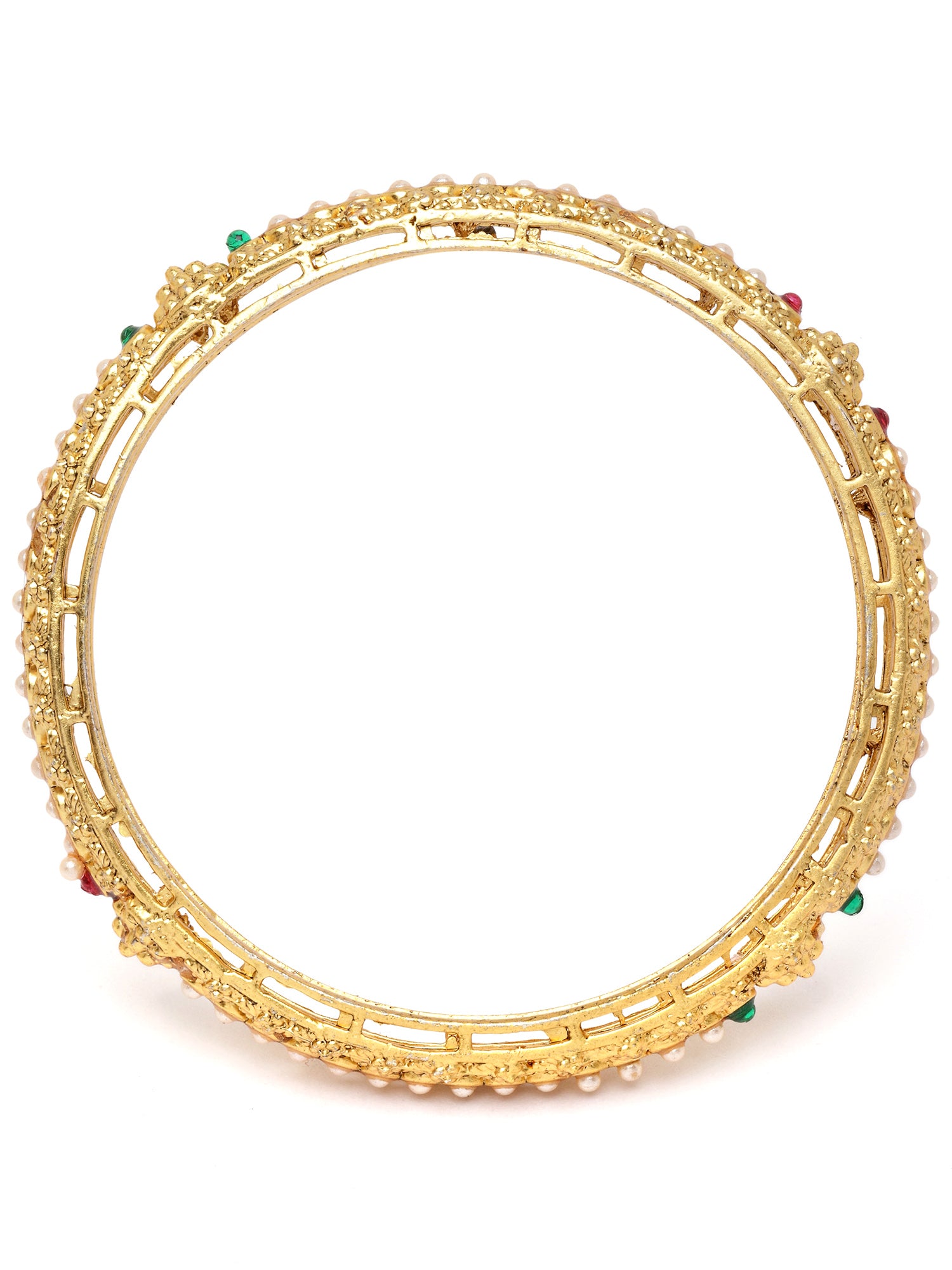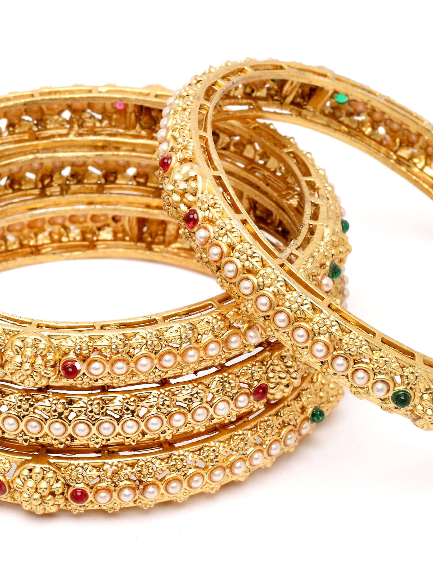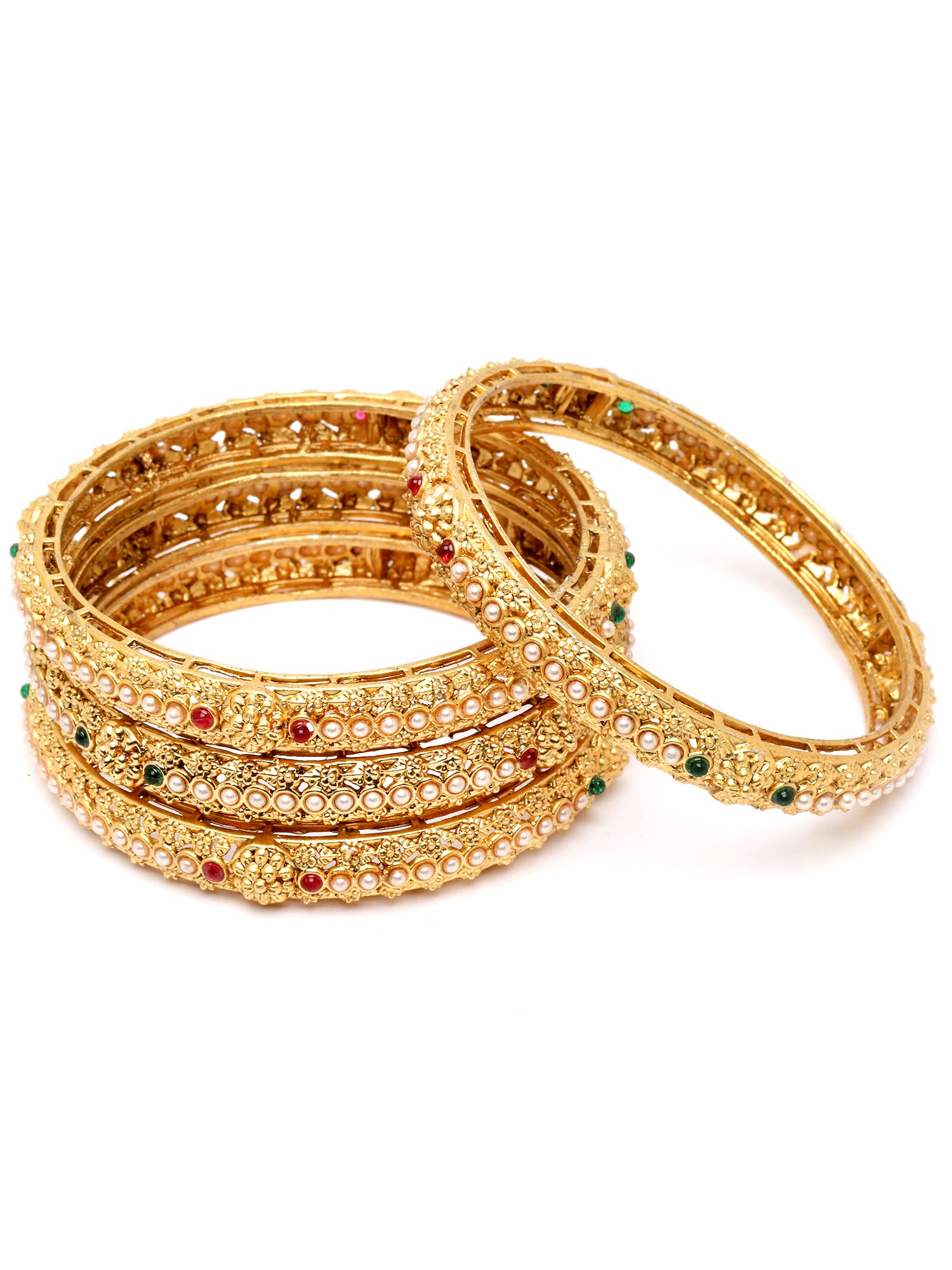 Karatcart Set of 4 Gold Plated Pearl Ball Studded Bangles for Women