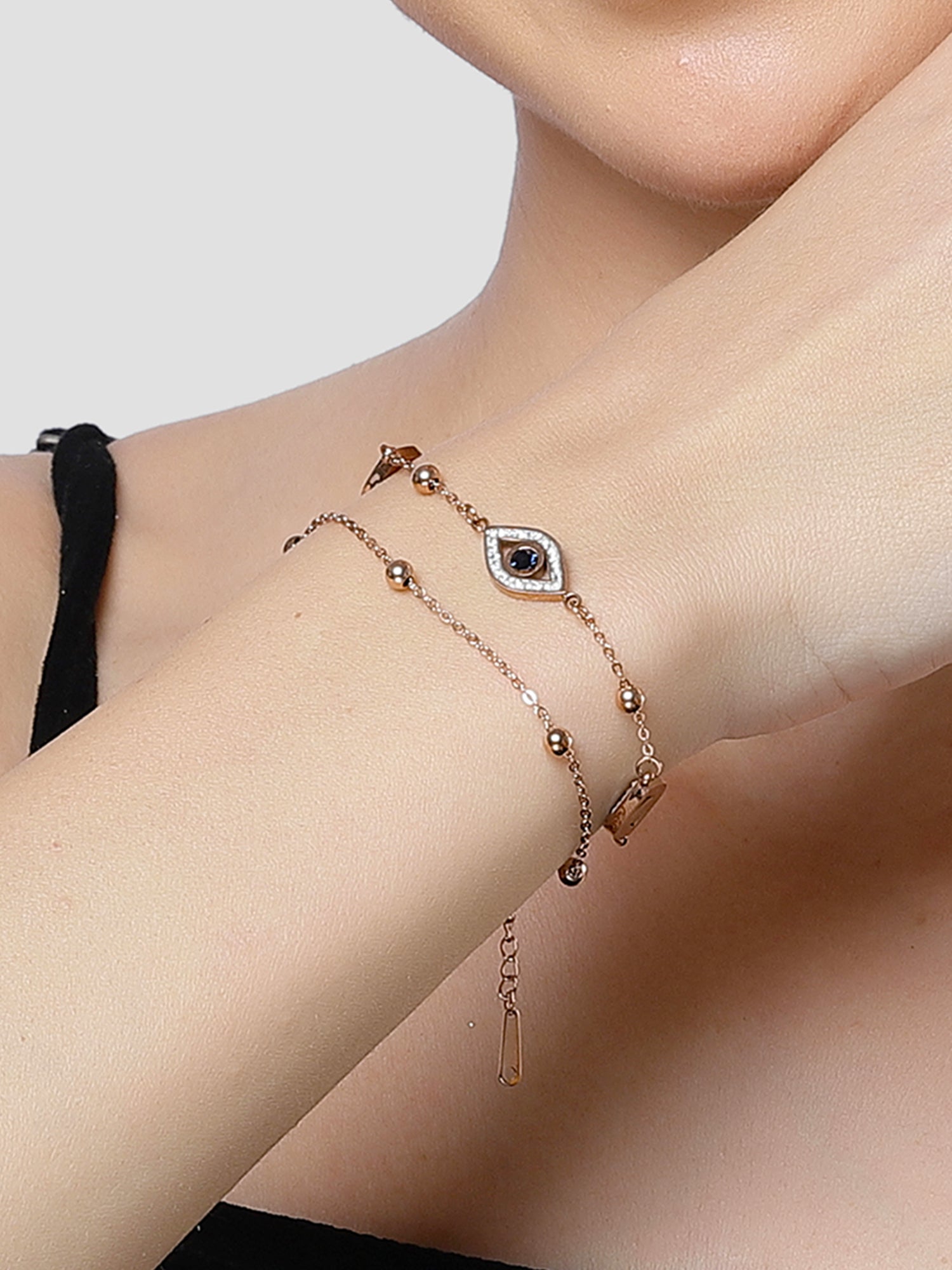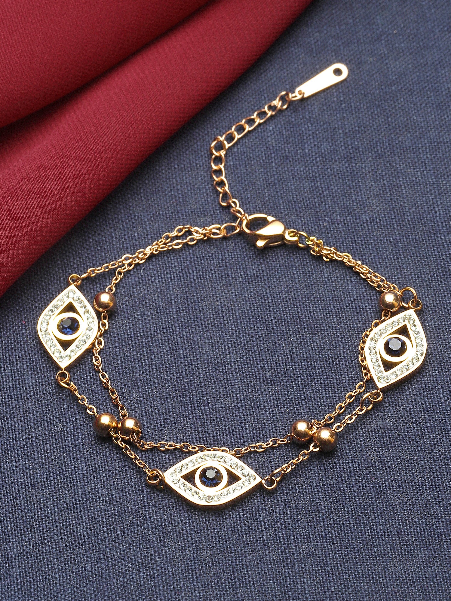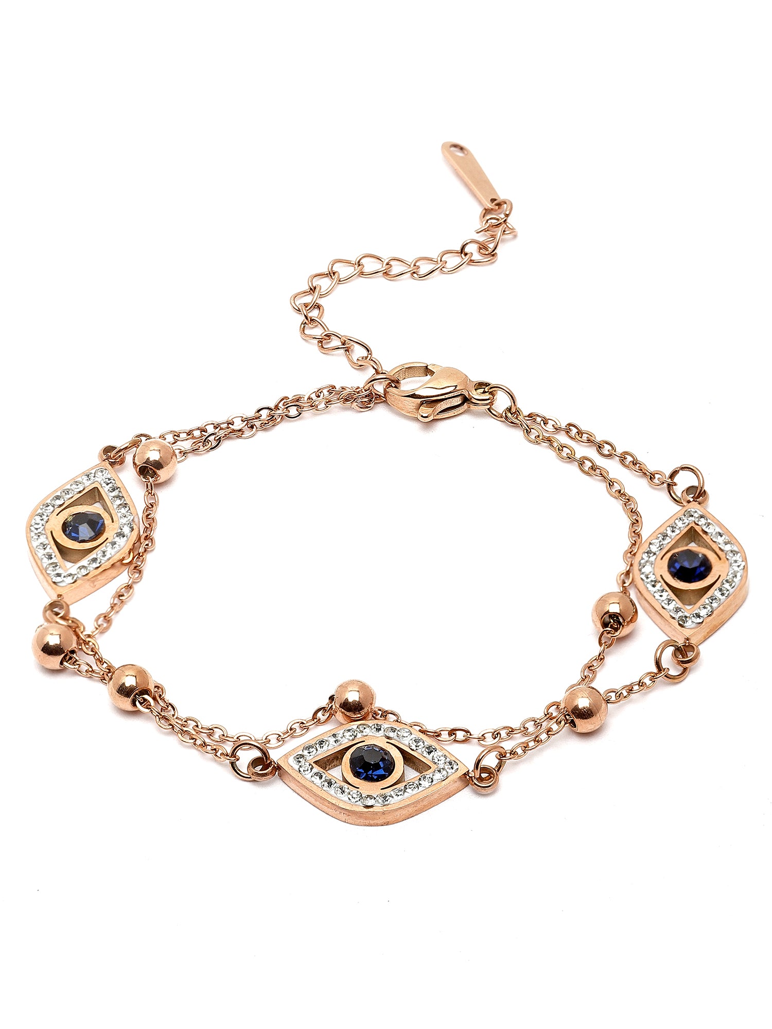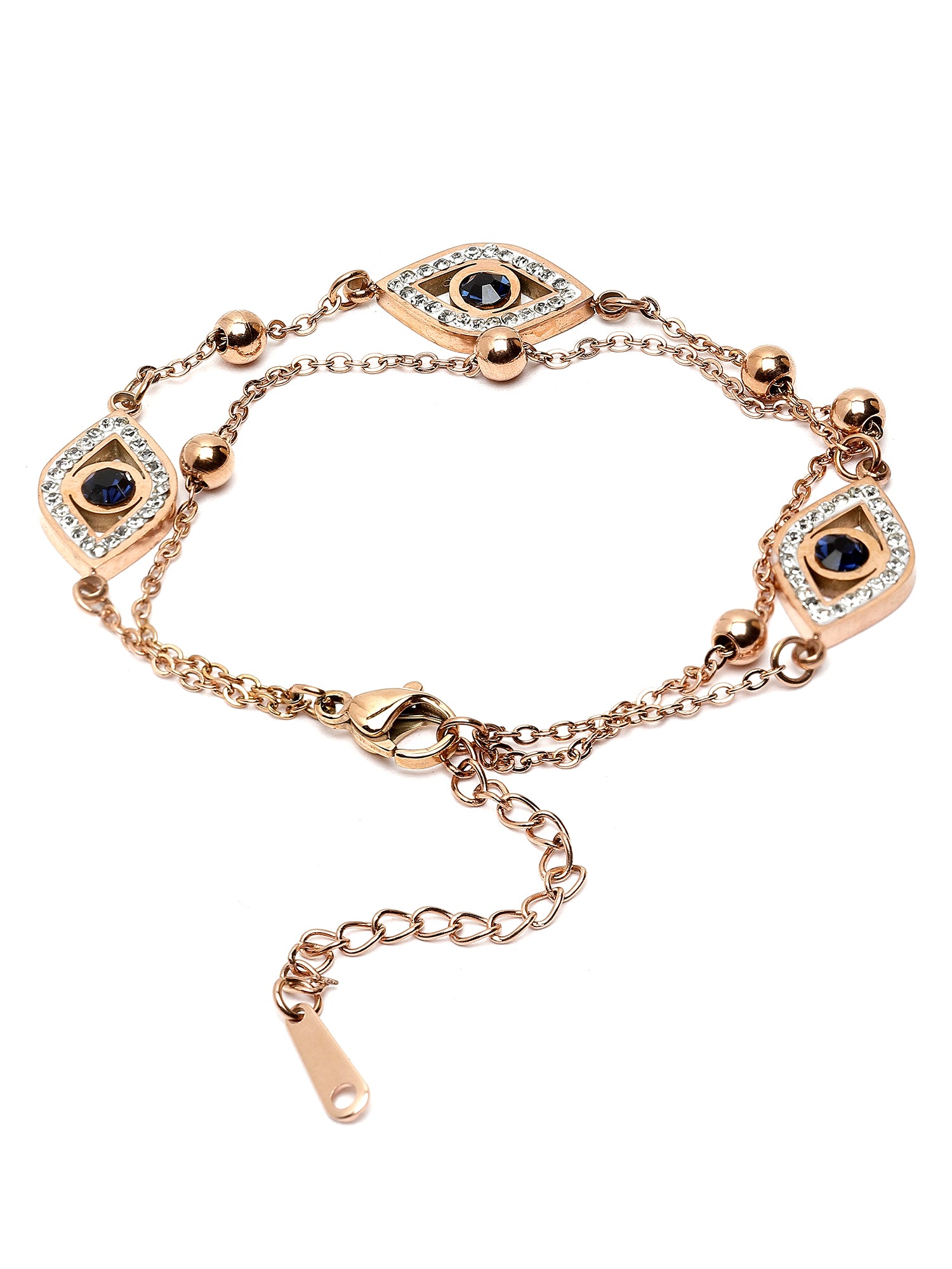 Bohey by KARATCART Rose Gold Plated Cubic Zirconia Studded Adjustable Evil Eye Bracelet for Women