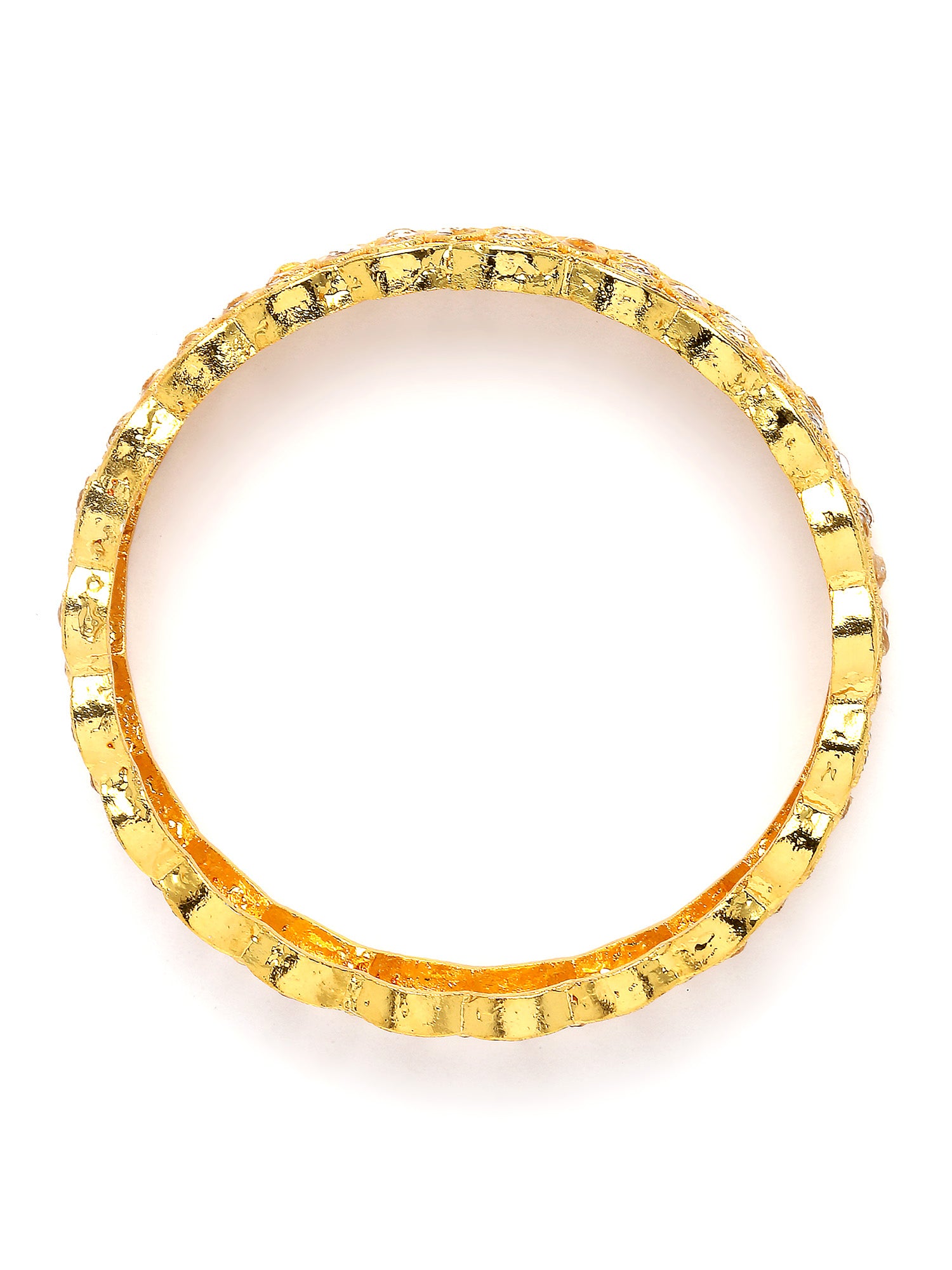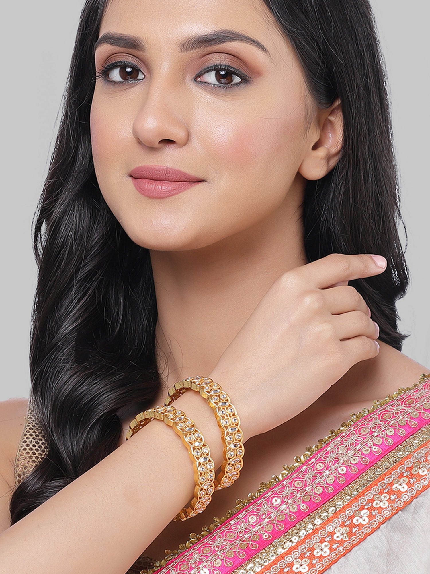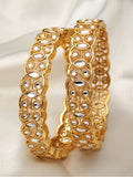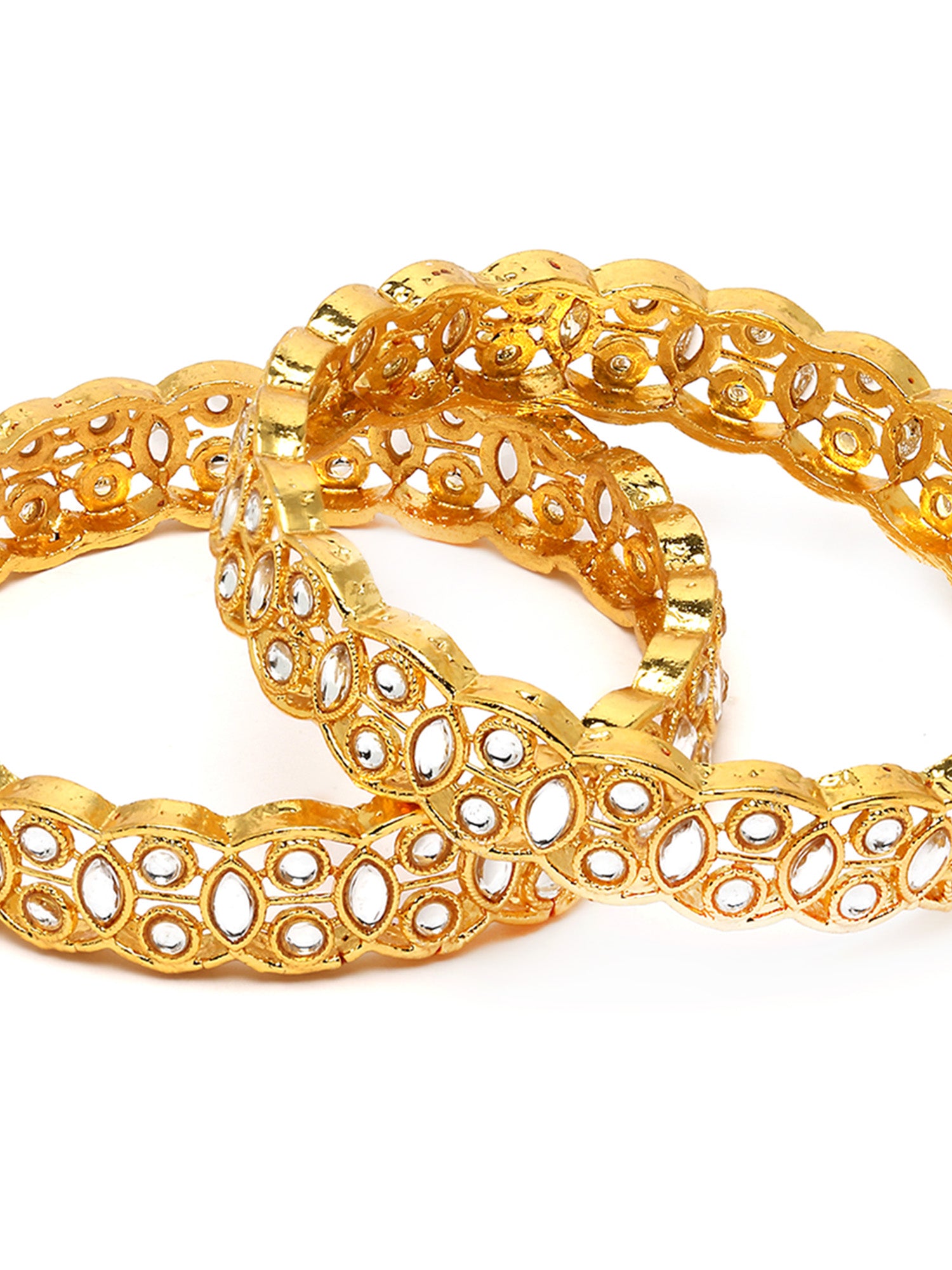 Karatcart Set of 2 Gold Plated Oval Design Kundan Bangles for Women