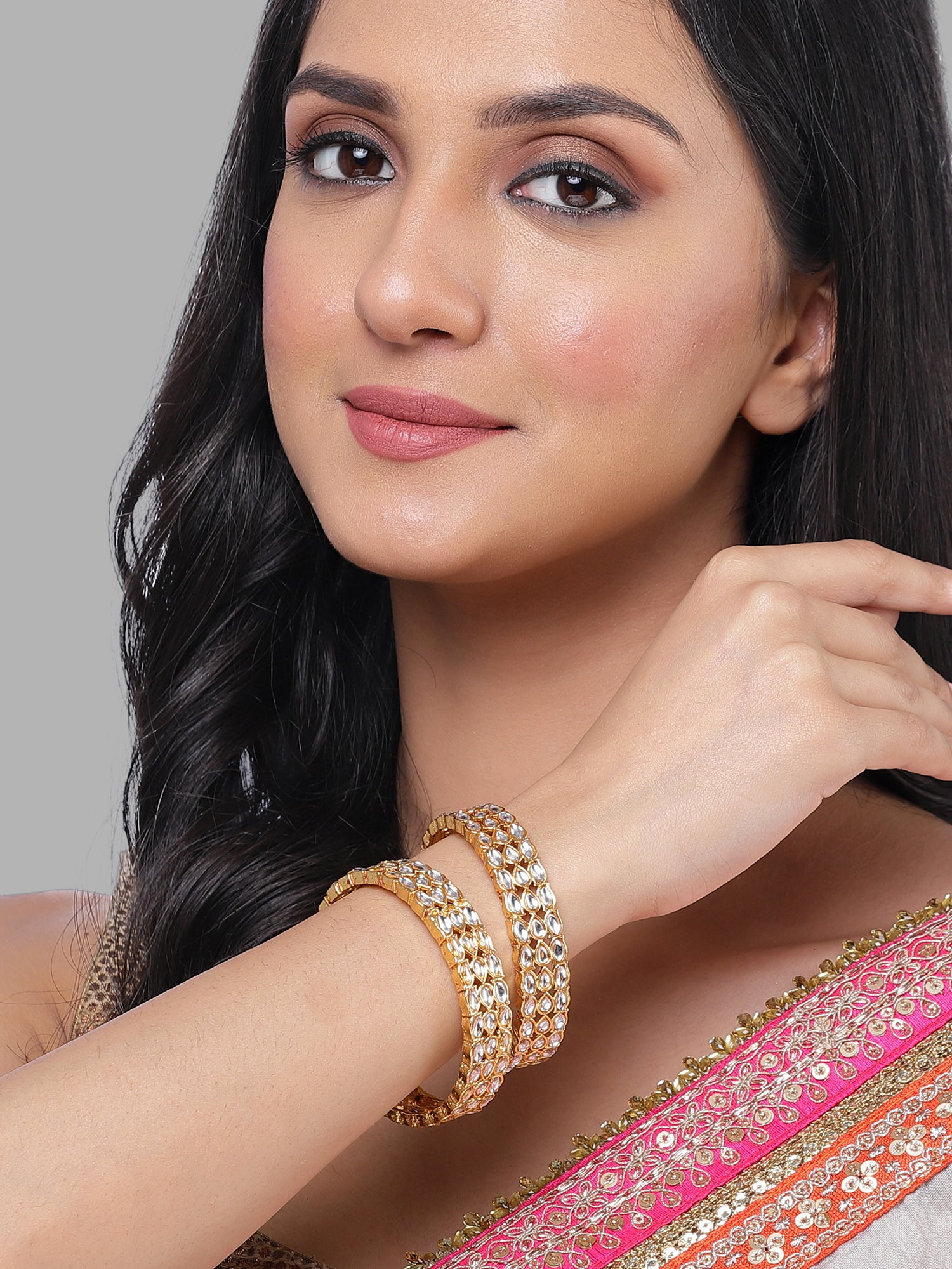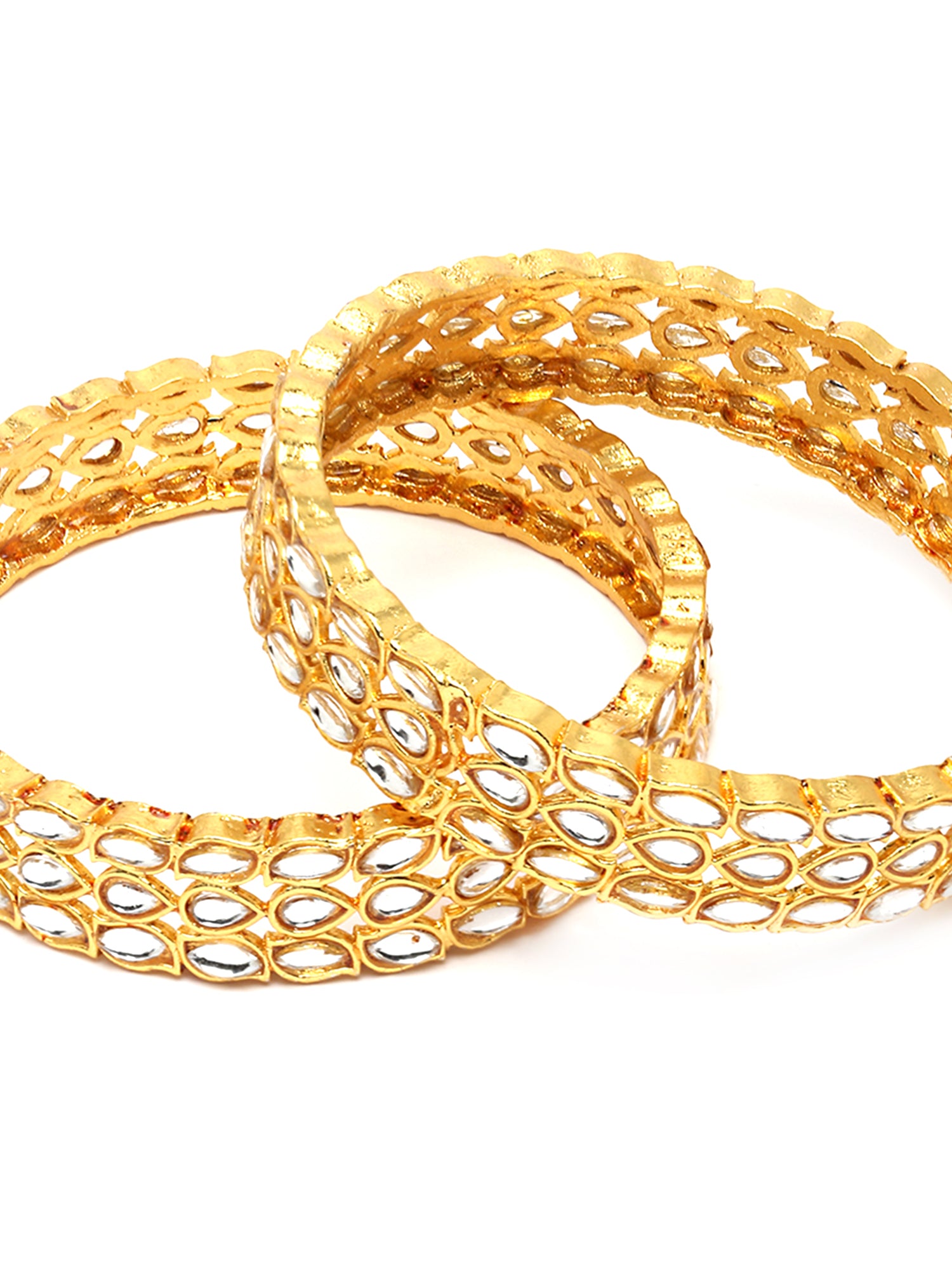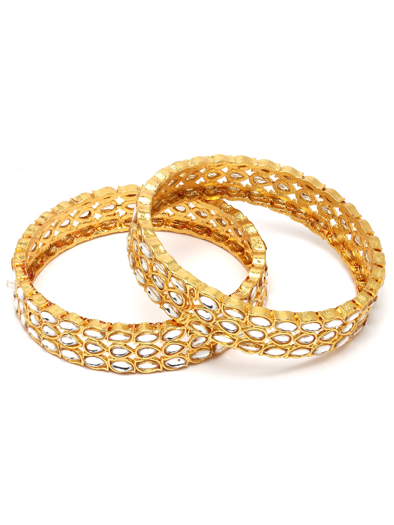 Karatcart Set of 2 Gold Plated Drop Shape Bangles for Women