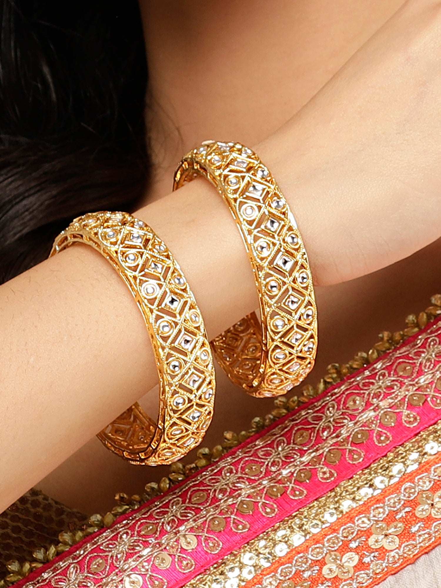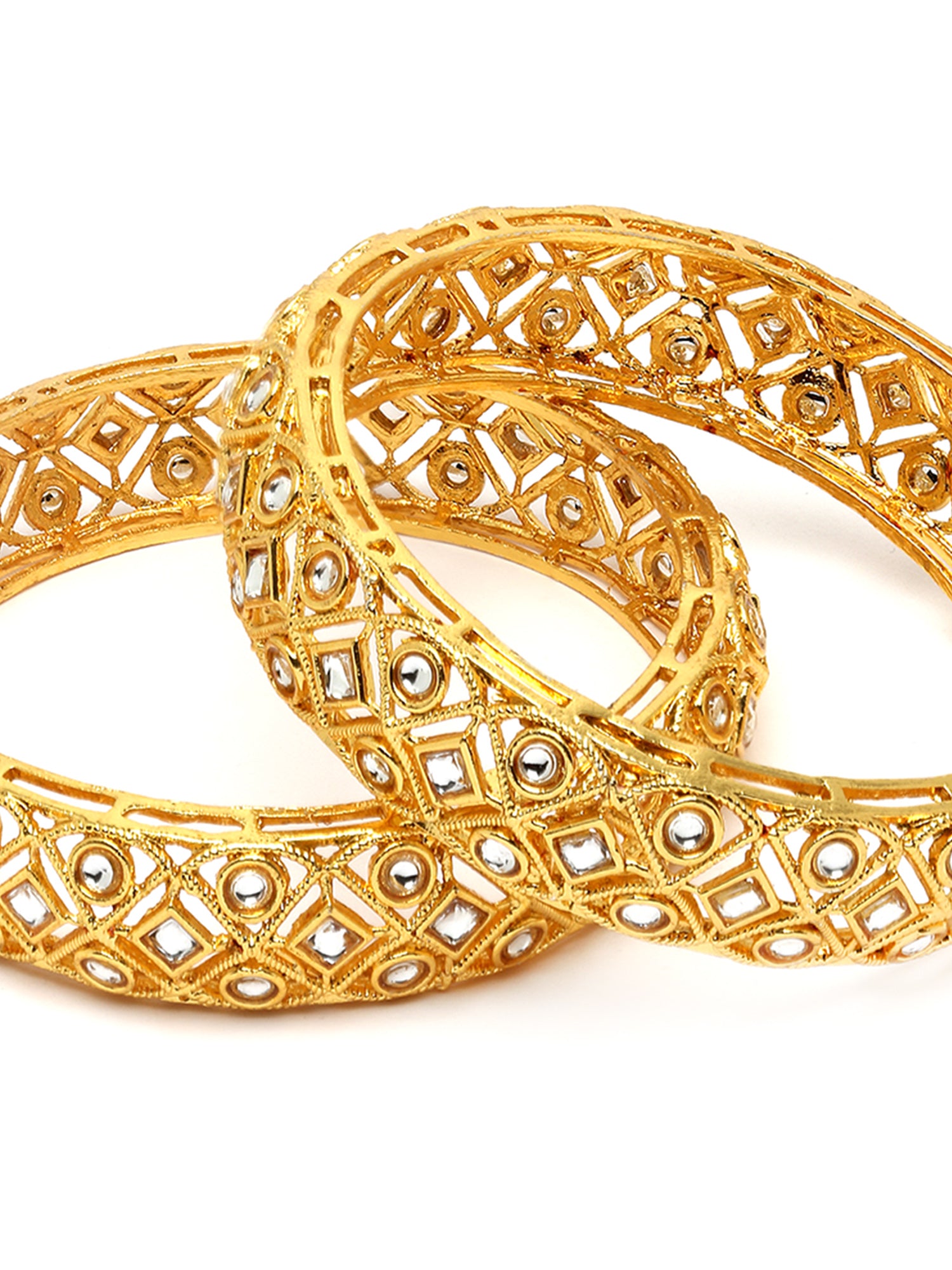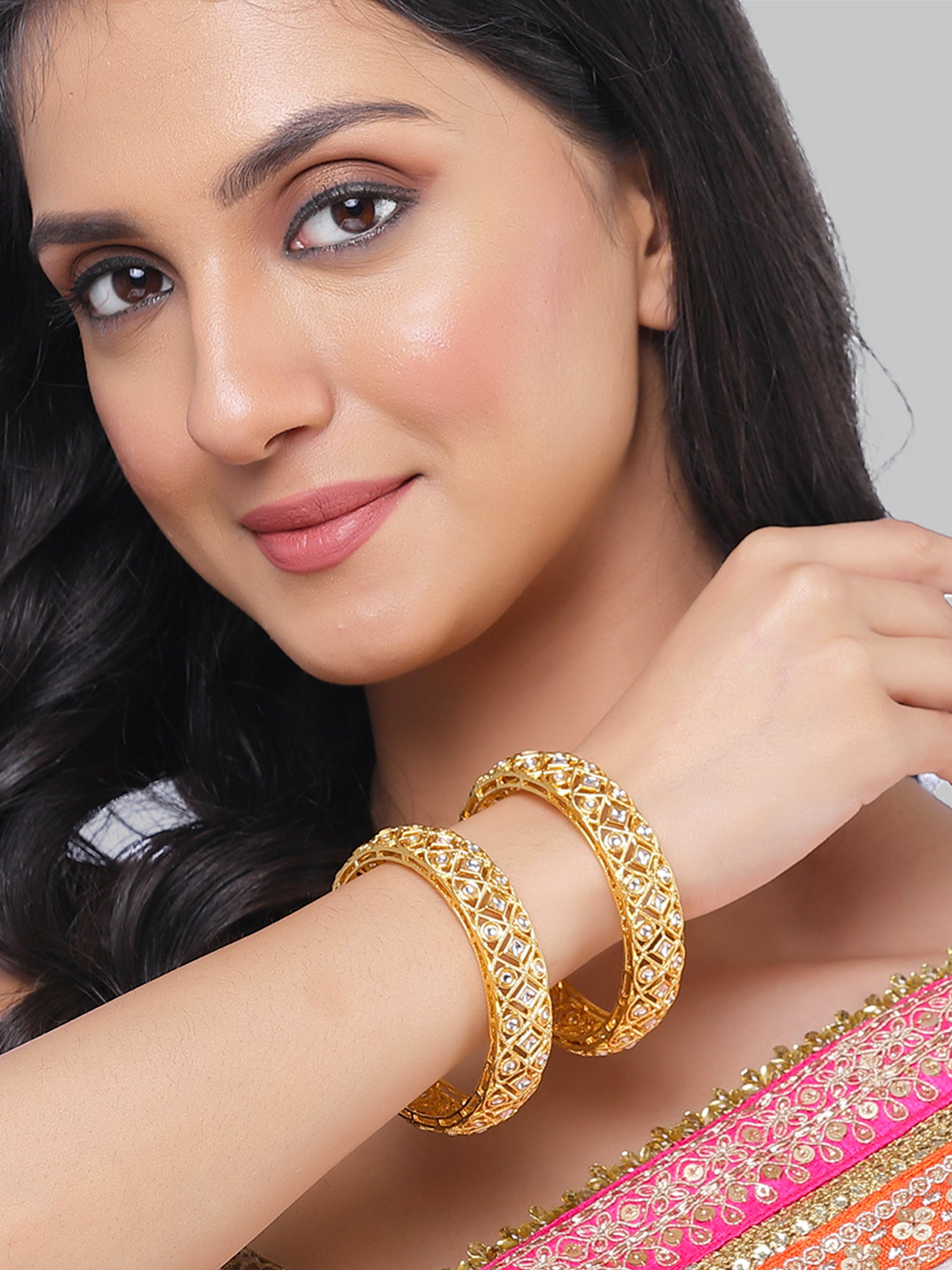 Karatcart Gold Plated Set of 2 Diamond Shape Bangles for Women