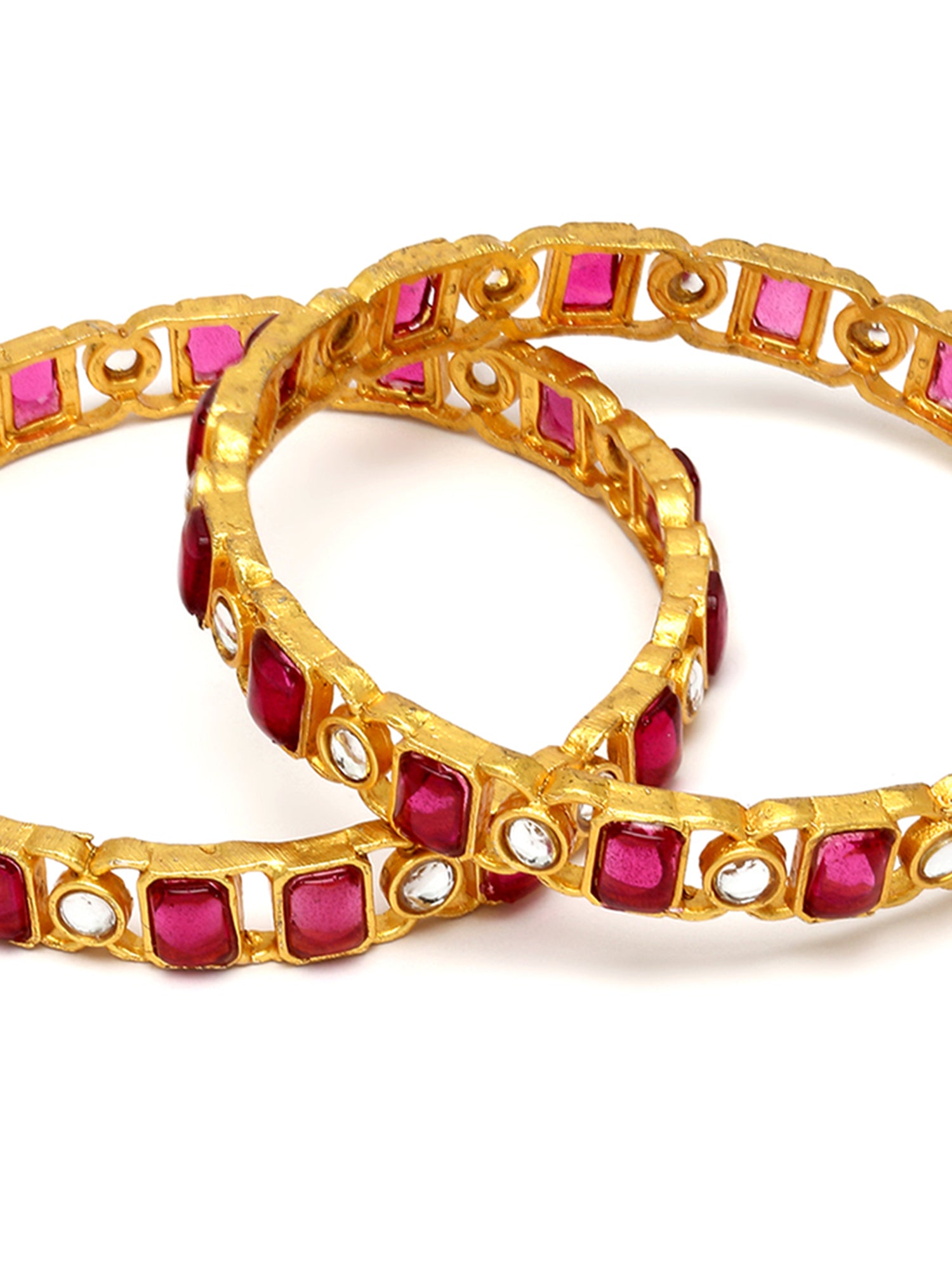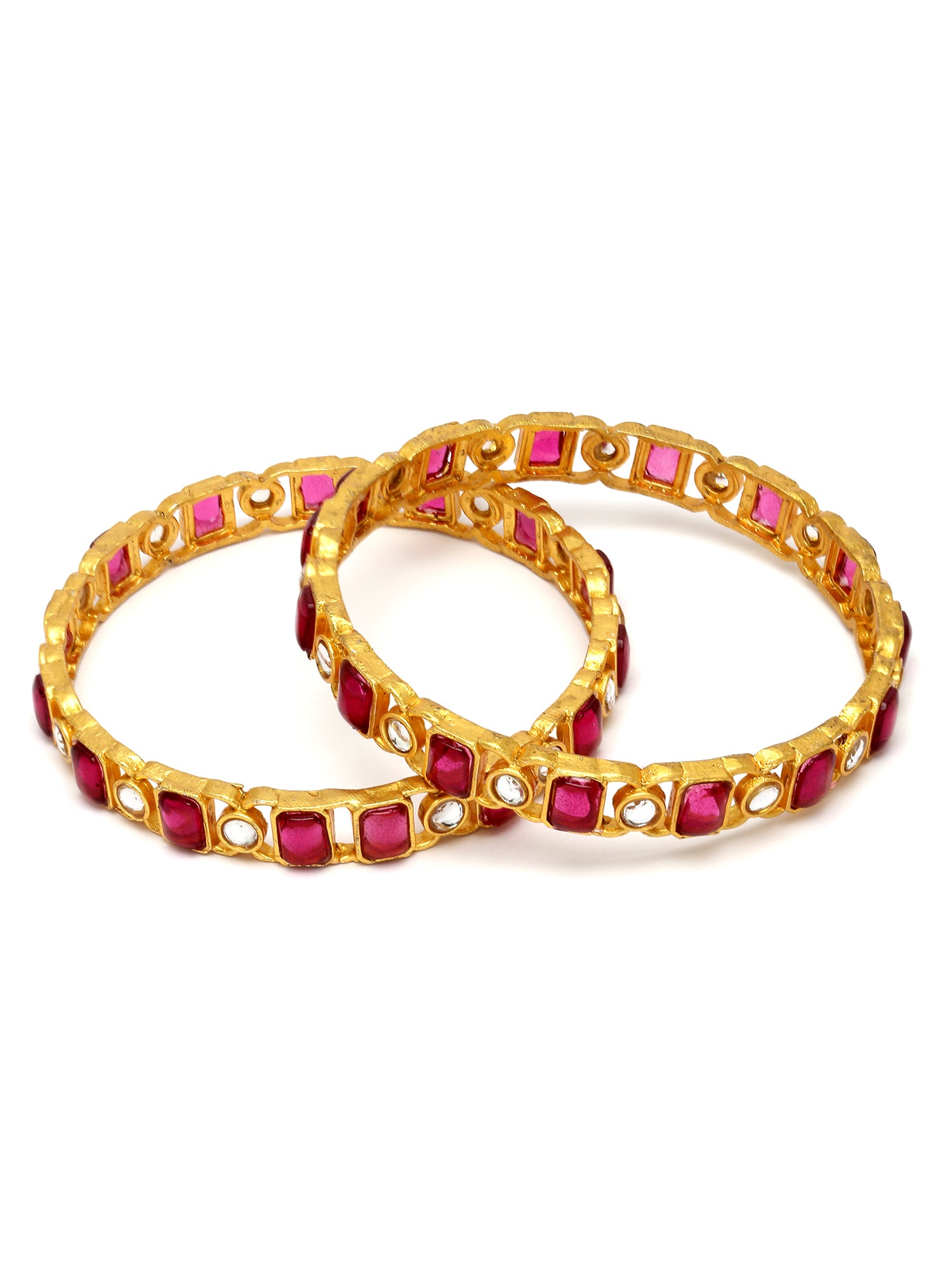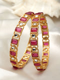 Karatcart Gold Plated Red Stone Bangles Set for Women