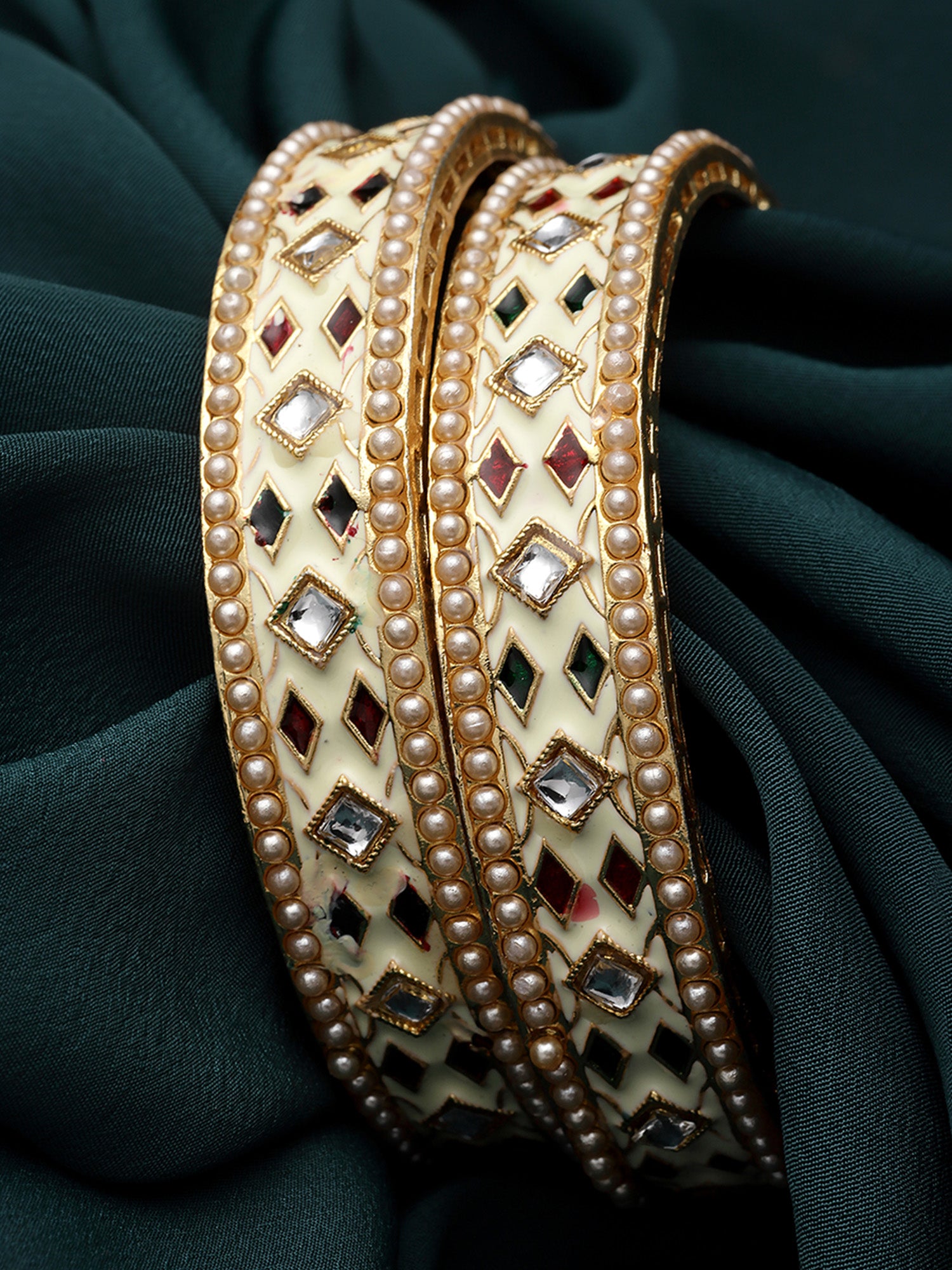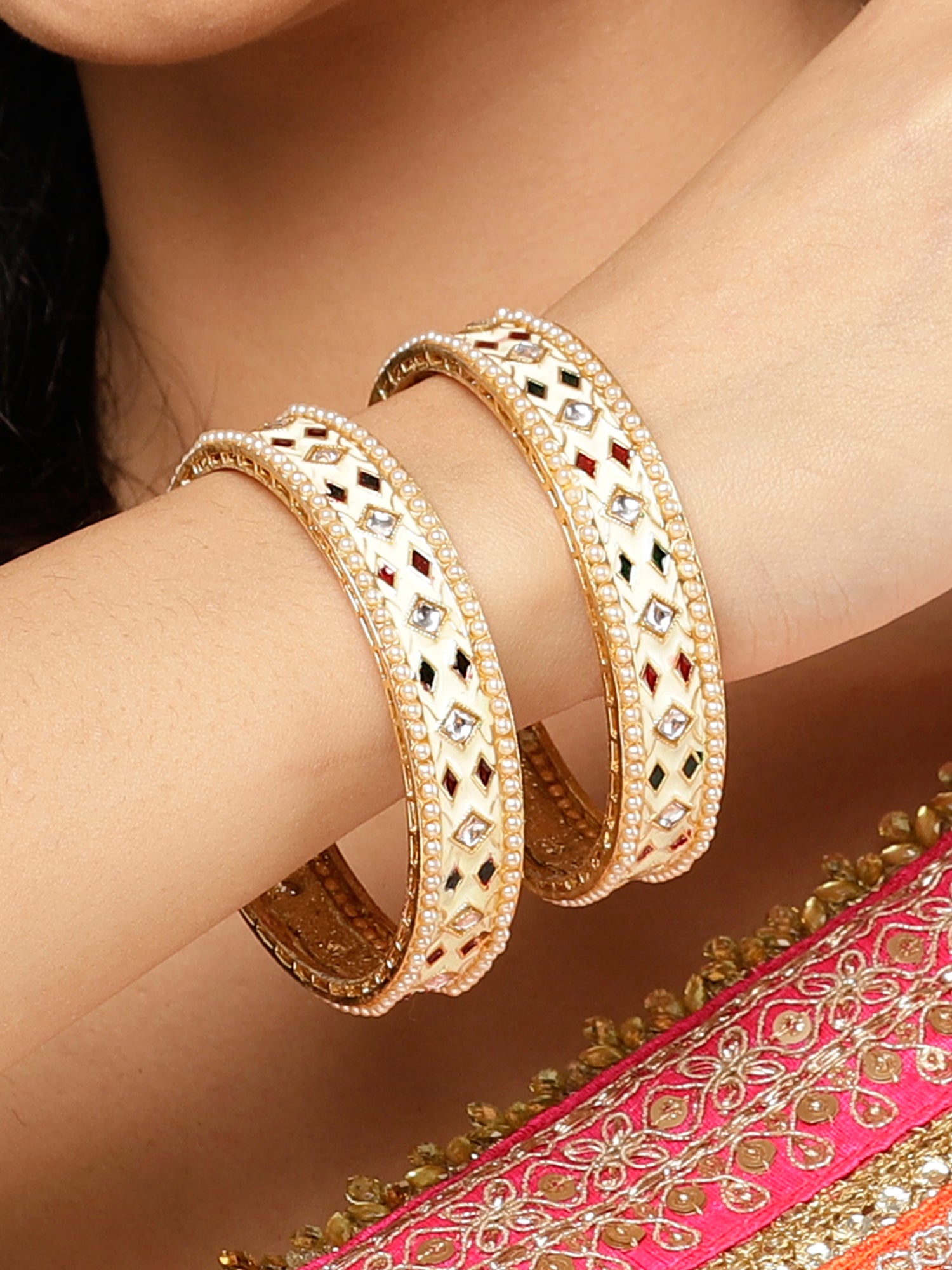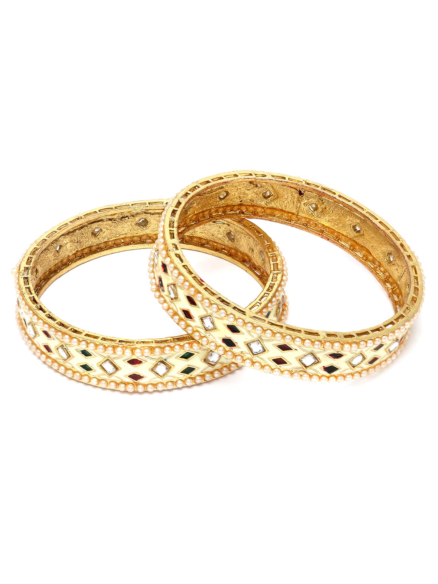 Karatcart Gold Plated White Meena Bangles Set for Women