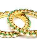 Karatcart Gold Plated Set of 2 Green Meena Bangles for Women