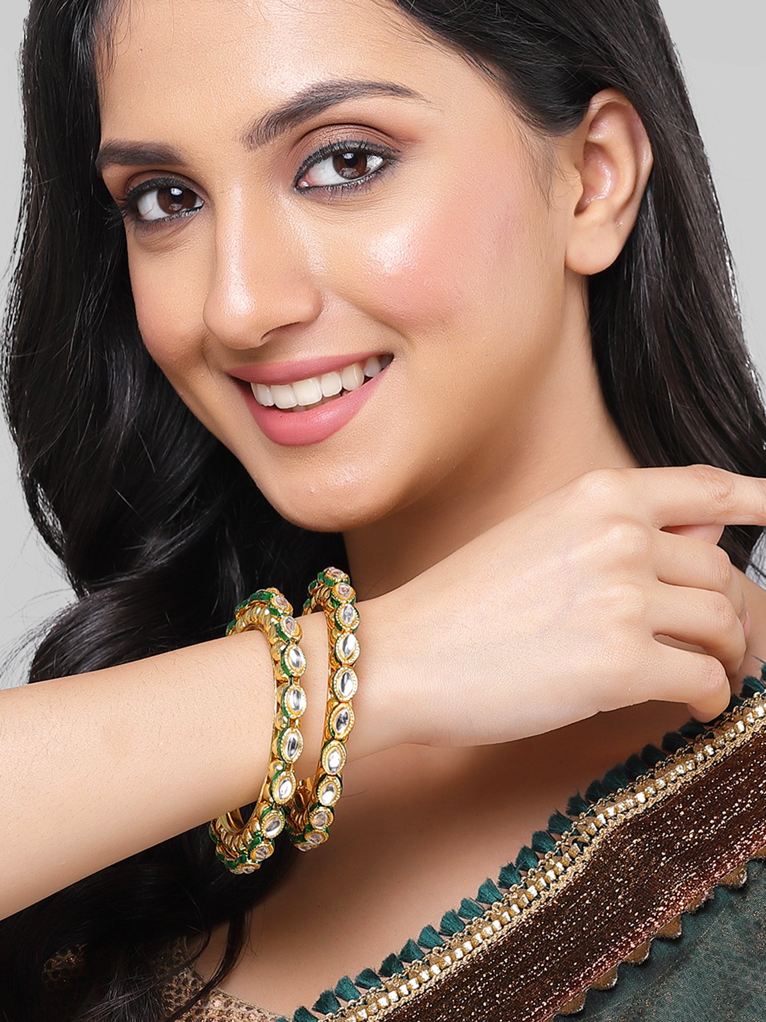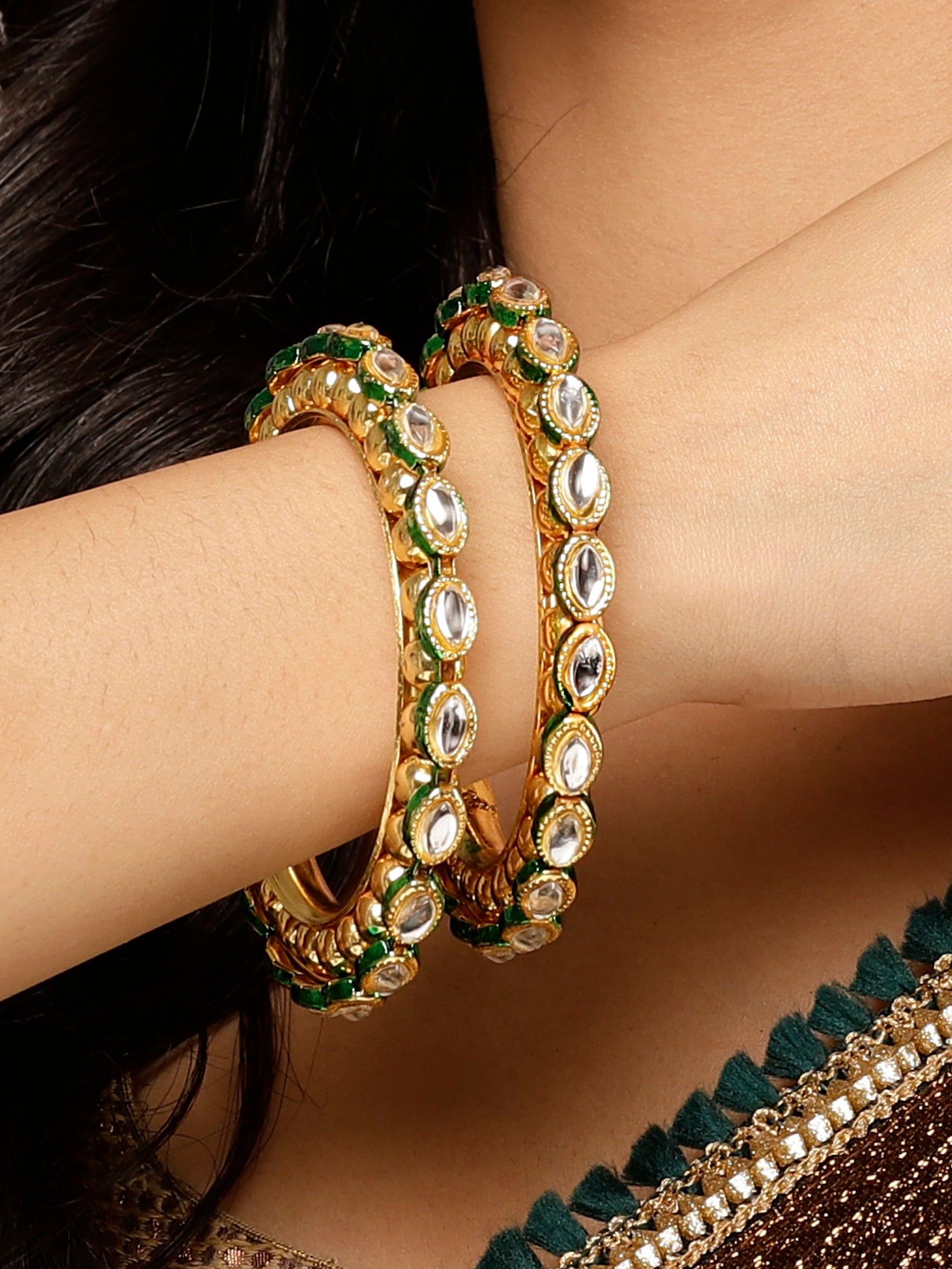 - This is a Green Bangles by Brand Karatcart which has Polki Kundan stones. This is Gold Plated. We at KARATCART understand your desire to look the best on any day & we thrive in making any day an occasion. Every individual at Karatcart carries a passion for jewellery and it reflects in our beautiful designs as well as in our breathtaking craftsmanship. We create unique jewellery so you can make heads turn.