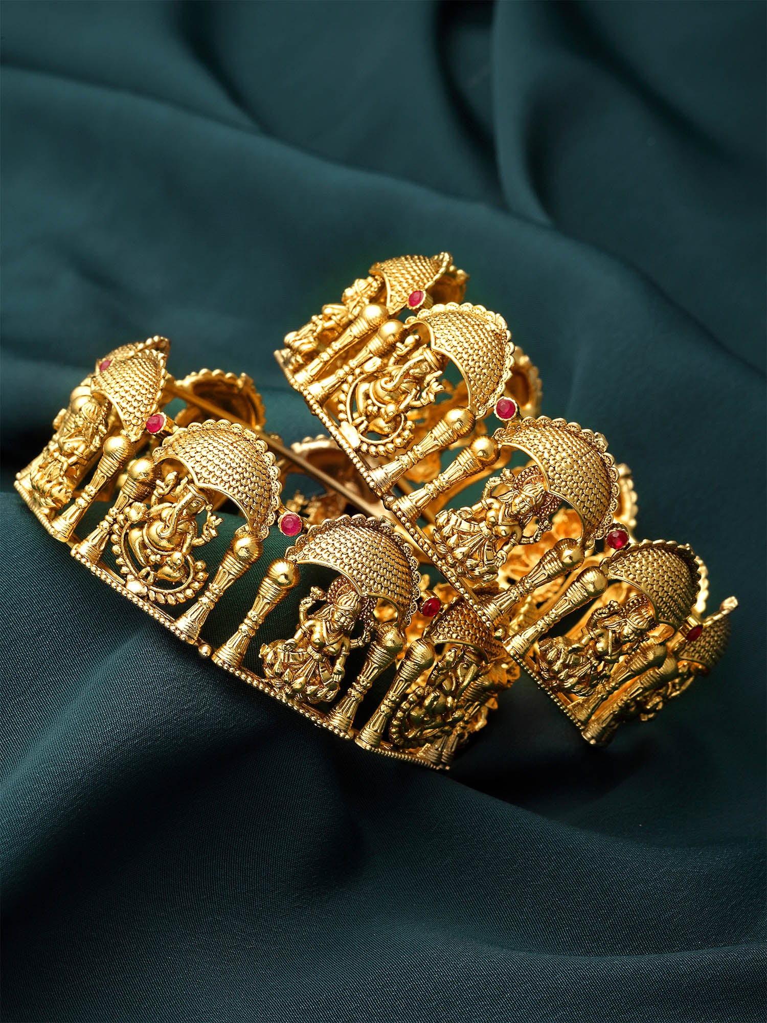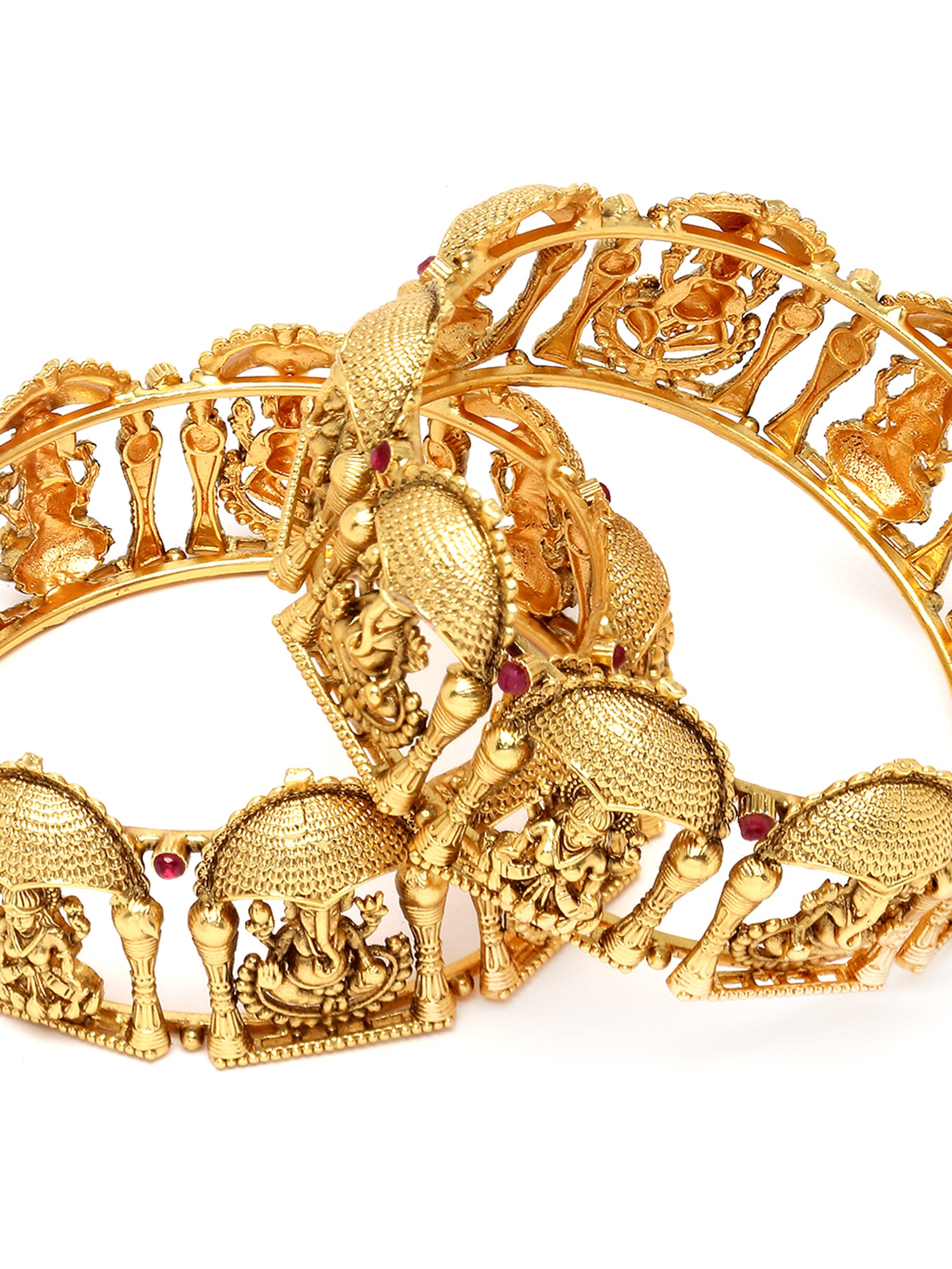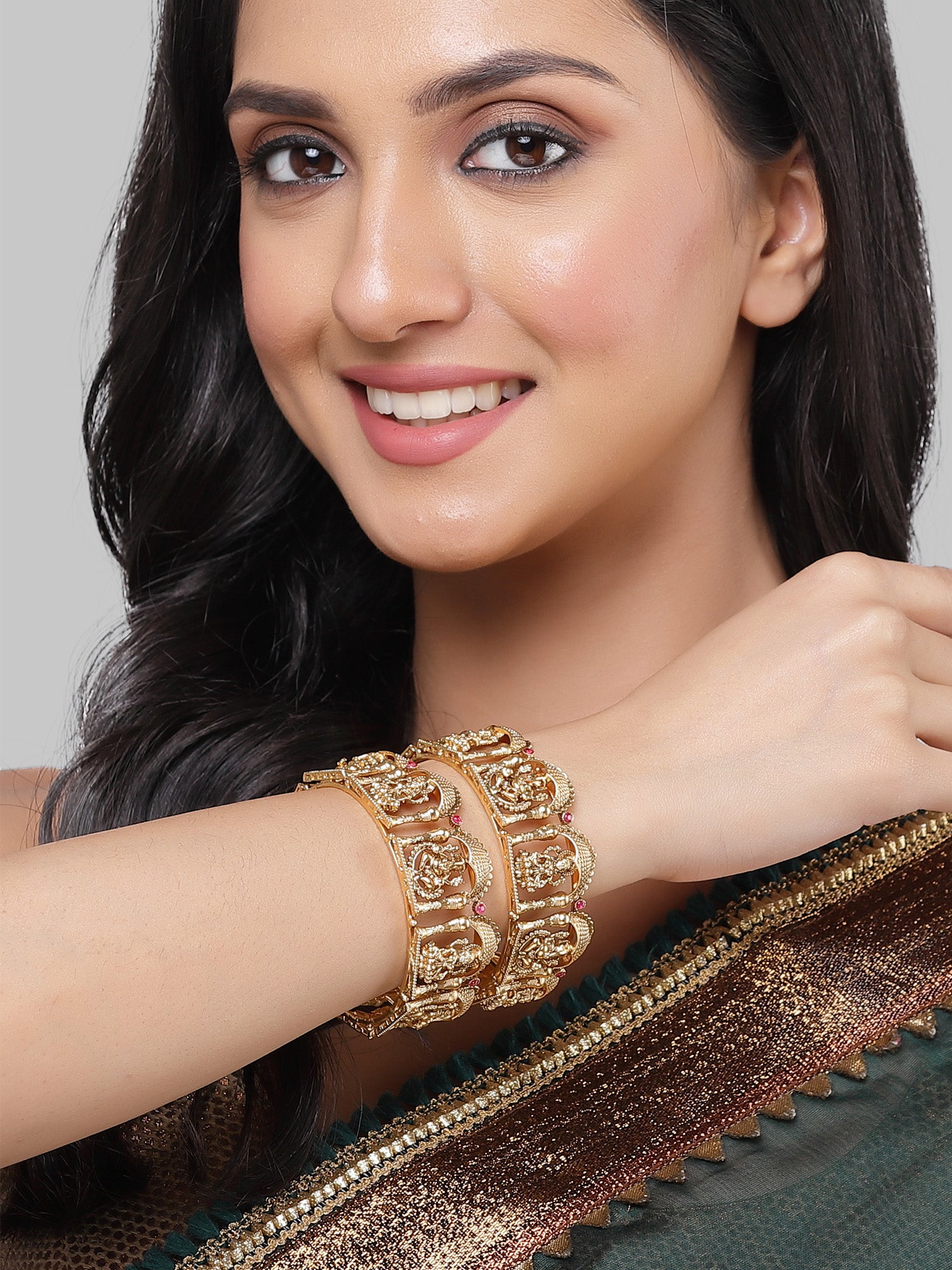 Karatcart Gold Plated Set of 2 Ganesh Laxmi Bangles for Women