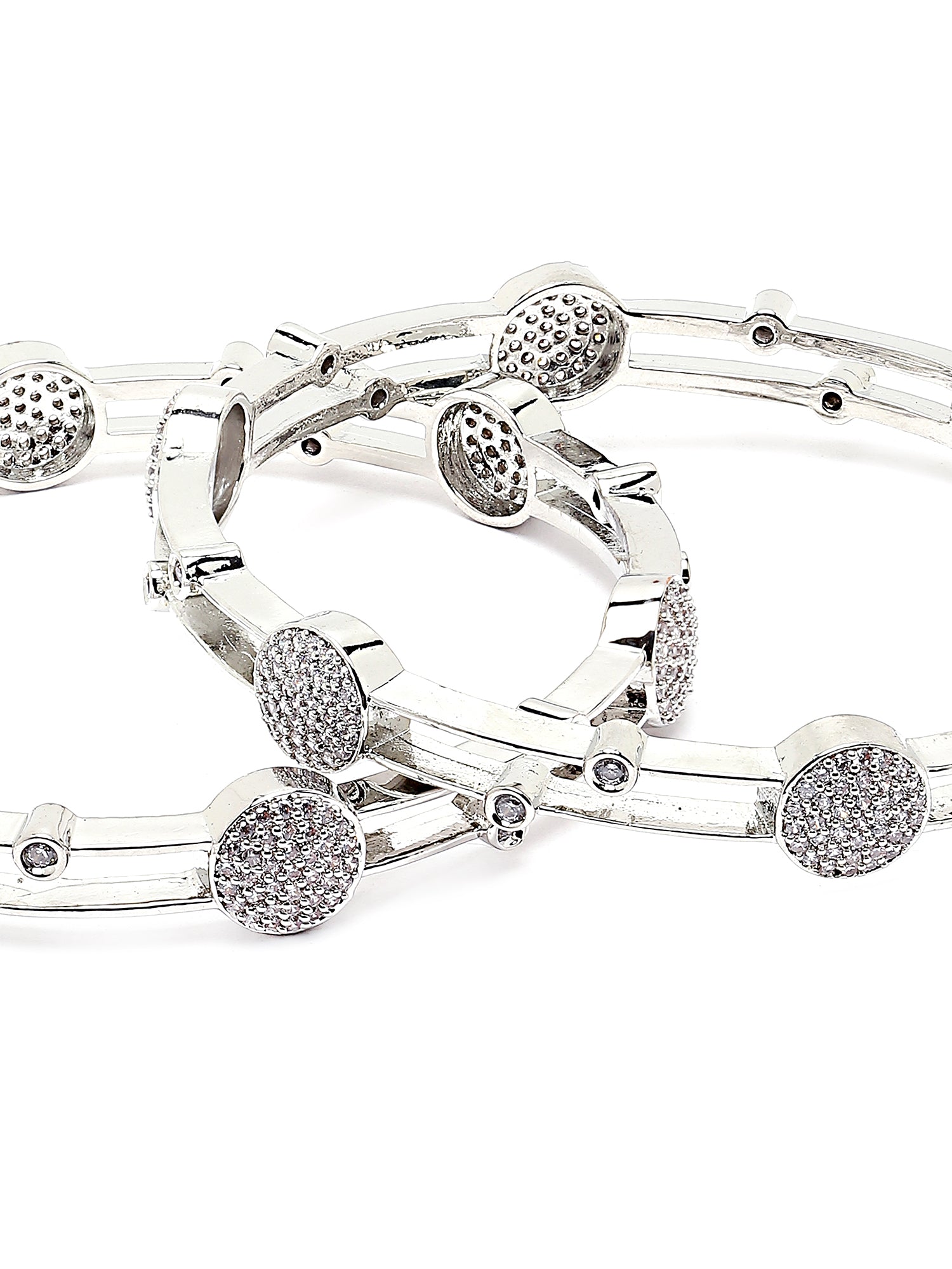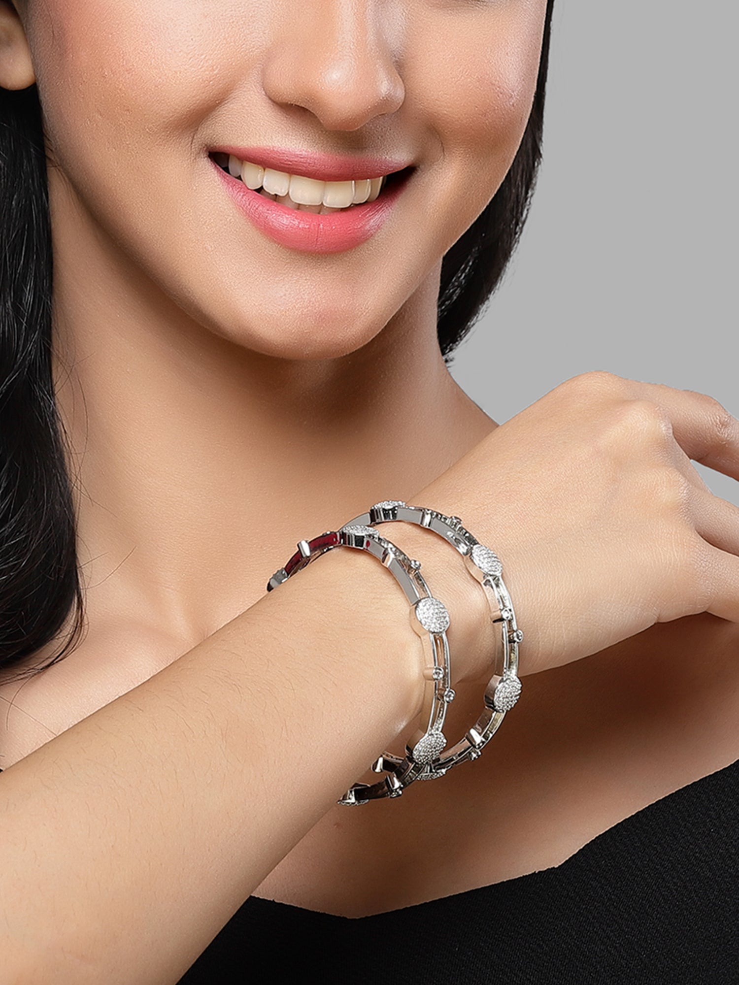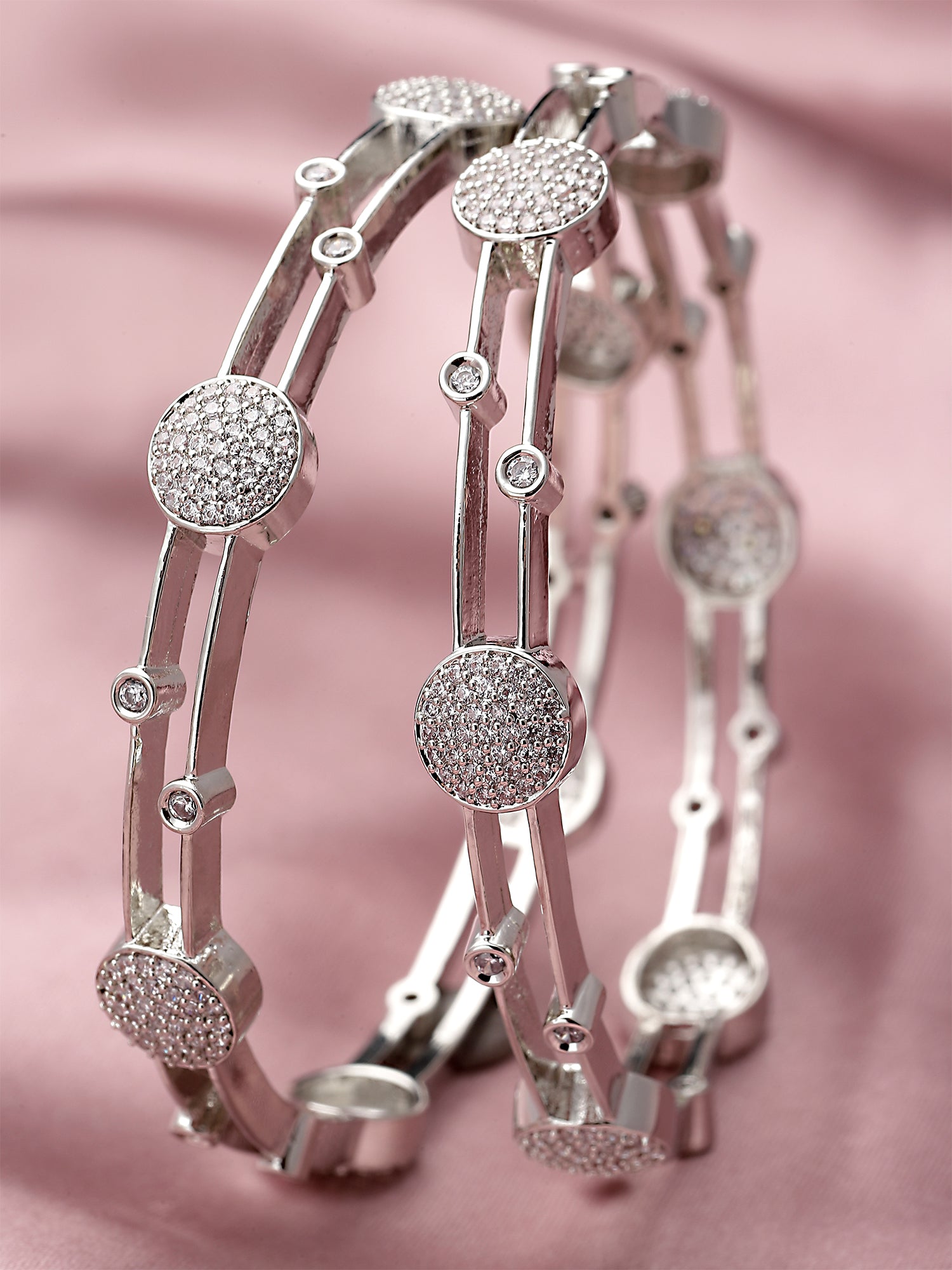 Karatcart Set of 2 Silver-Plated Cubic Zirconia Bangles for Women