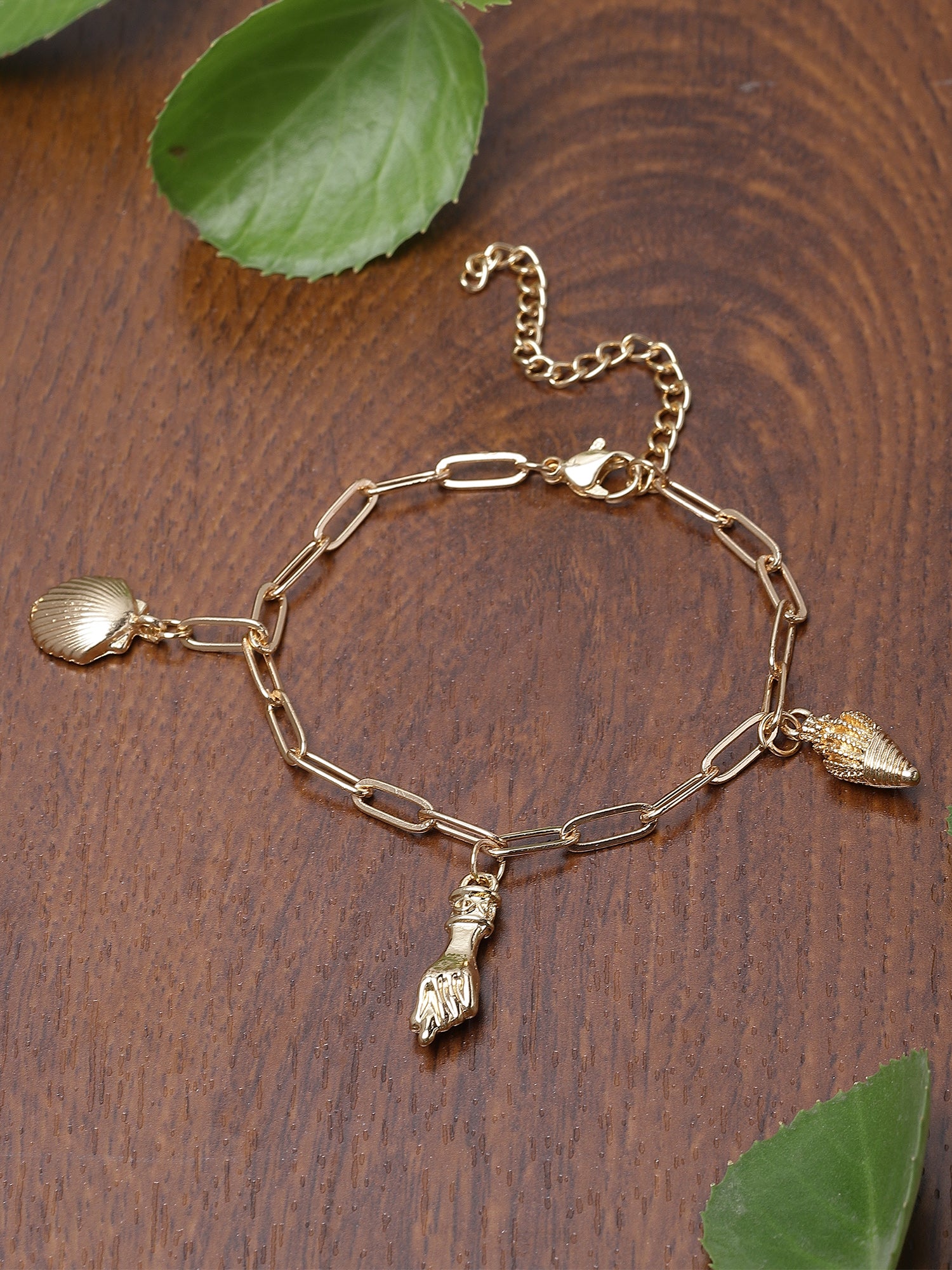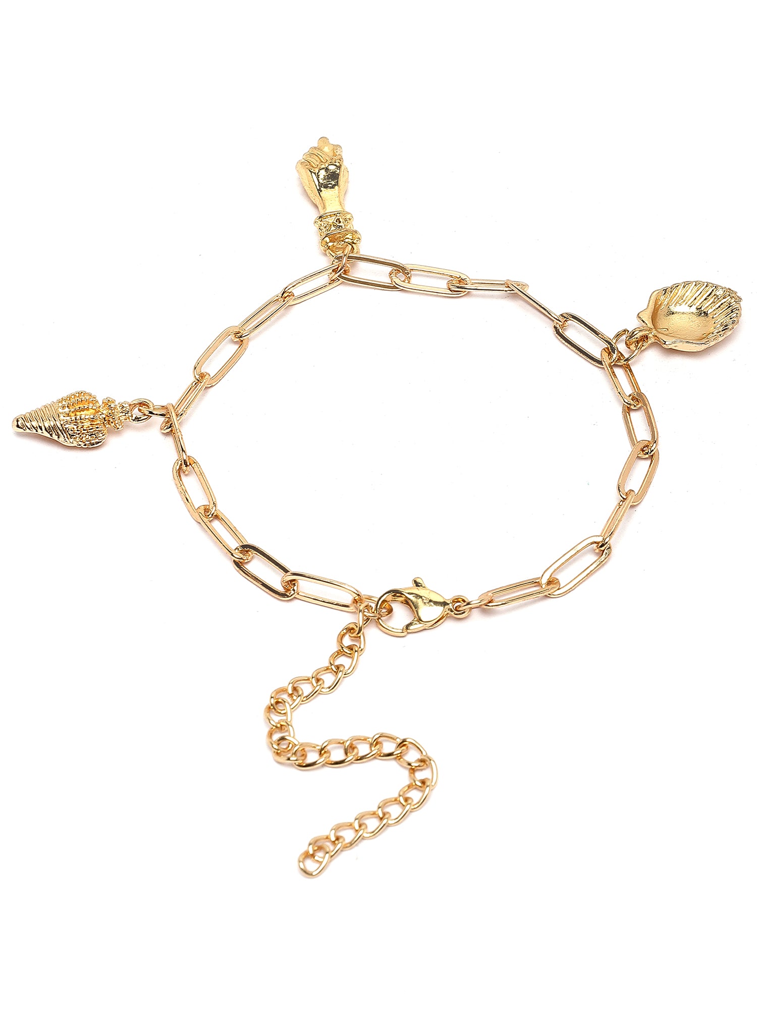 Bohey by KARATCART Gold Plated Adjustable Link Chain Bracelet with Hand Charms for Women