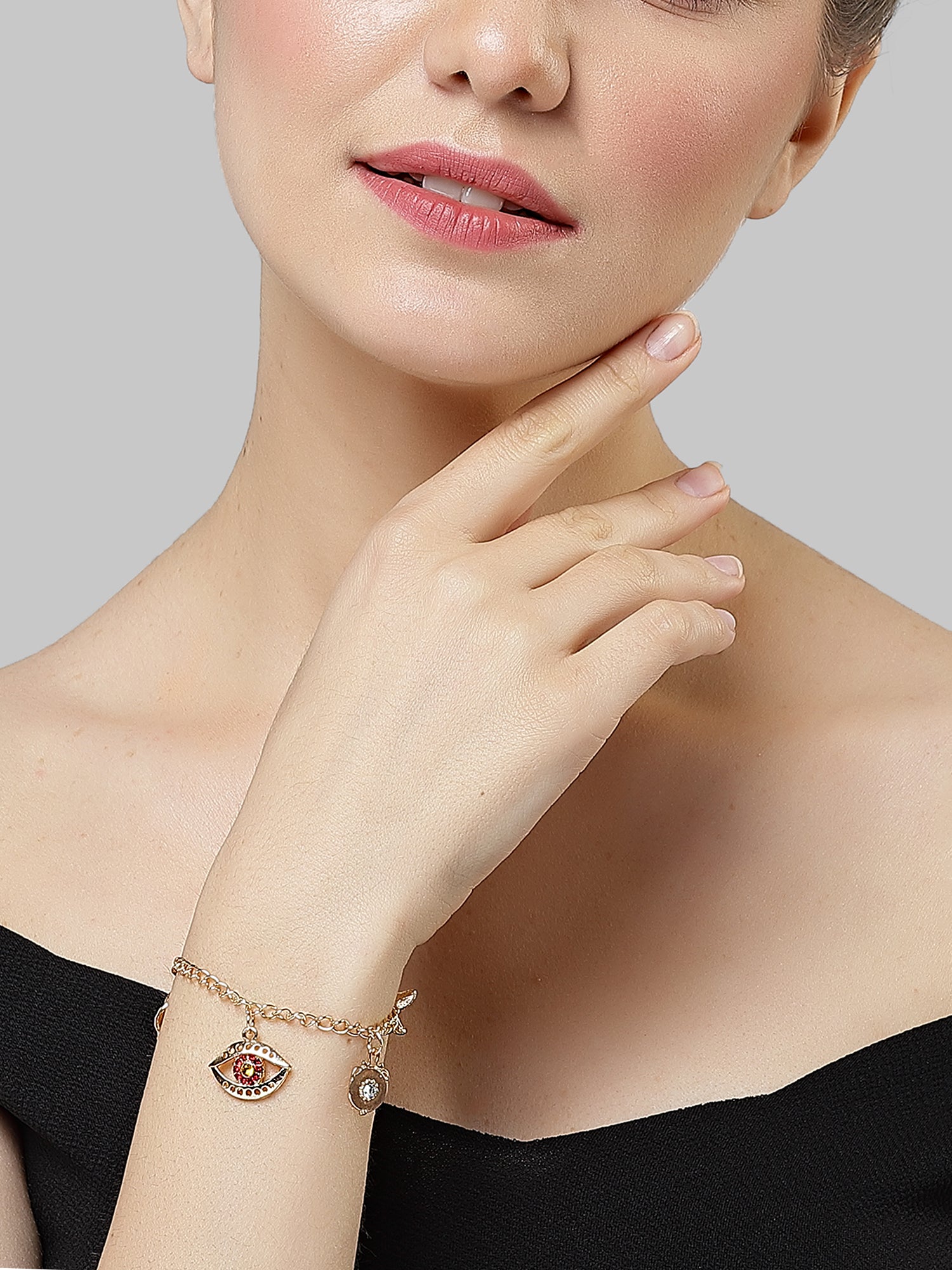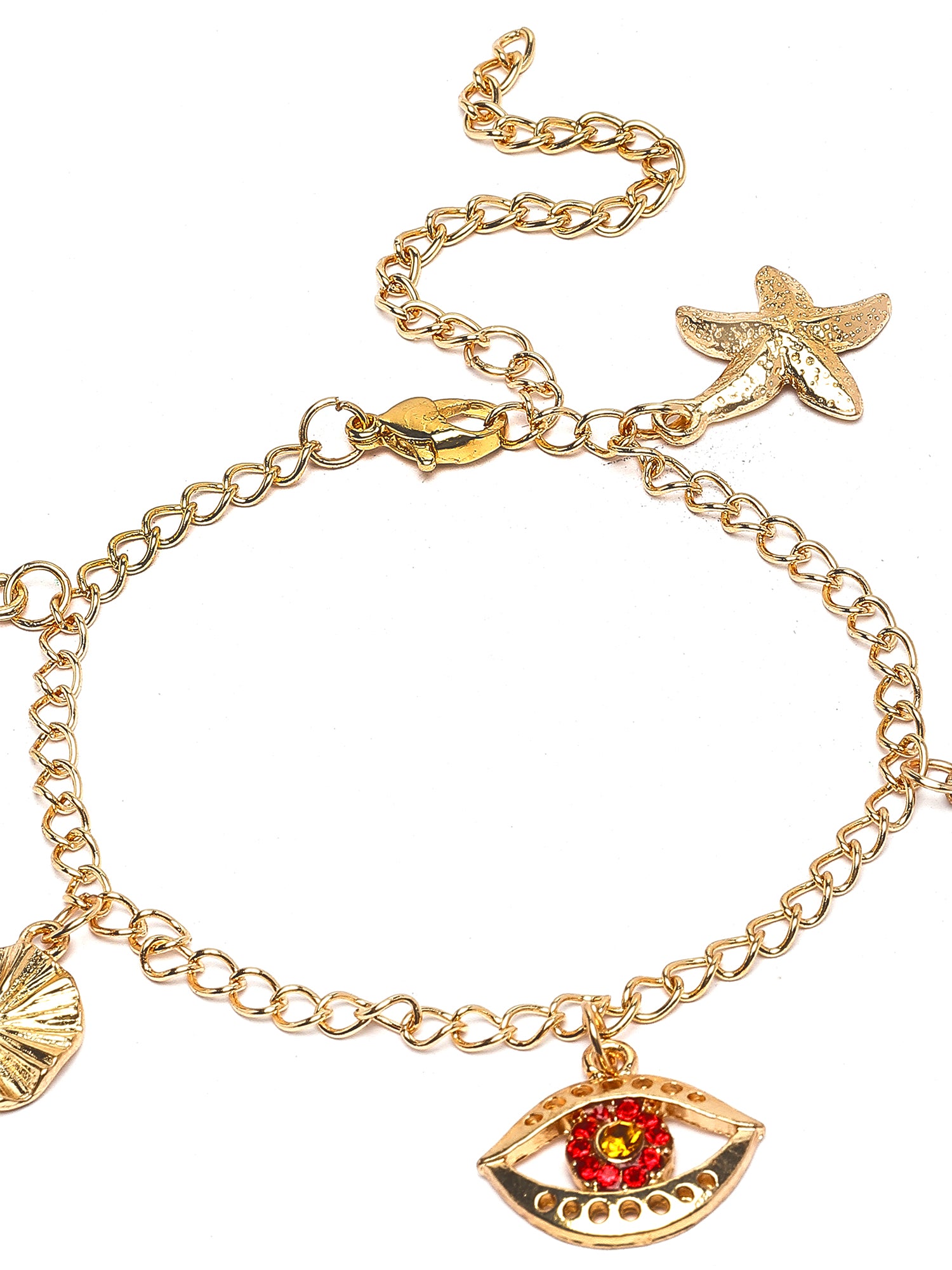 Bohey by KARATCART Gold Plated Adjustable Link Chain Bracelet with Crystal EYE Charms for Women