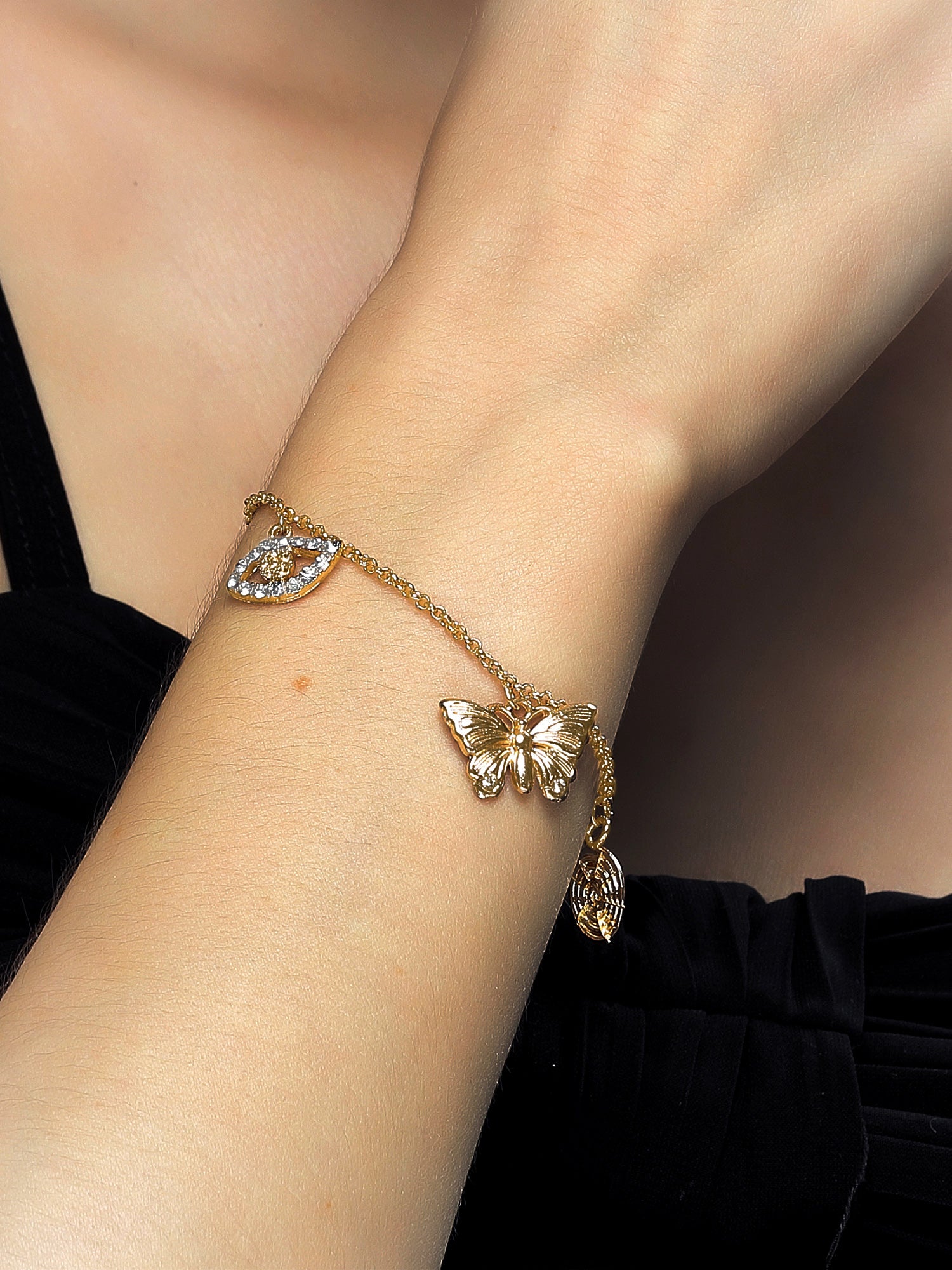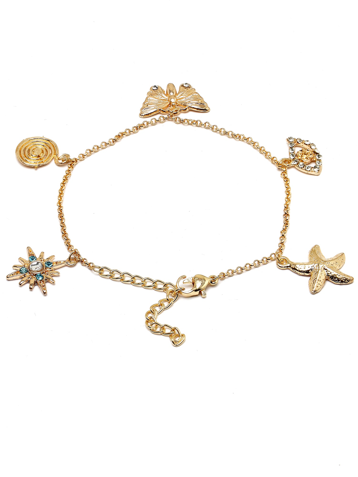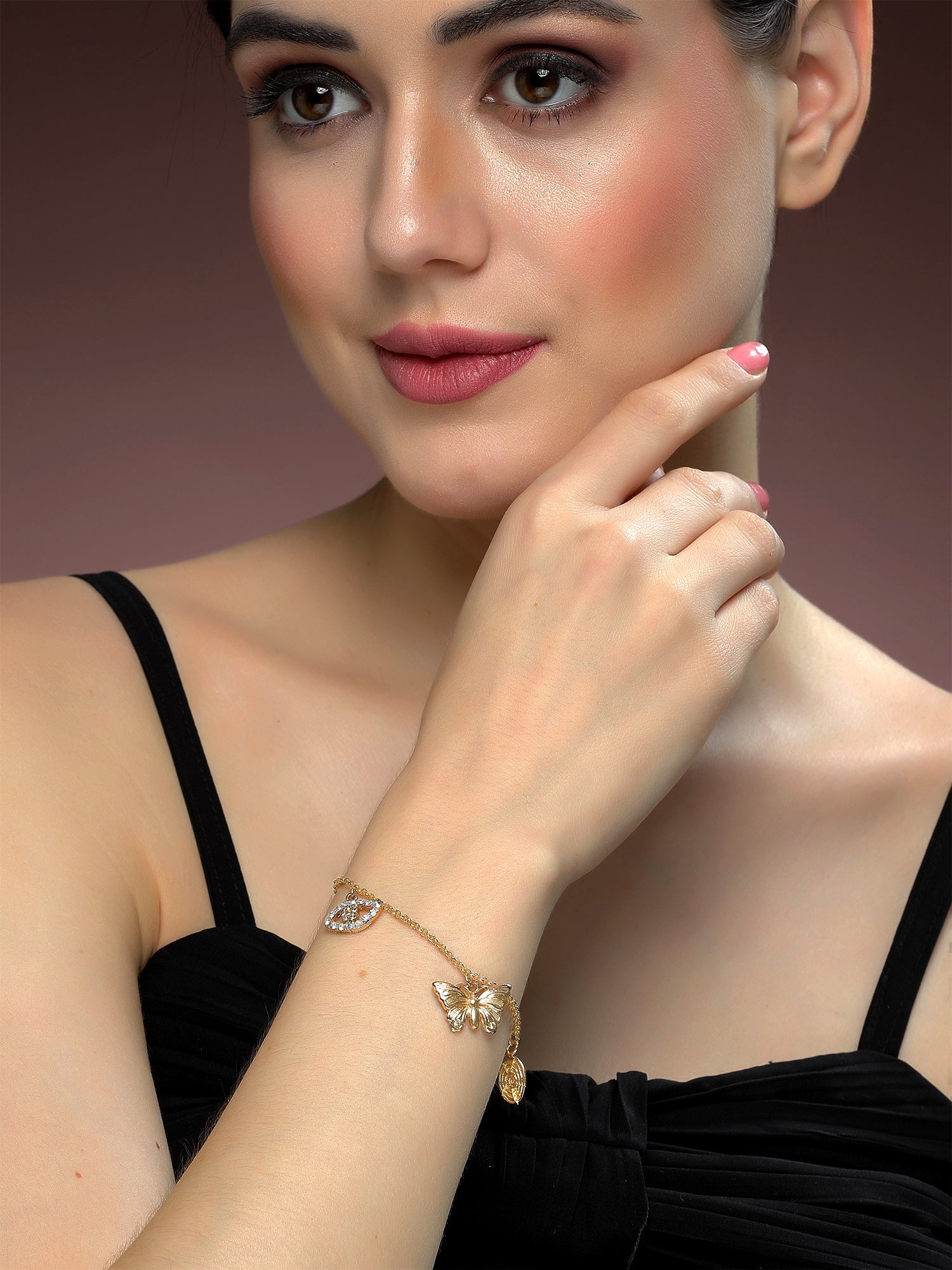 Bohey by KARATCART Gold Plated Adjustable Link Chain Bracelet with Butterfly and Star Charms for Women