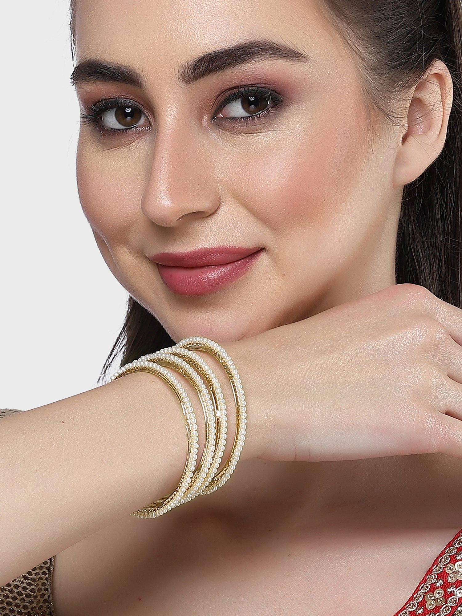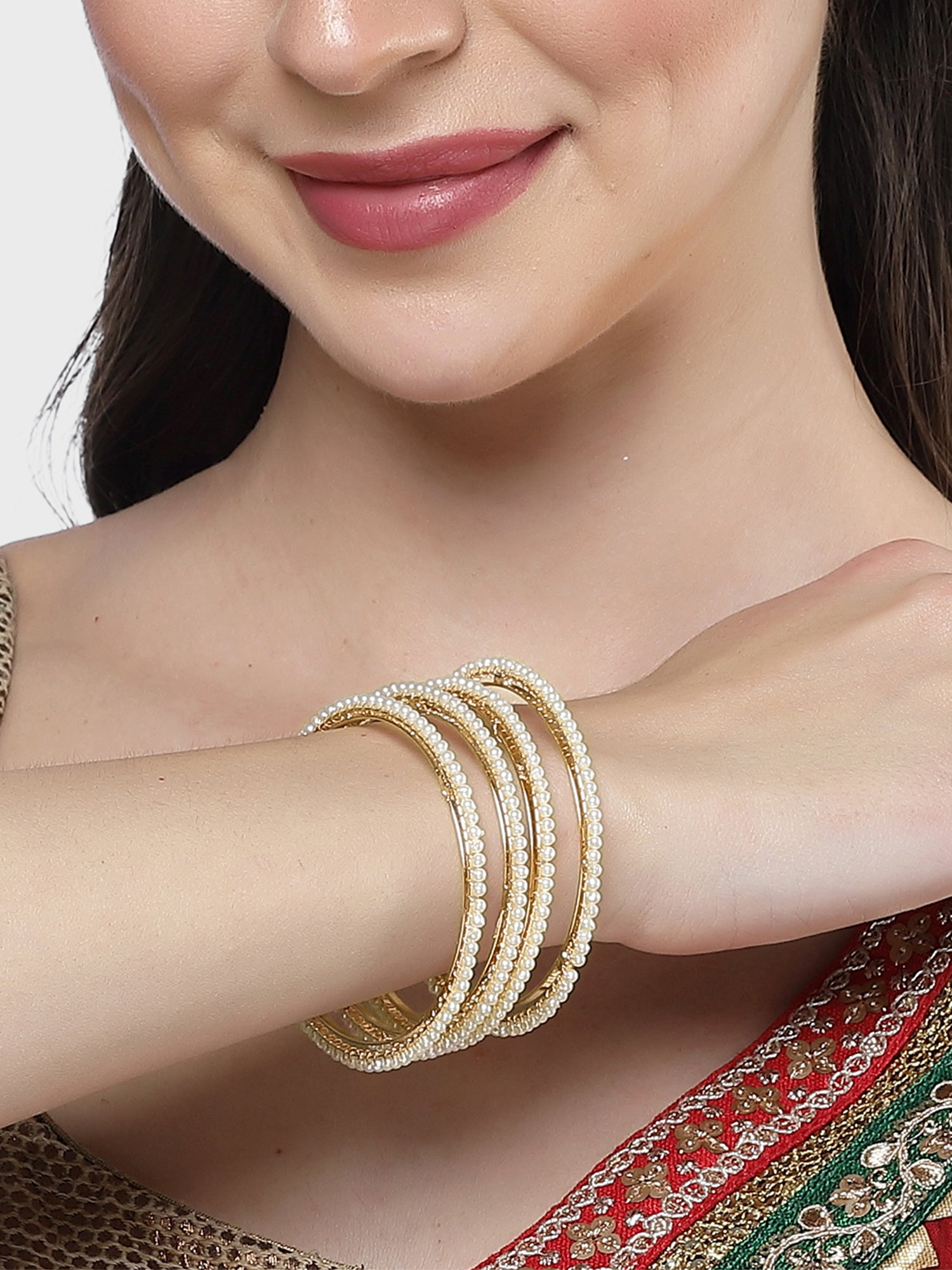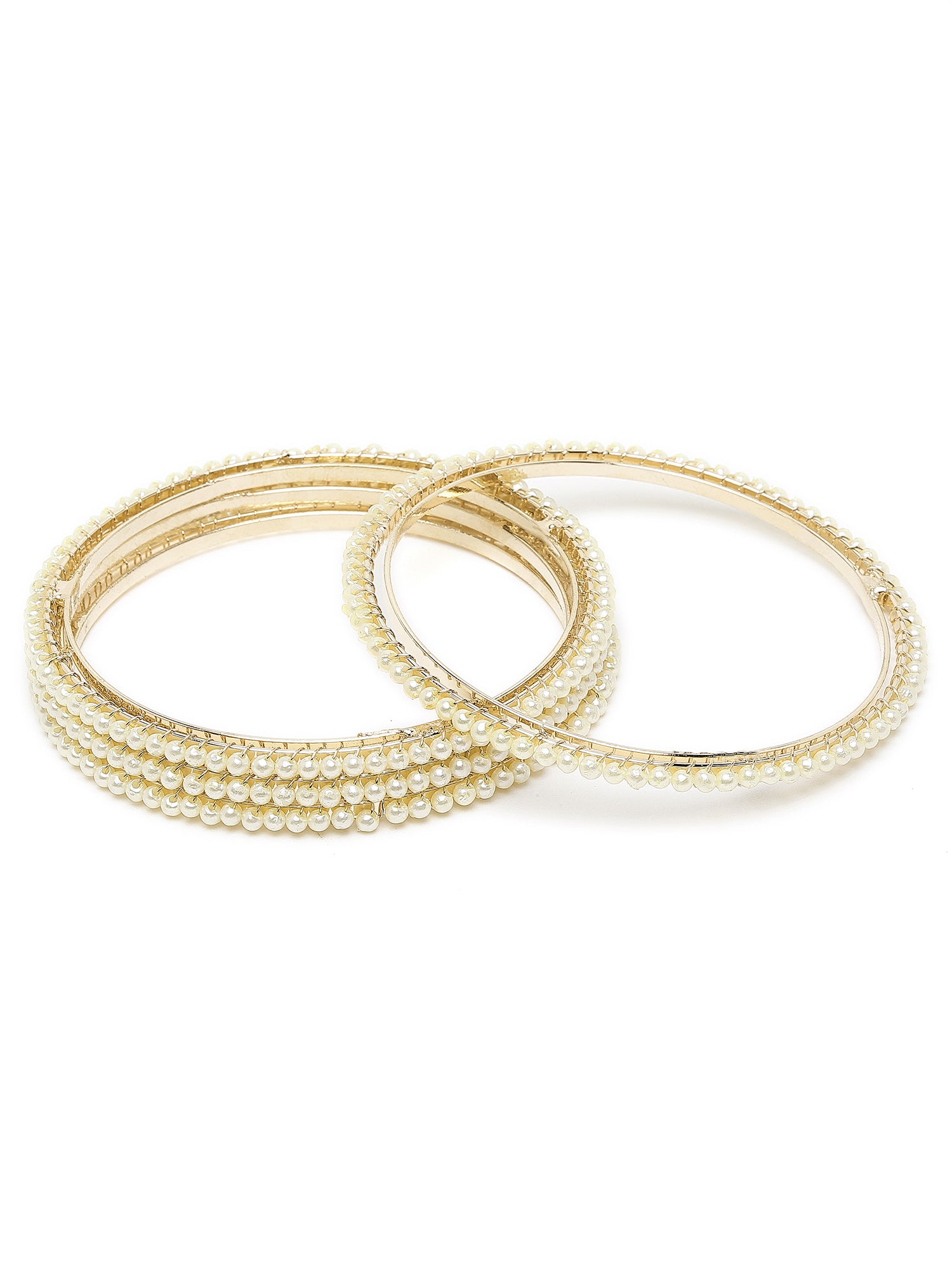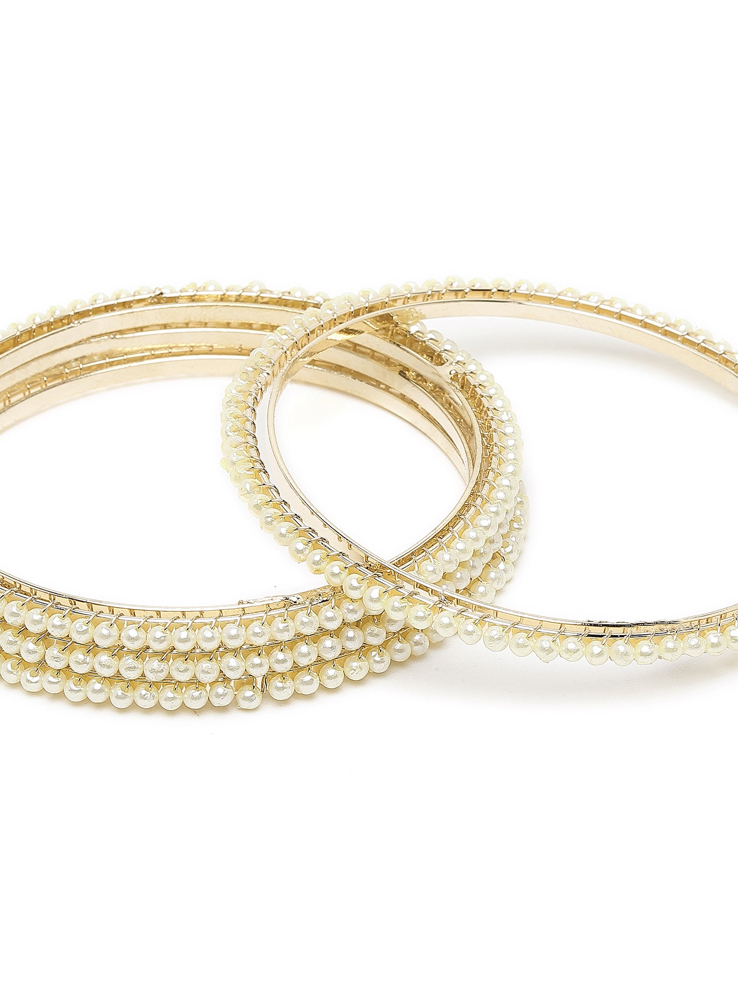 Karatcart Set of 4 Gold-Plated Pearl Studded Bangles for Women