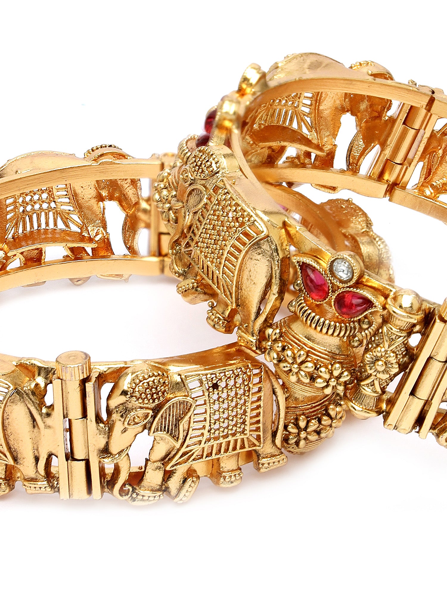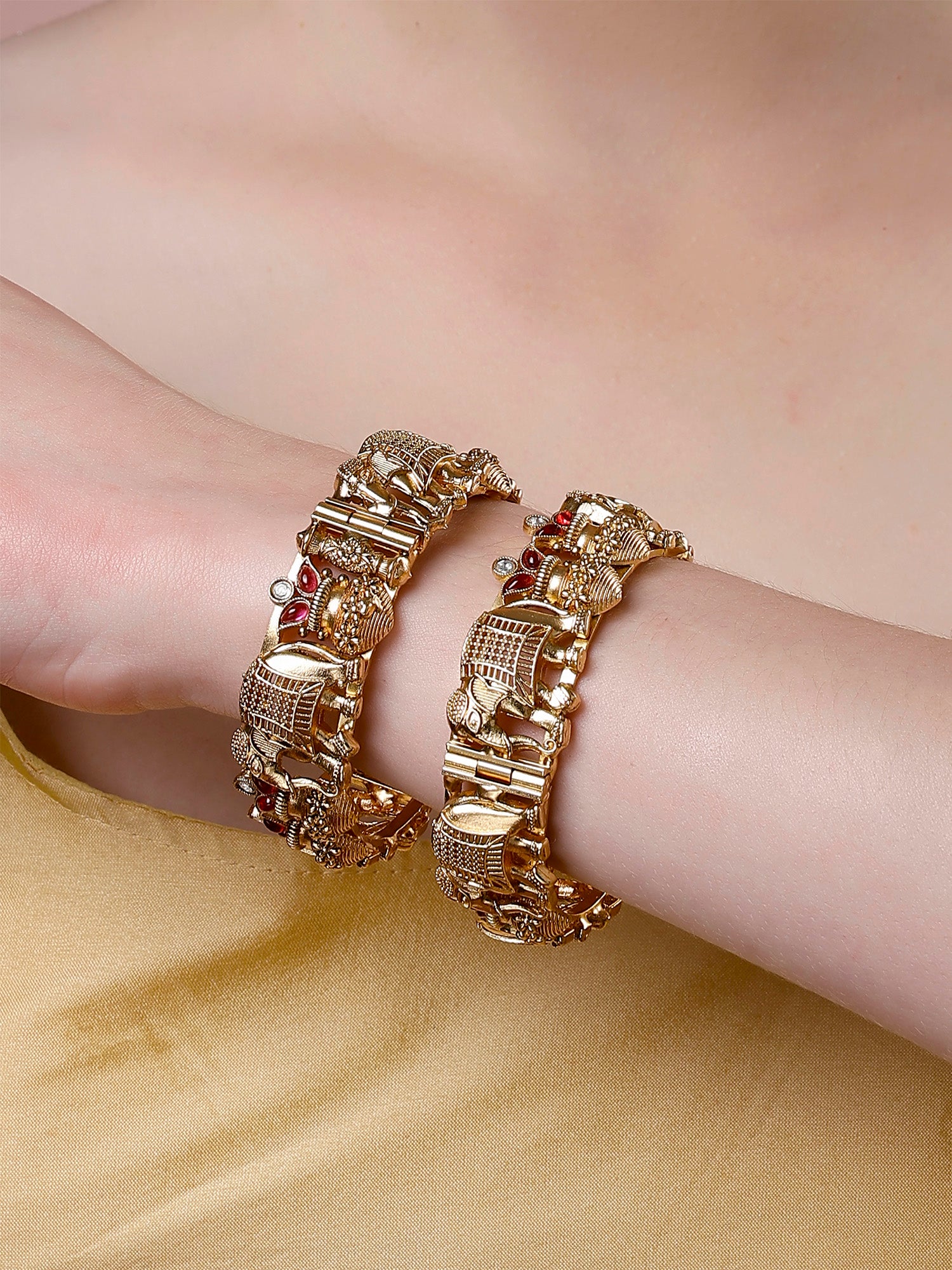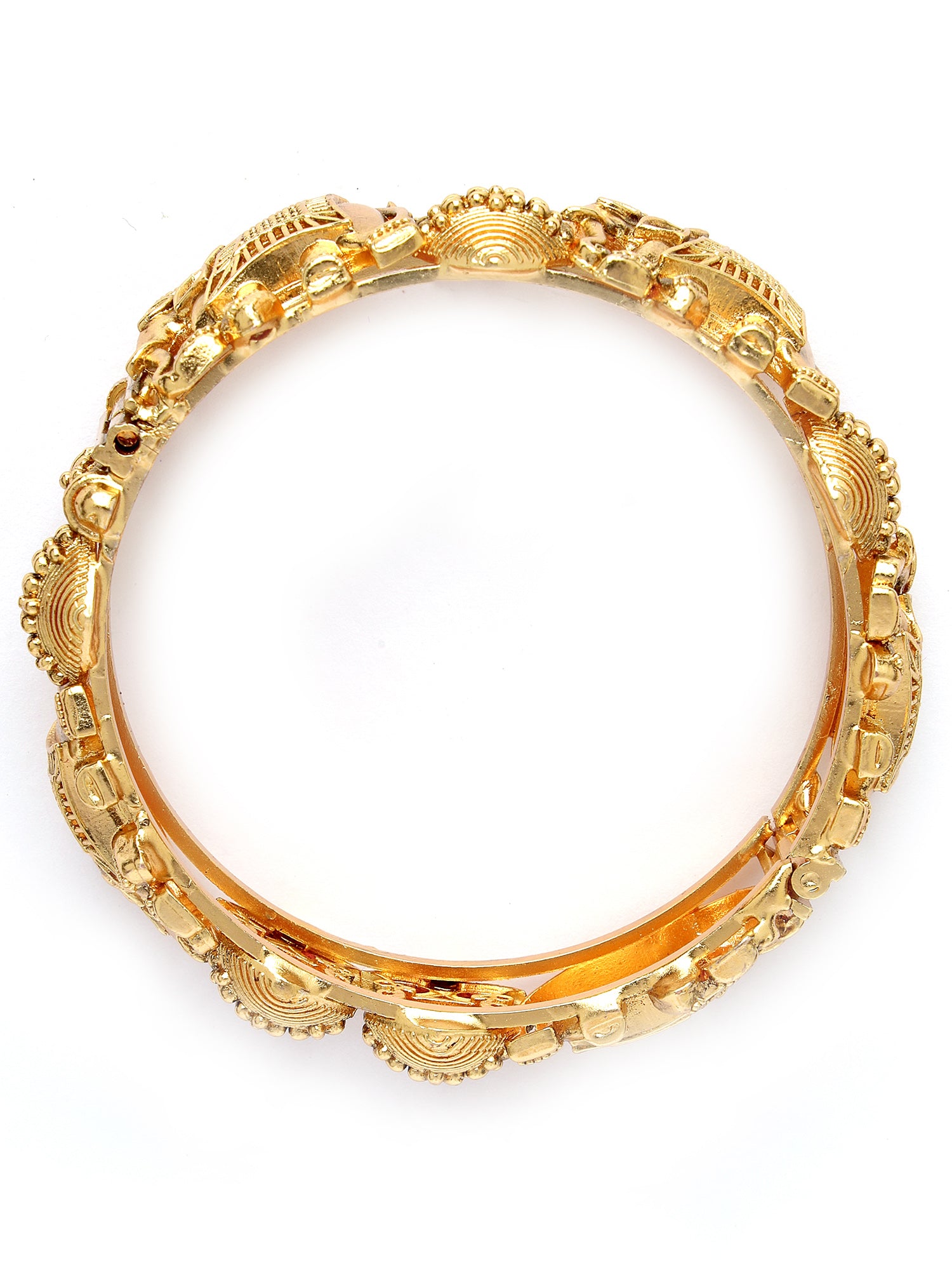 Karatcart Set of 2 Gold Plated Handi and Elephant Design Bangles for Women