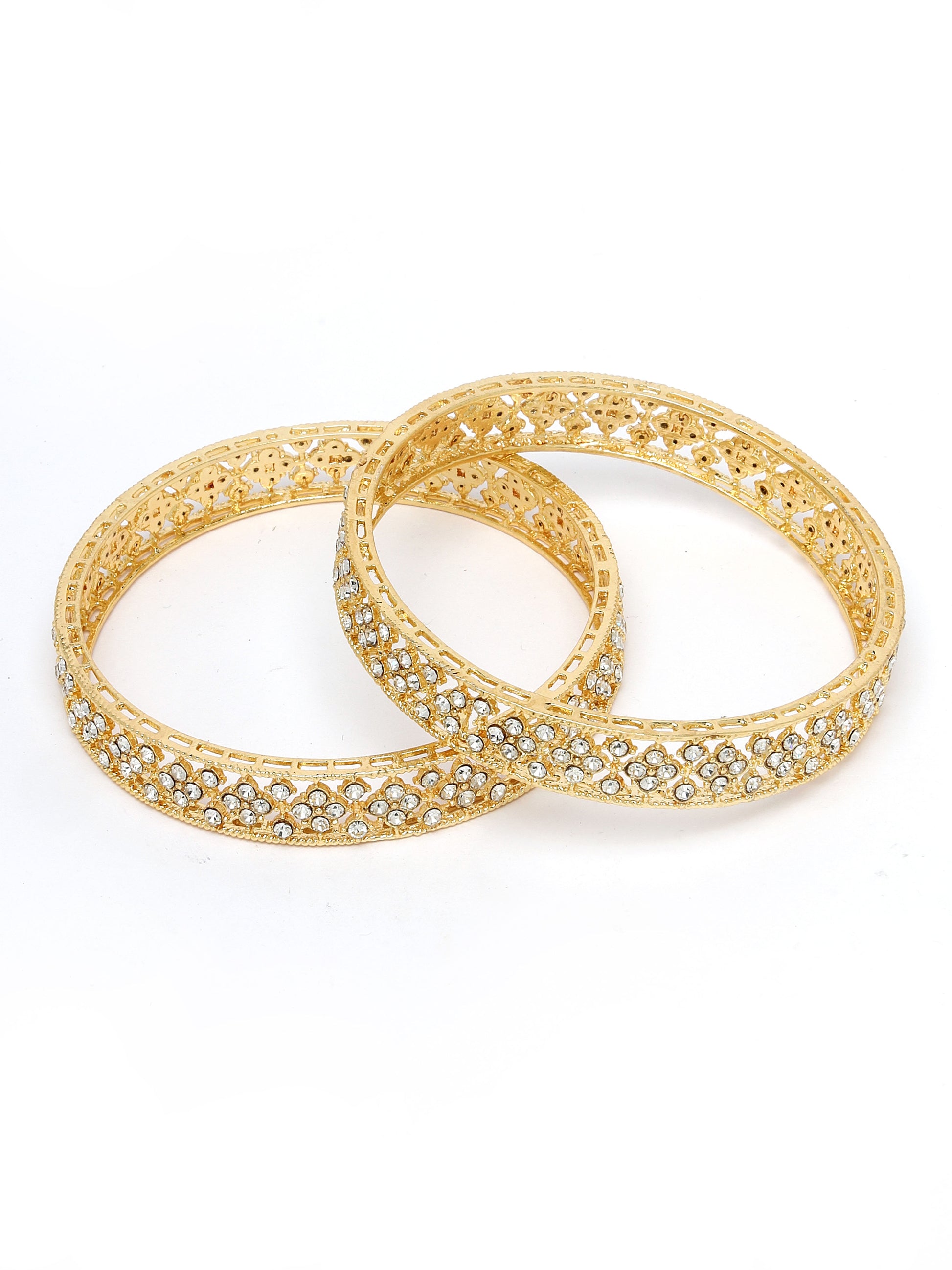 Karatcart American Diamond Studded Gold Plated Set of 2 Bangles for Women