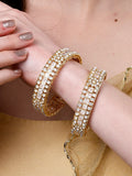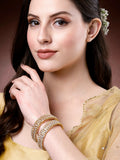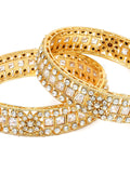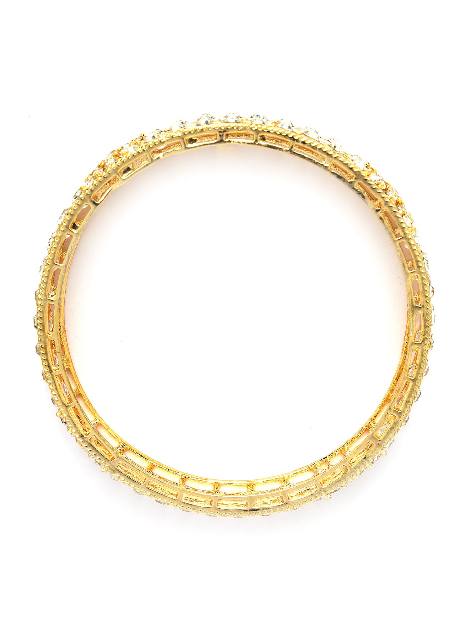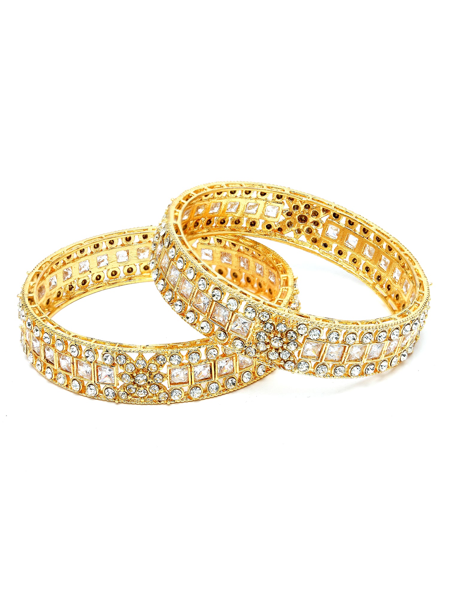 Karatcart Set of 2 Floral Design American Diamond Studded Gold Plated Bangles for Women