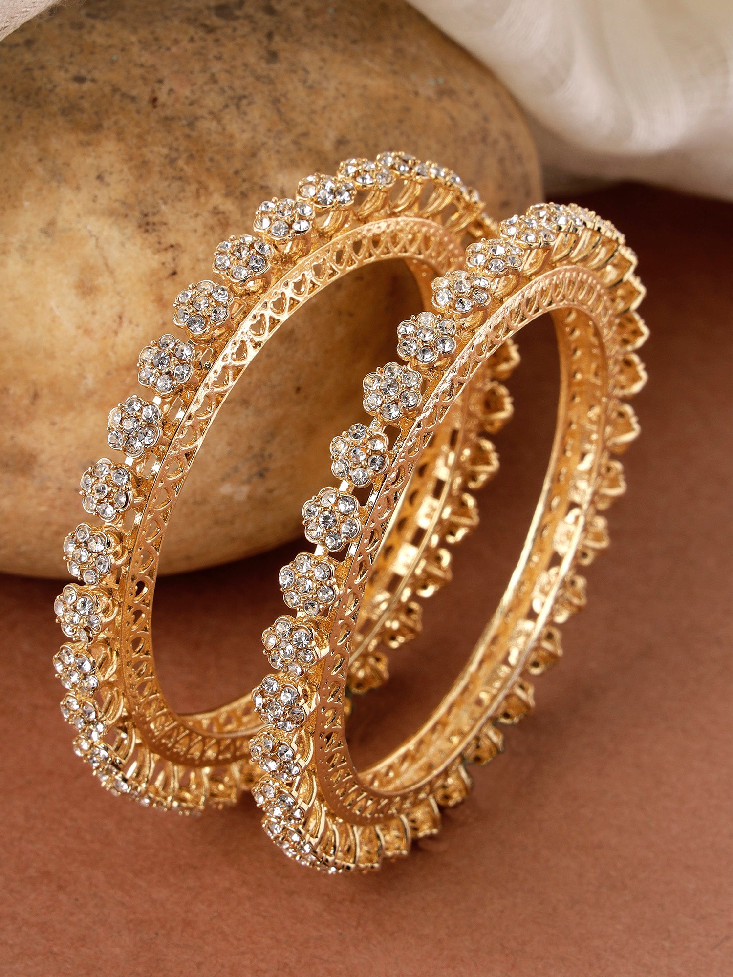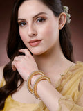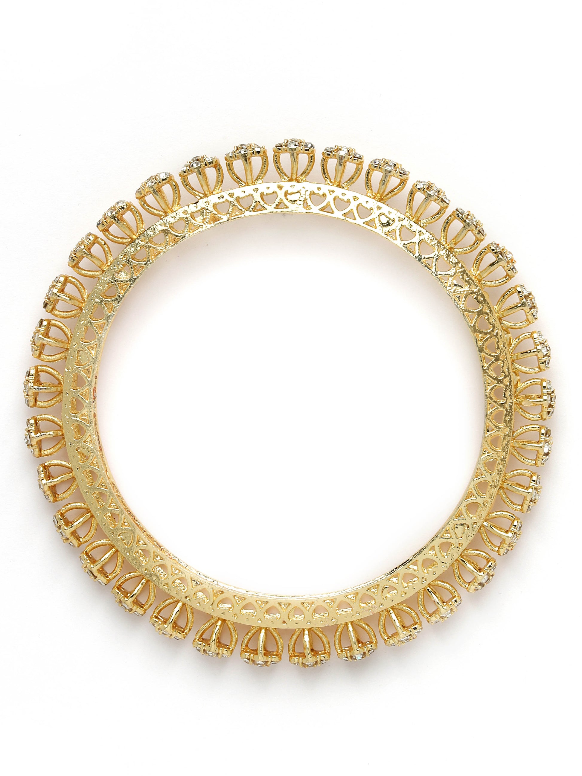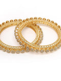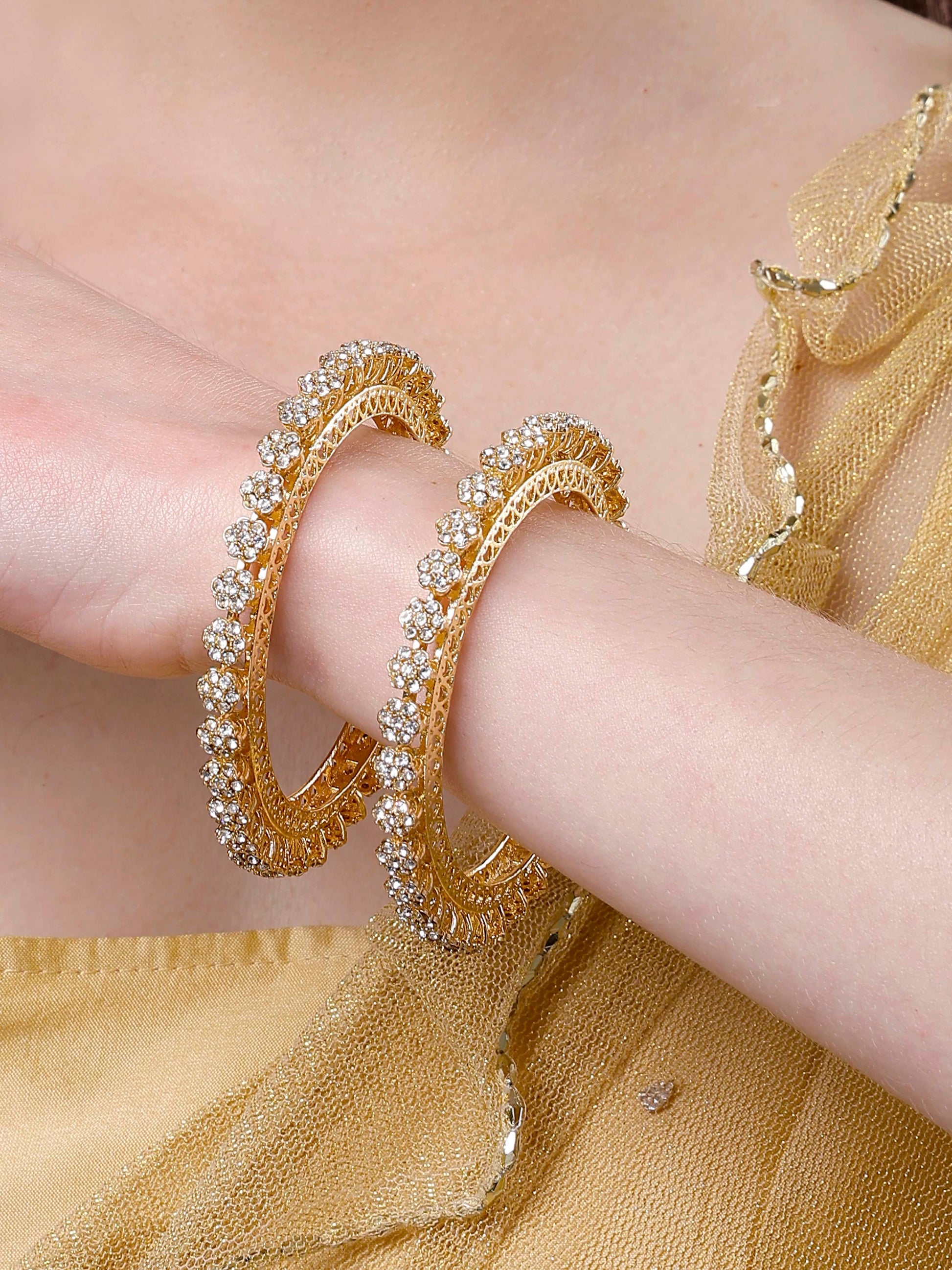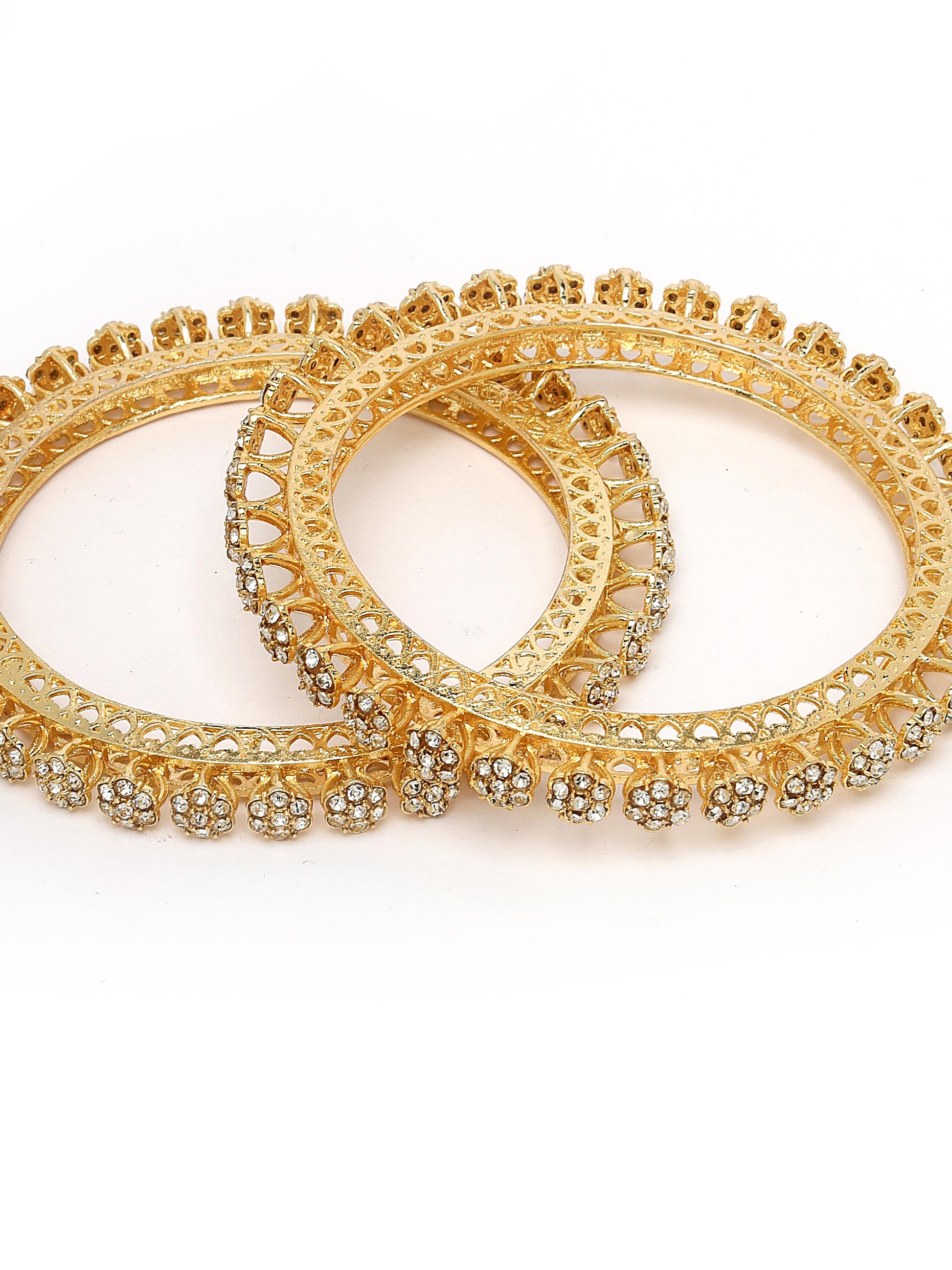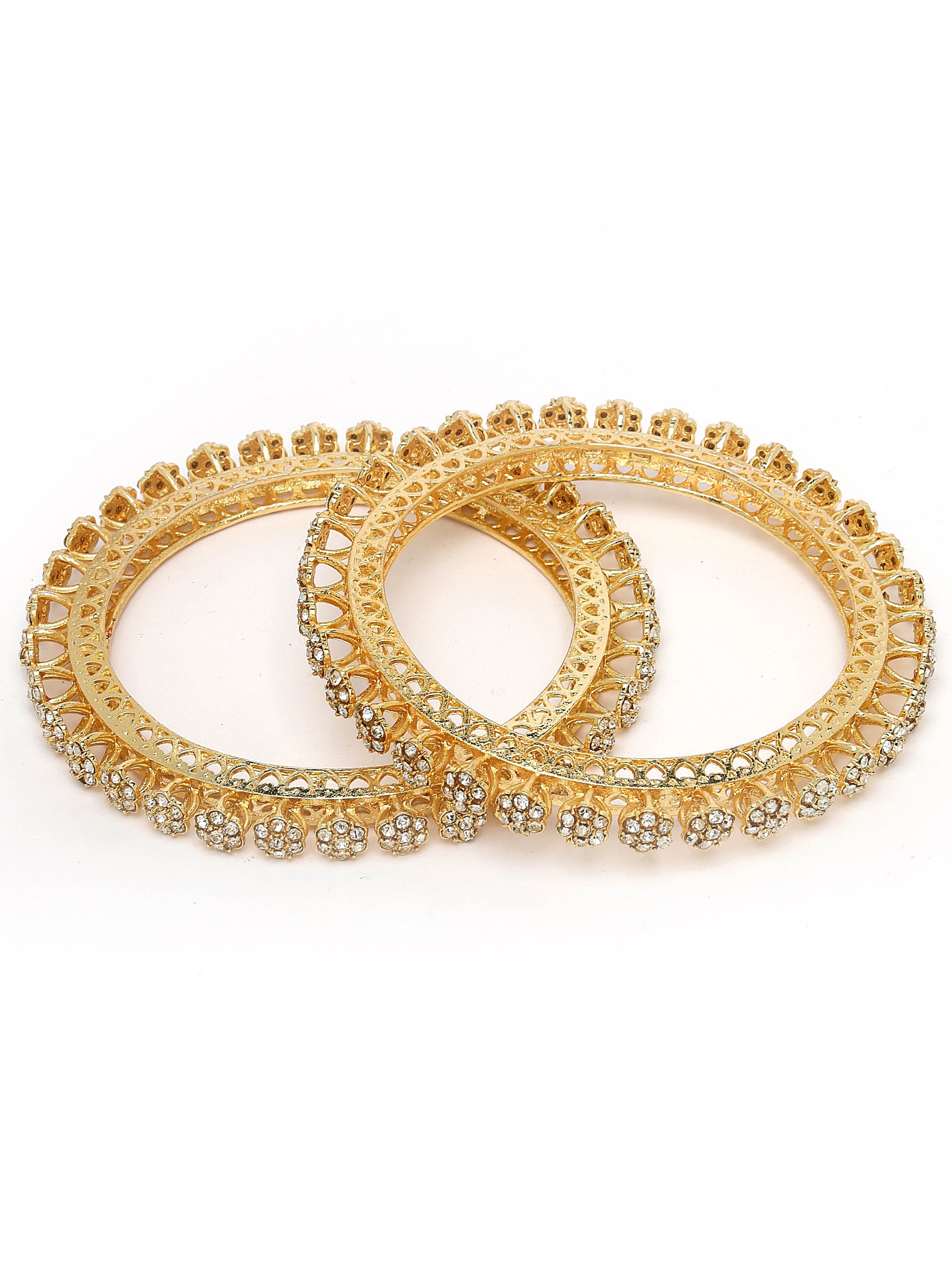 Karatcart Floral Design Set of 2 American Diamond Studded Gold Plated Bangles for Women