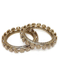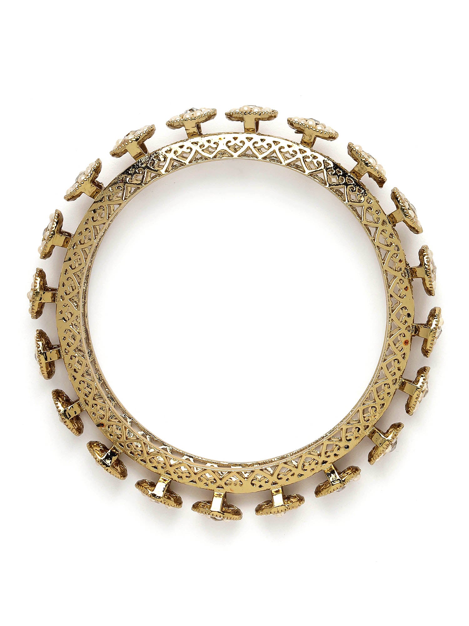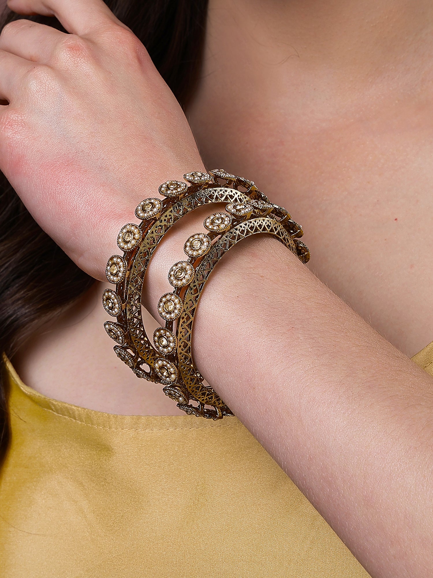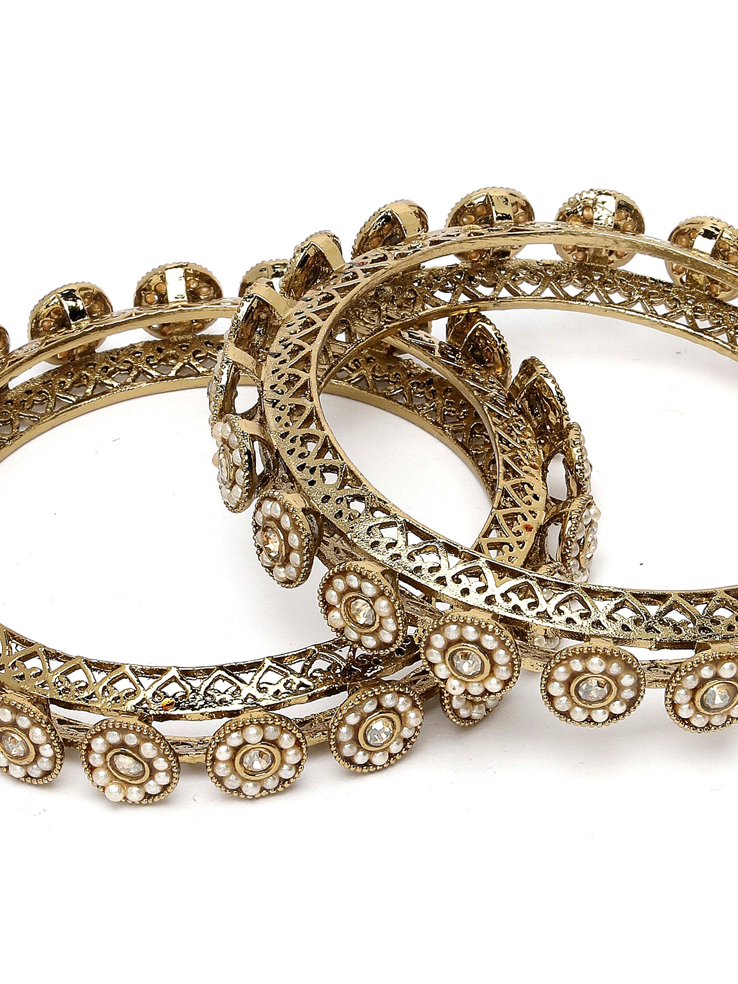 Karatcart Set of 2 White Pearl Studded Antique Gold Plated Bangles for Women