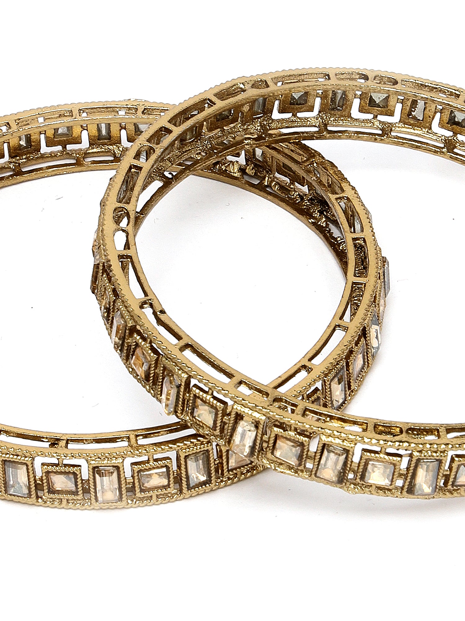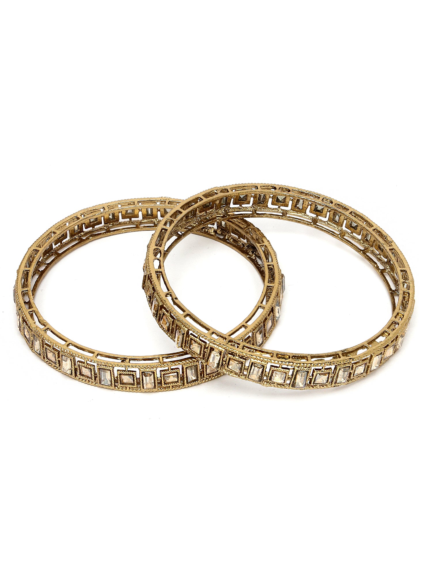 Karatcart Set of 2 Kundan Studded Antique Gold Plated Bangles for Women
