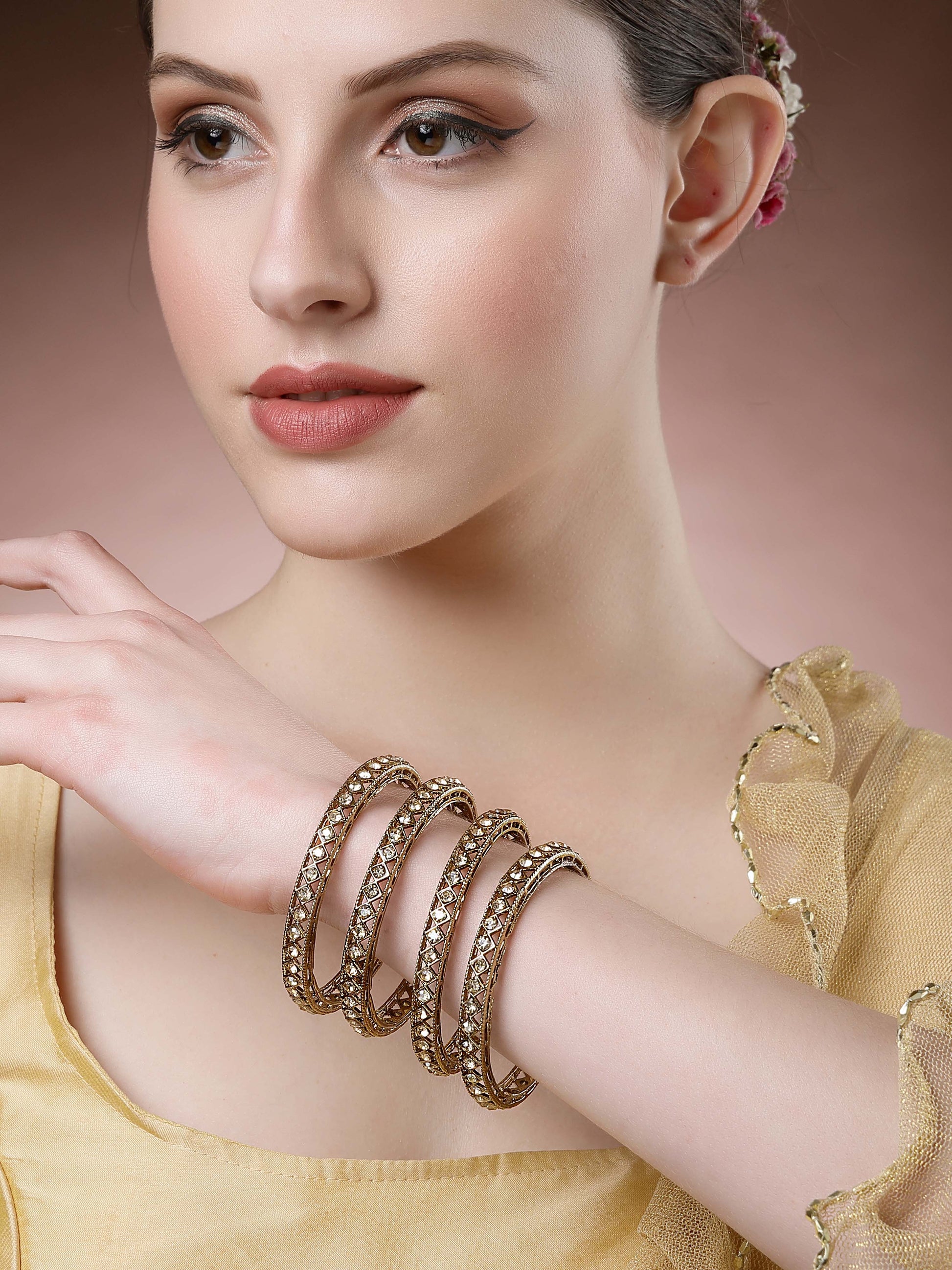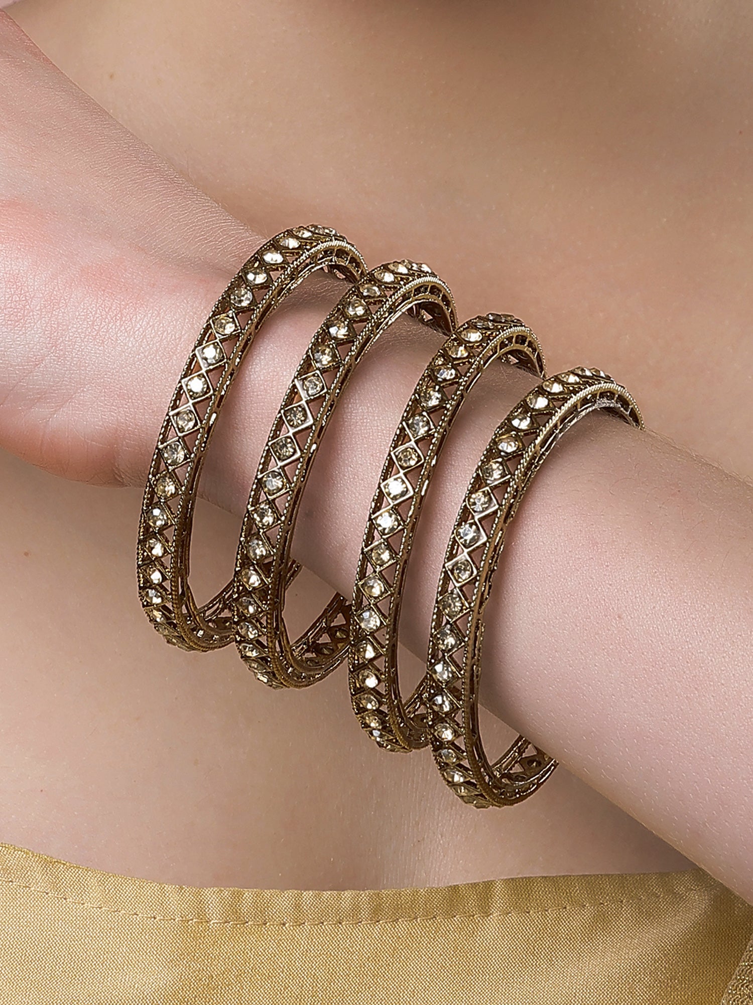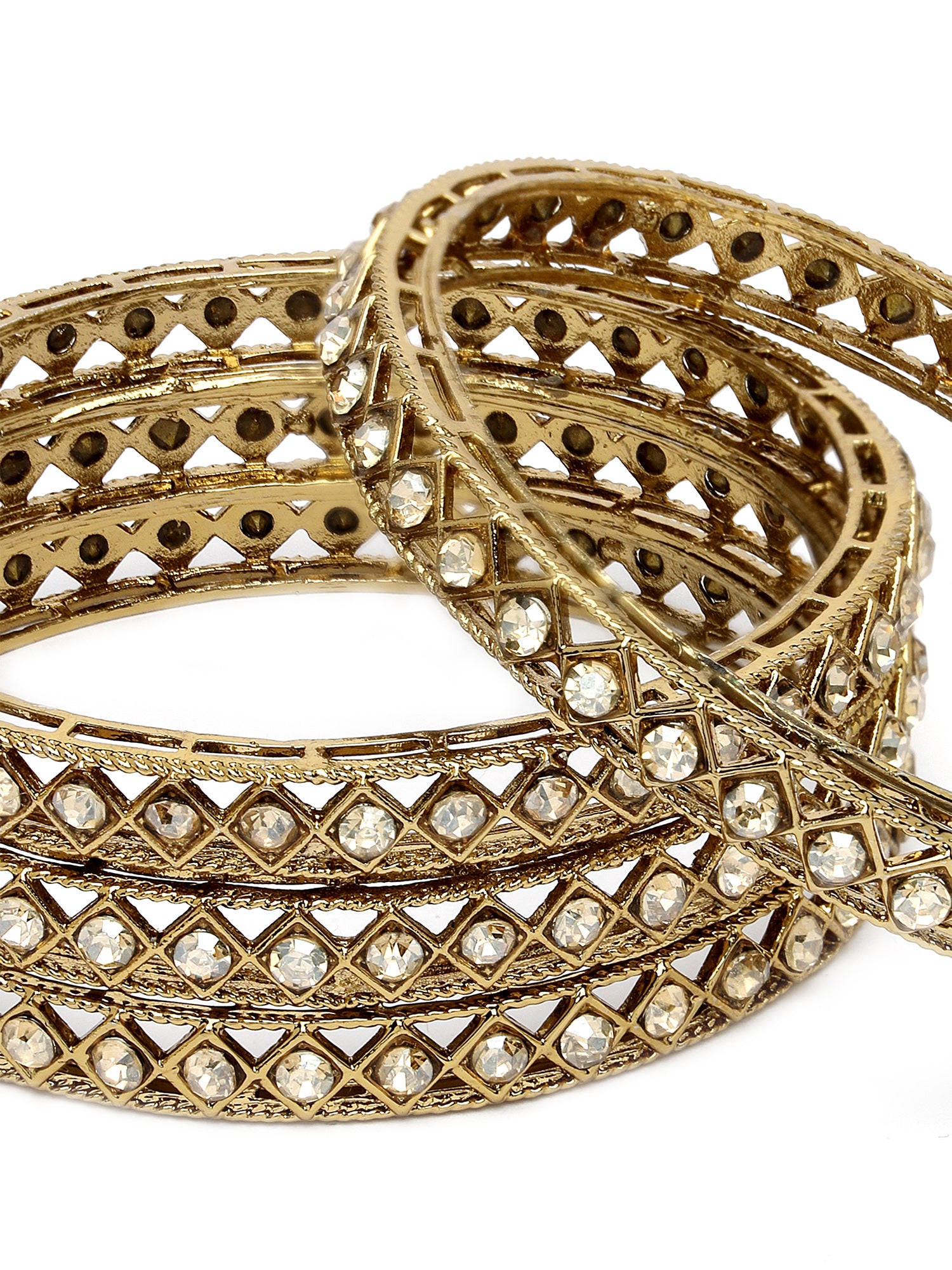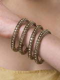 Karatcart Set of 4 Diamond Shape Kundan Studded Antique Gold Plated Bangles for Women