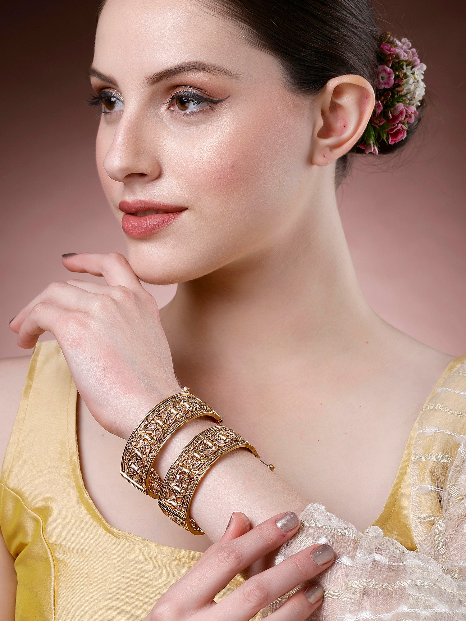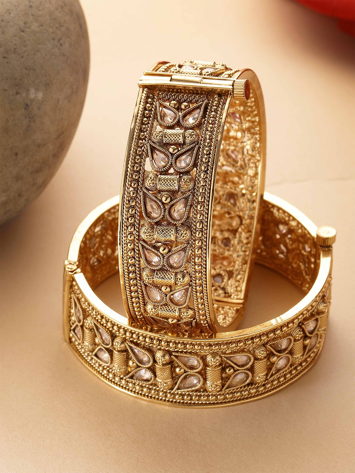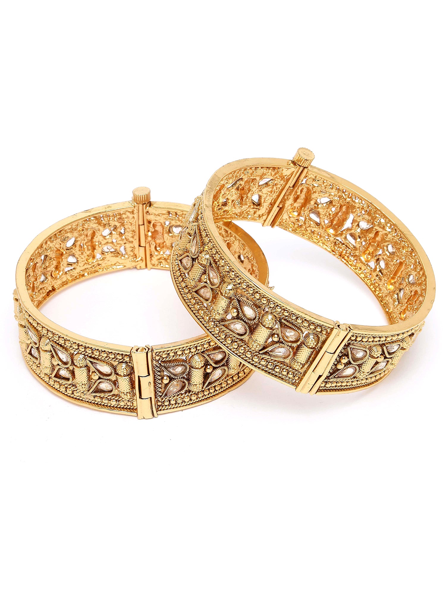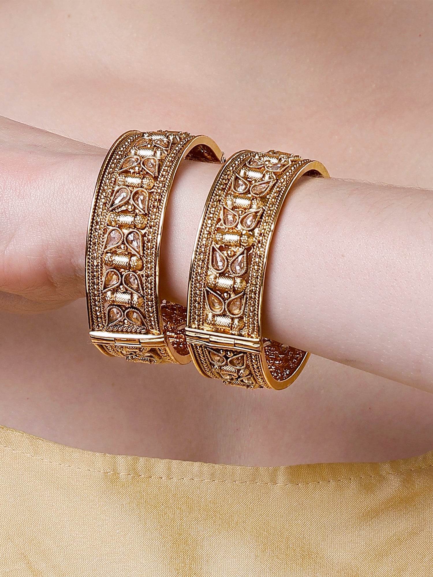 Karatcart Set of 2 Antique Gold Plated Drop Shape Bangles for Women