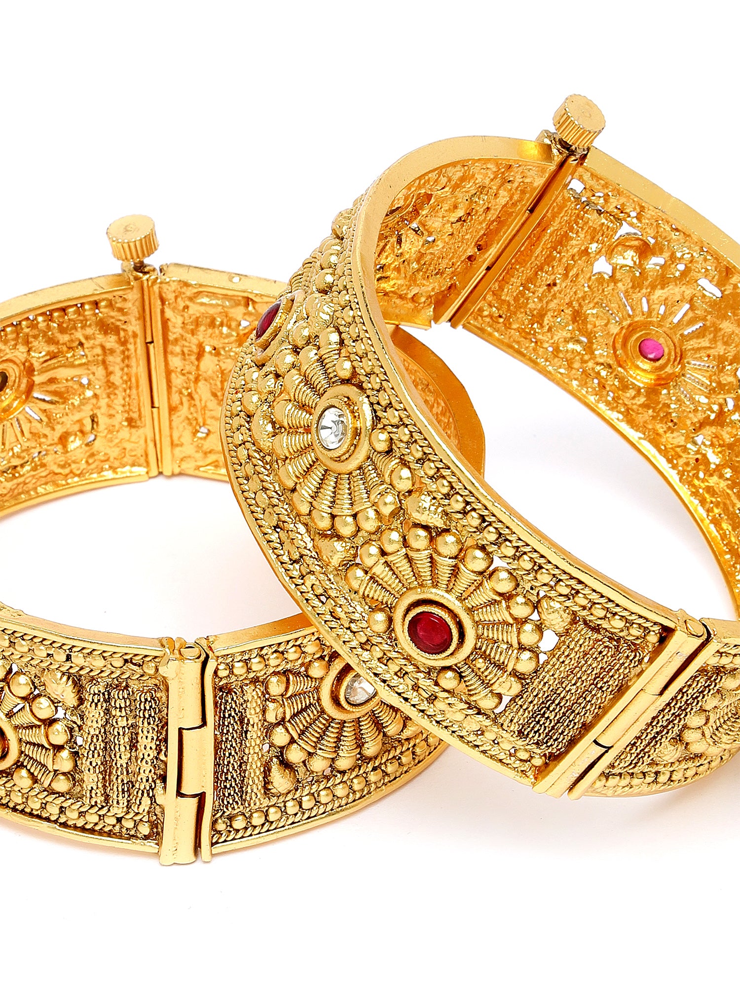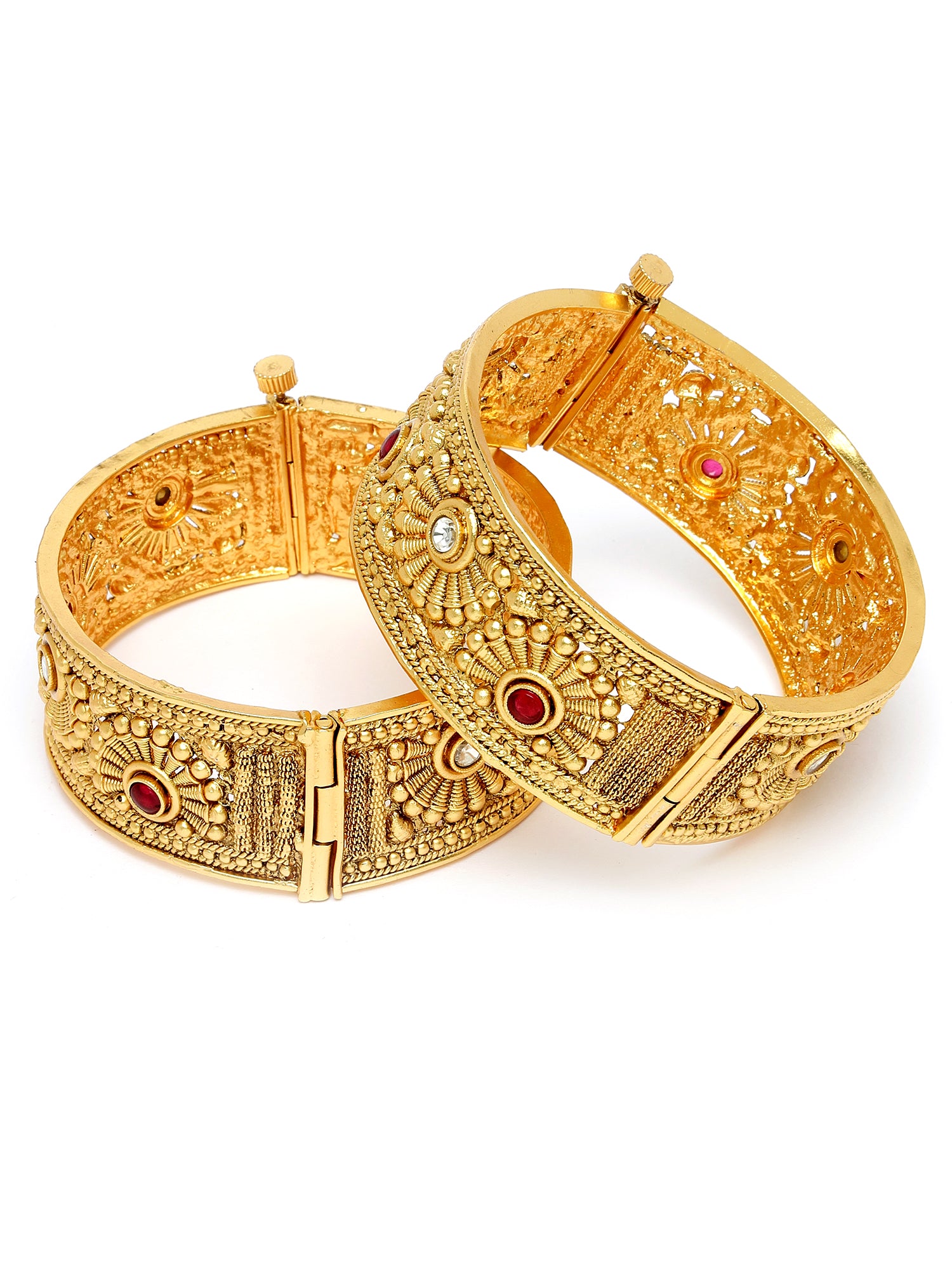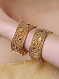 Karatcart Set of 2 Gold Plated Rising Sun Design Floral Bangles for Women
