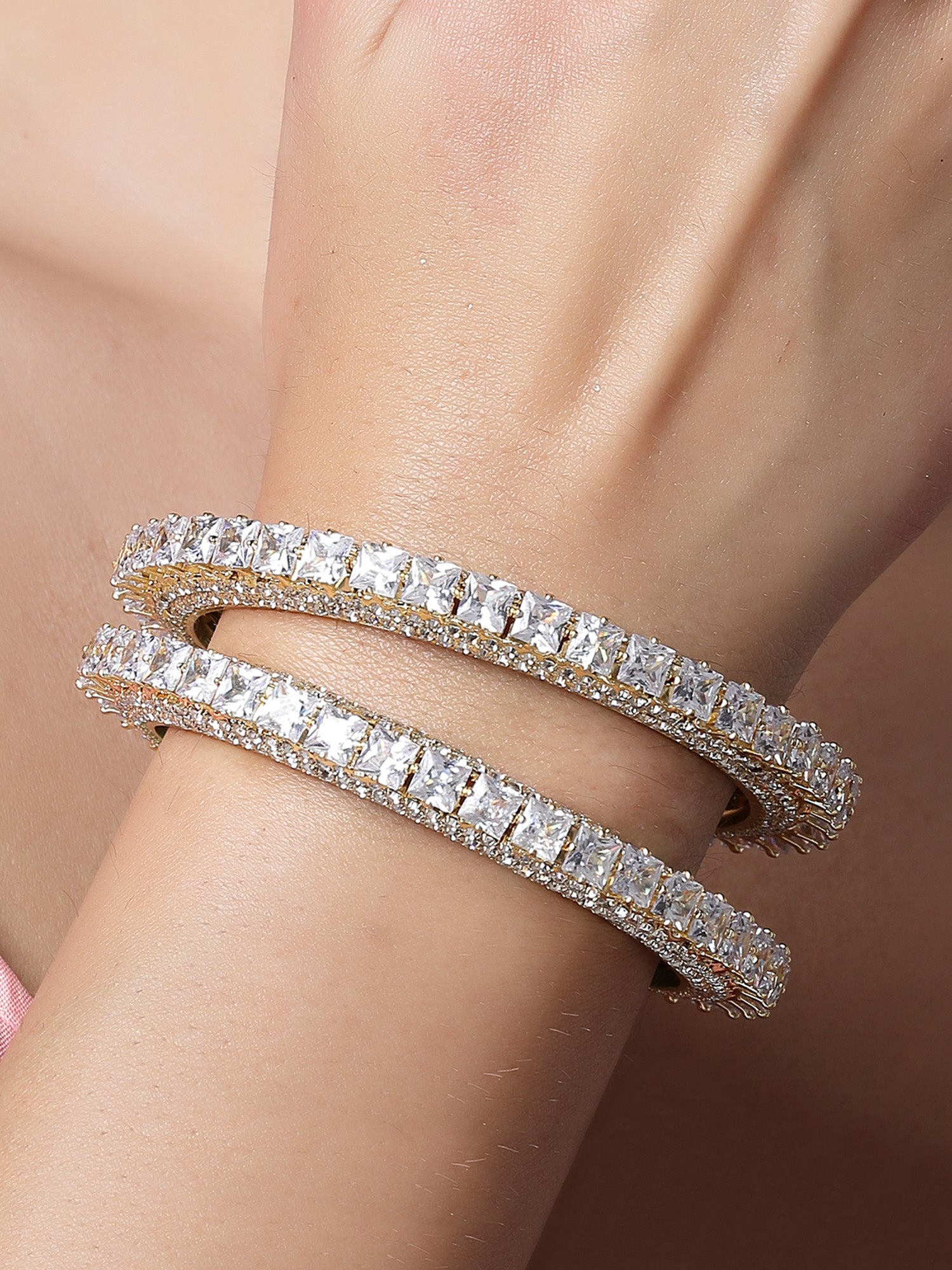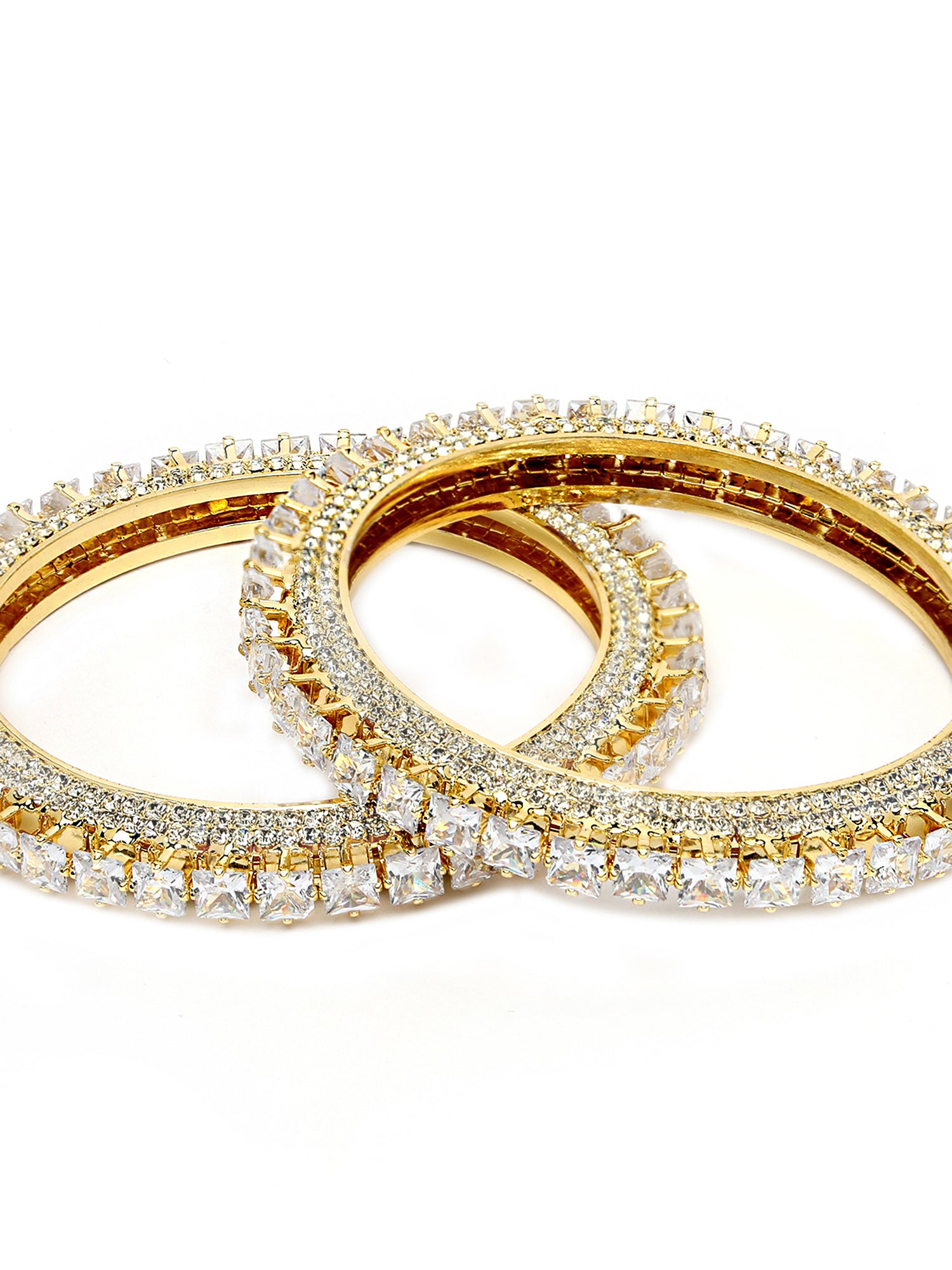 Karatcart Set of 2 Gold Plated Square American Diamond Studded Bangles for Women