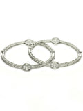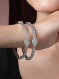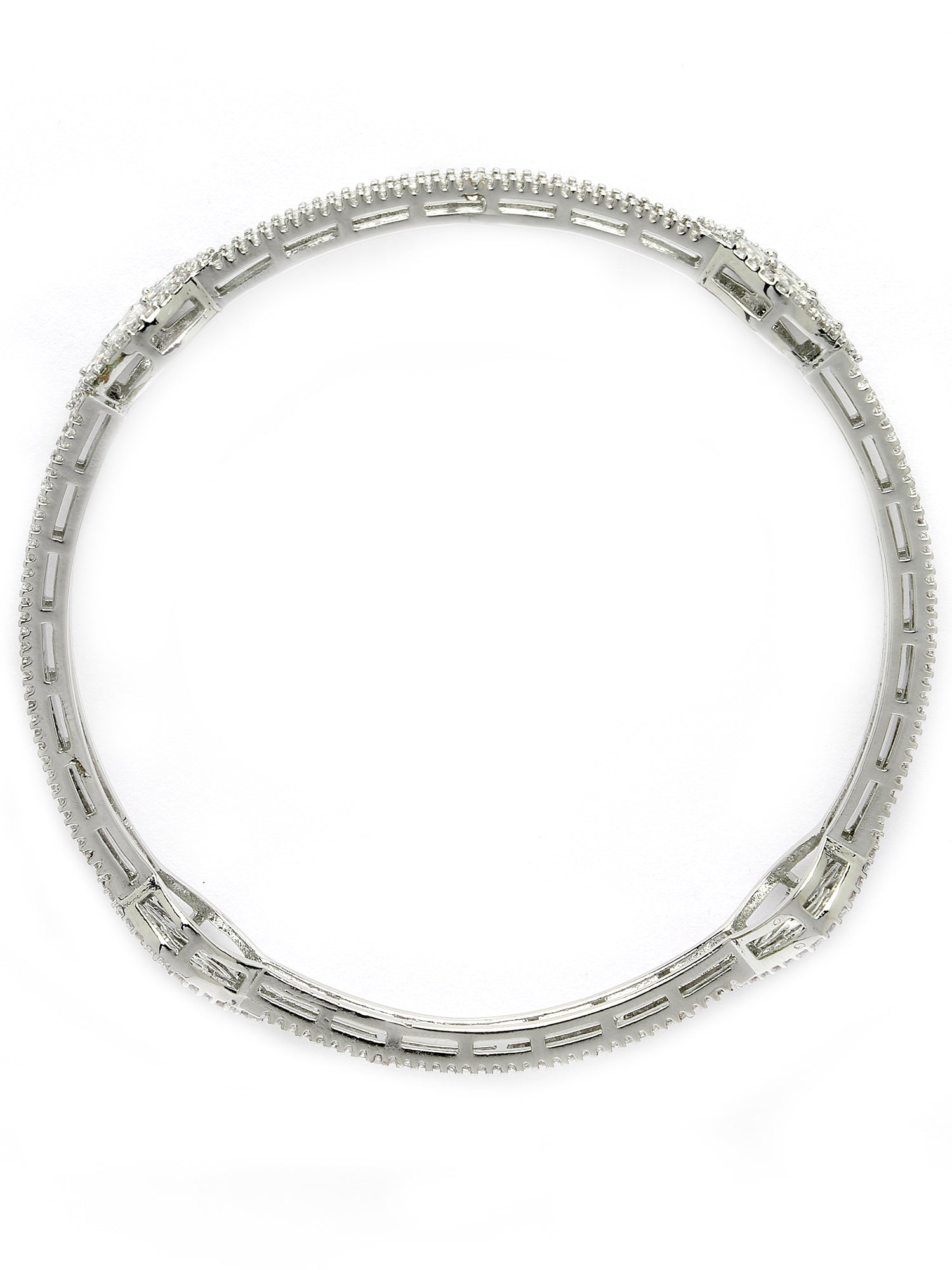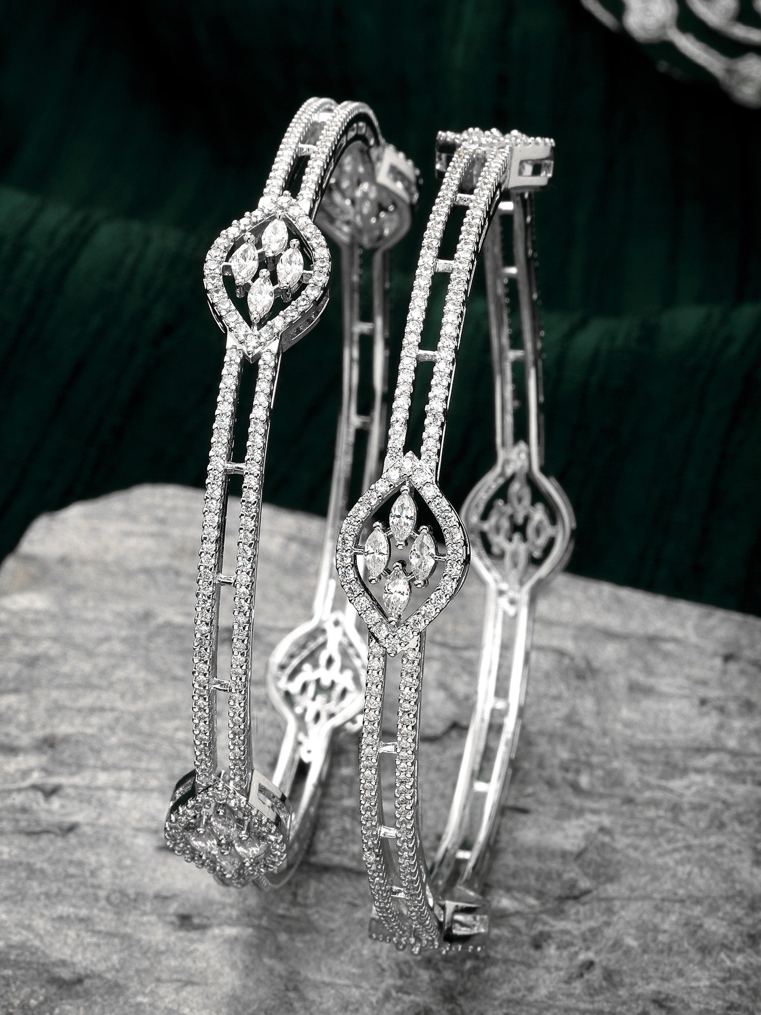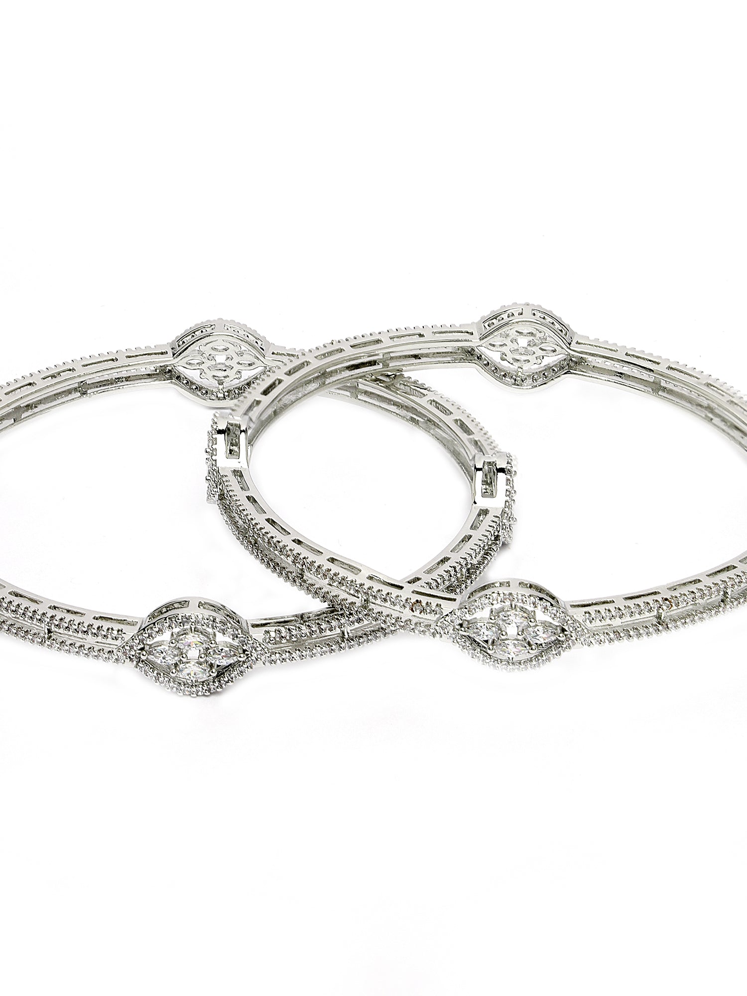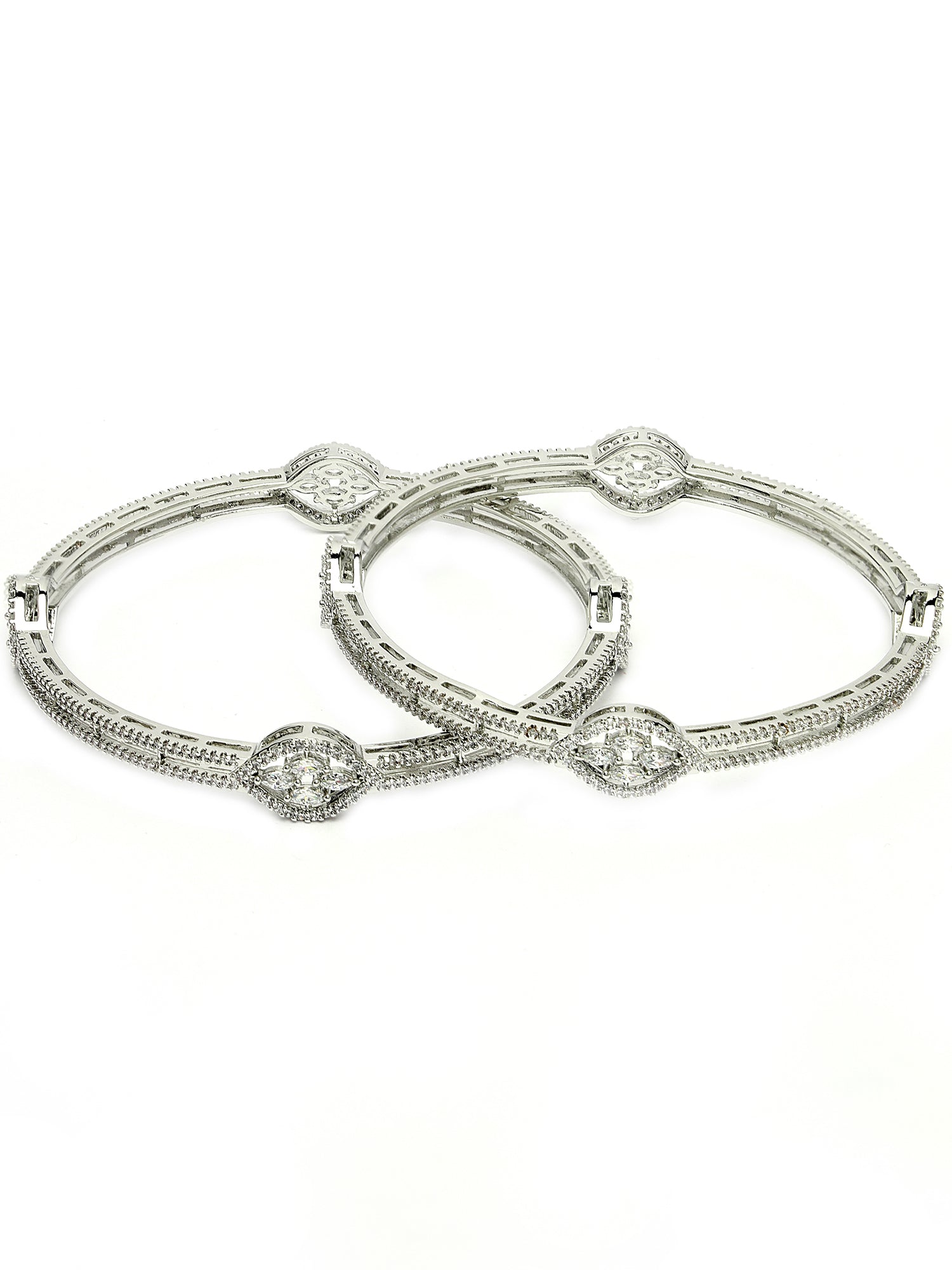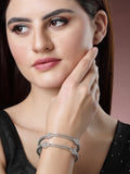 Karatcart Set of 2 American Diamond Studded Silver Tone Bangles for Women
