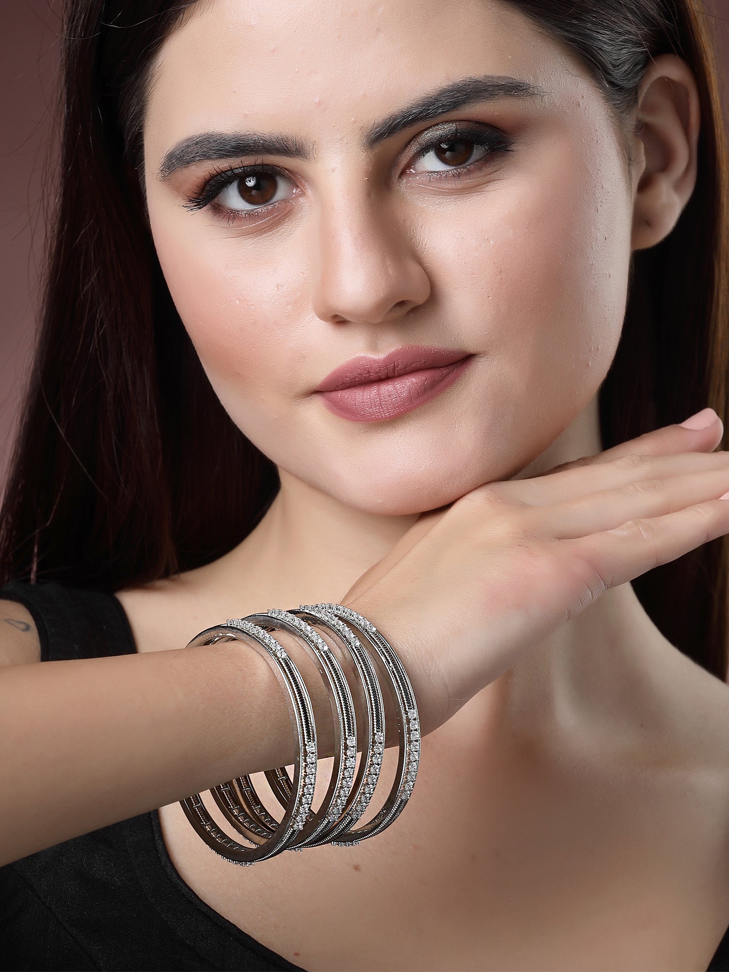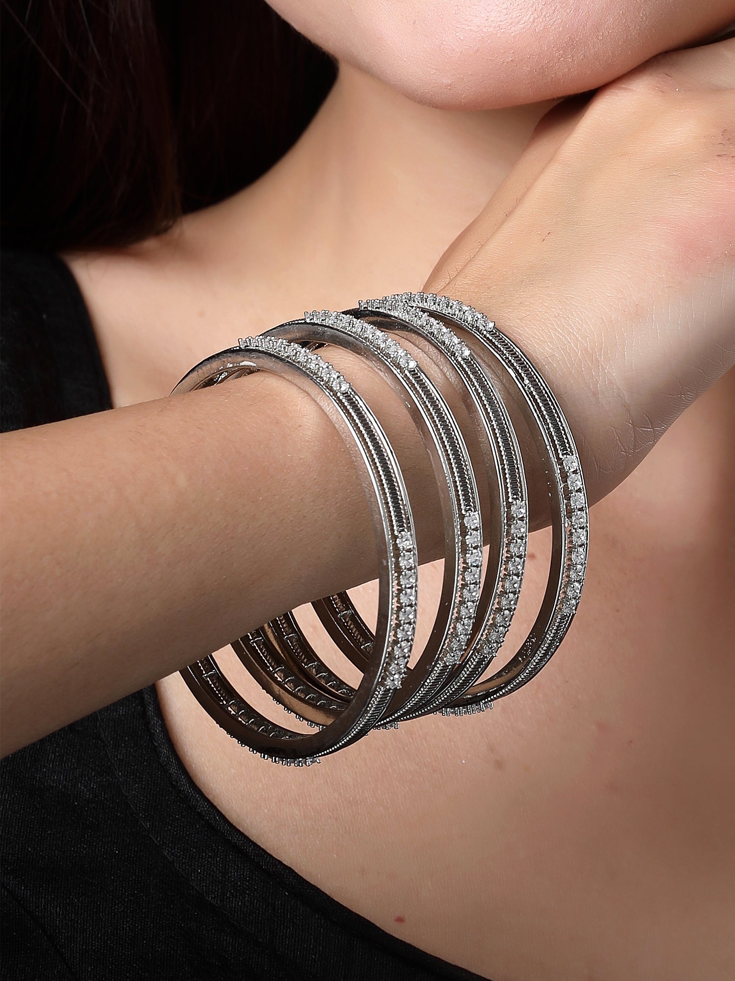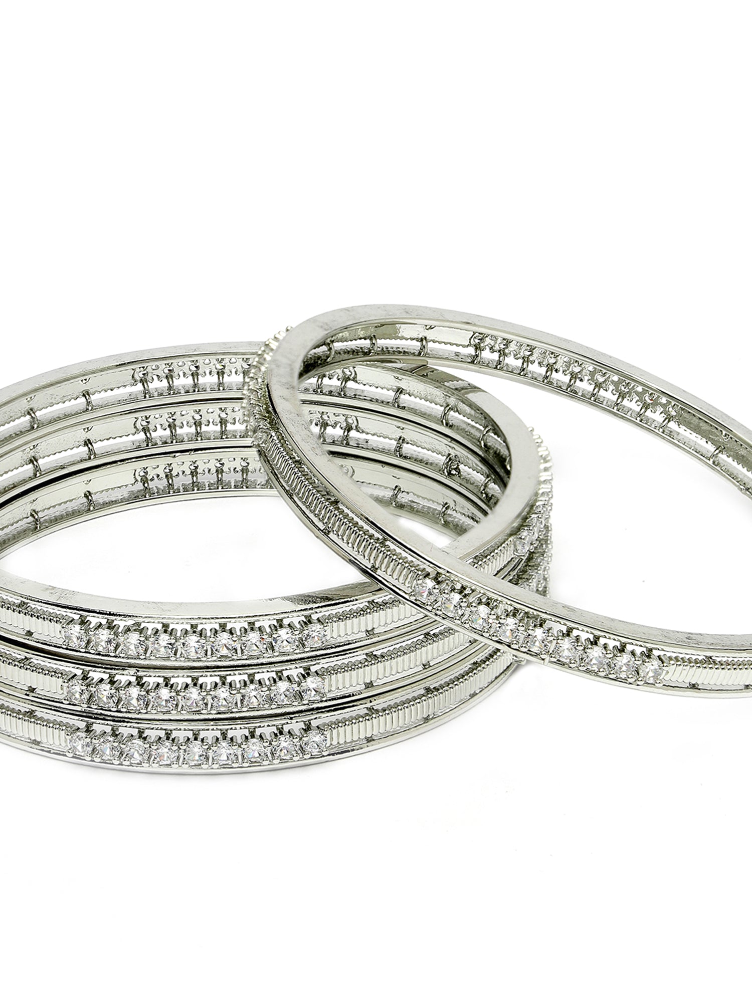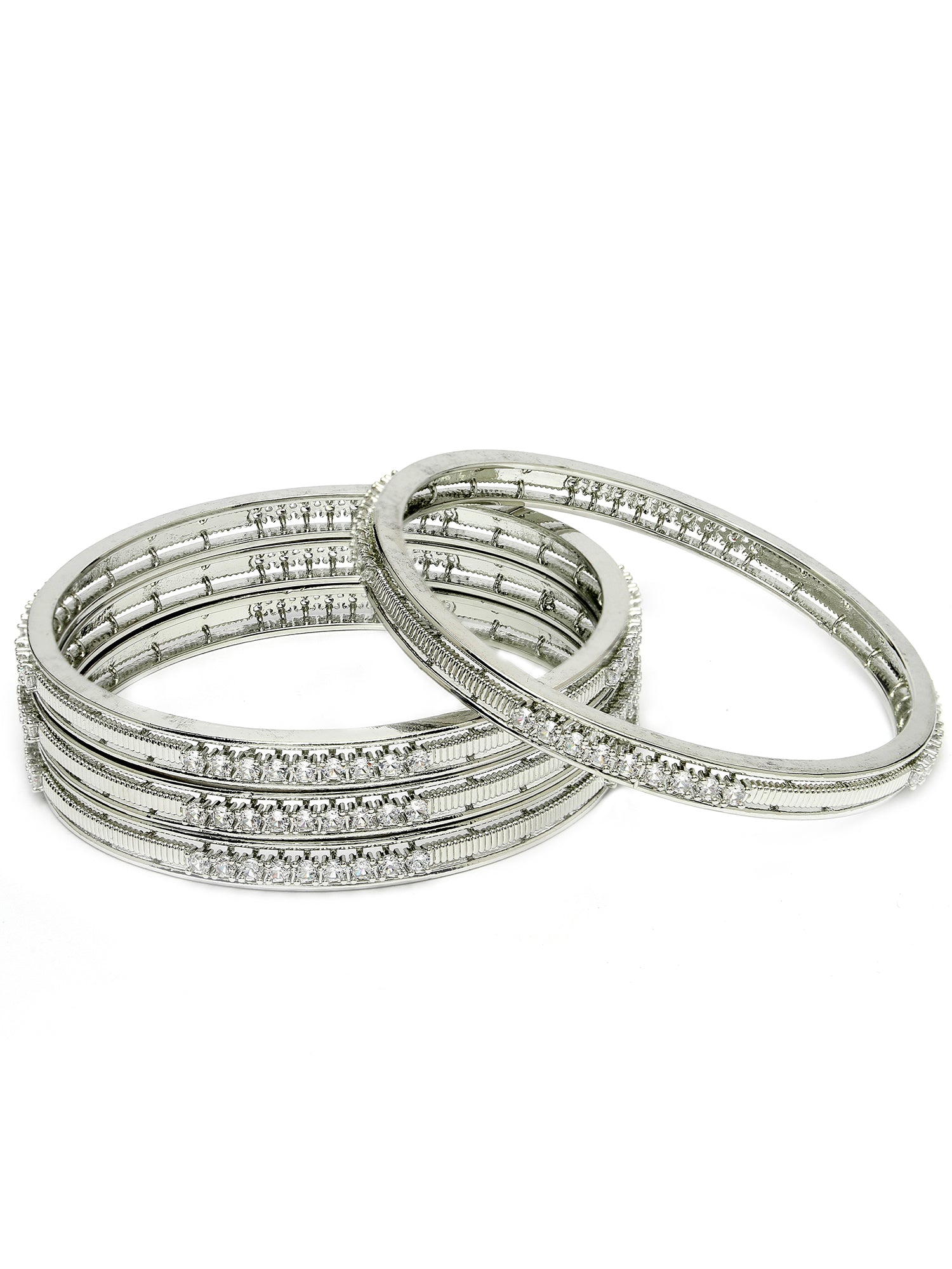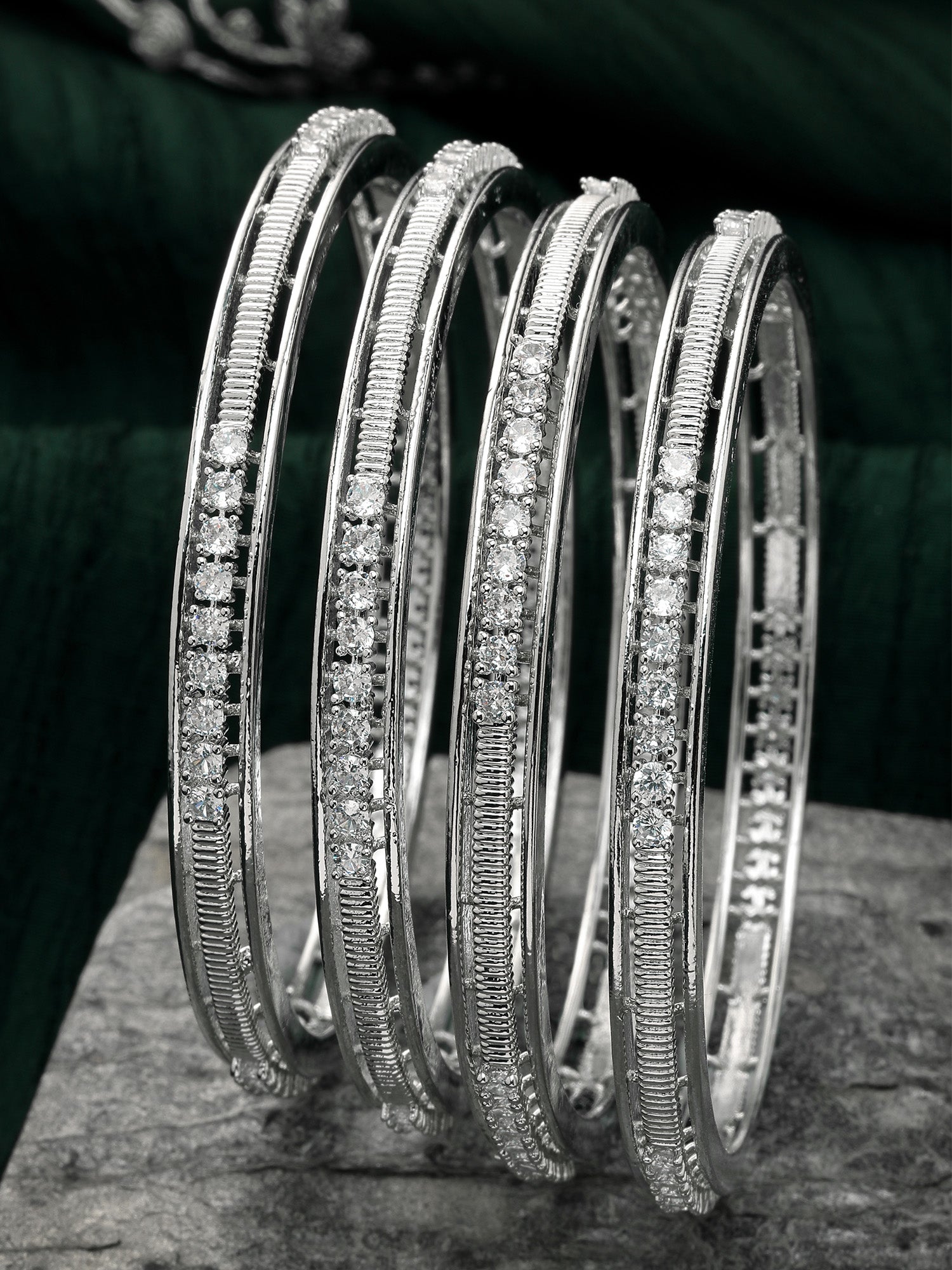 Karatcart Silver Plated Set of 4 American Diamond Studded Bangles for Women
