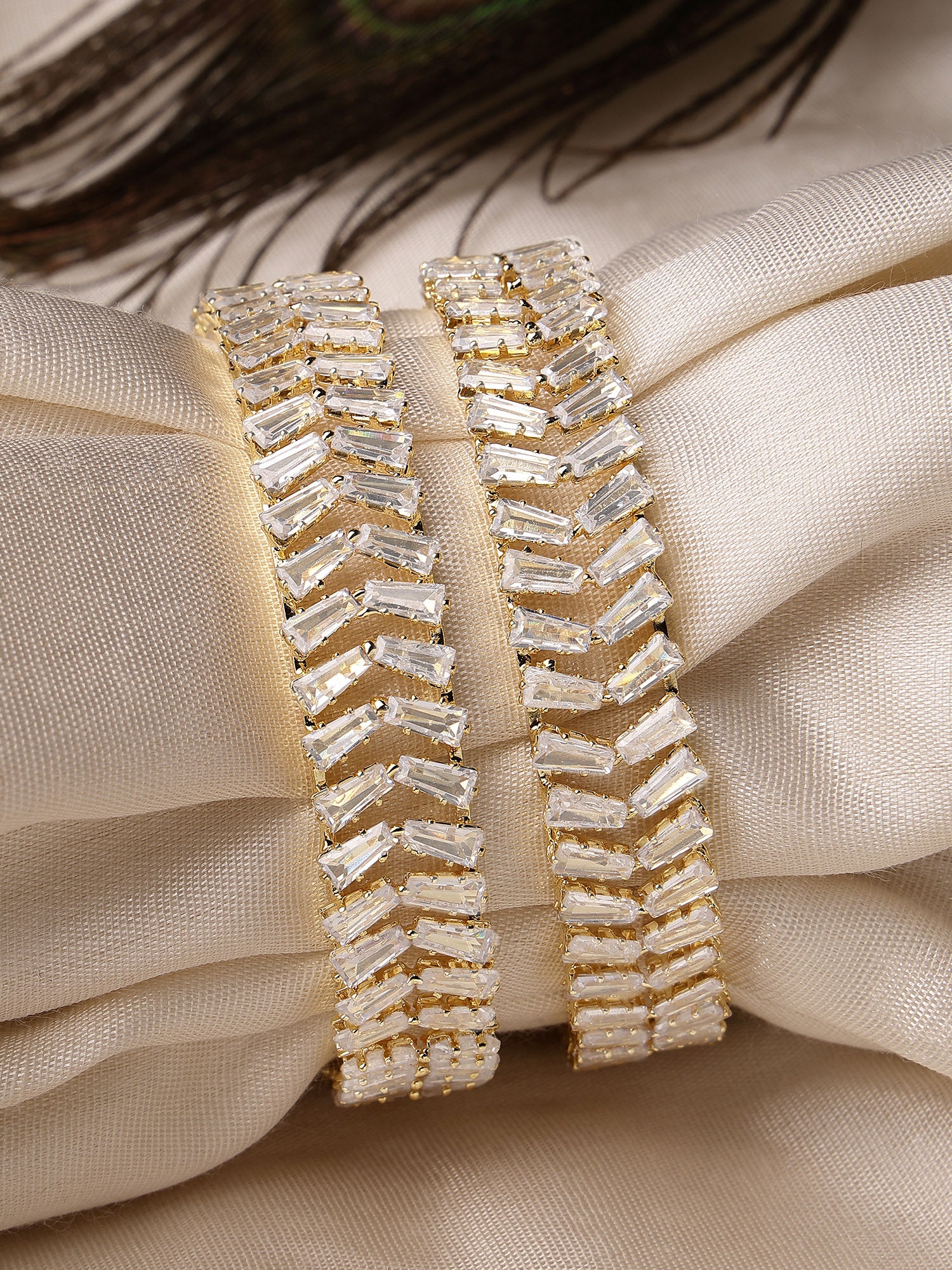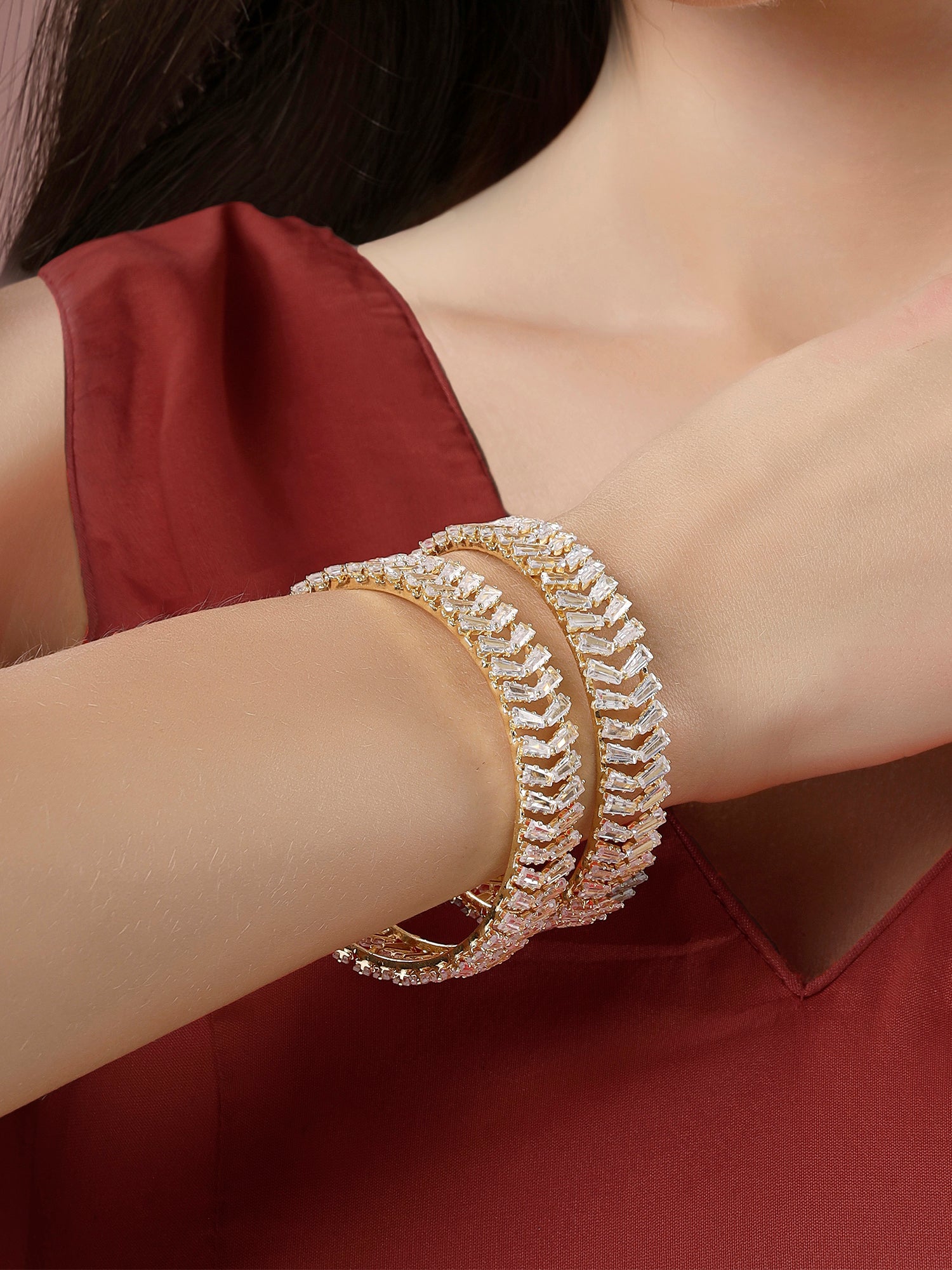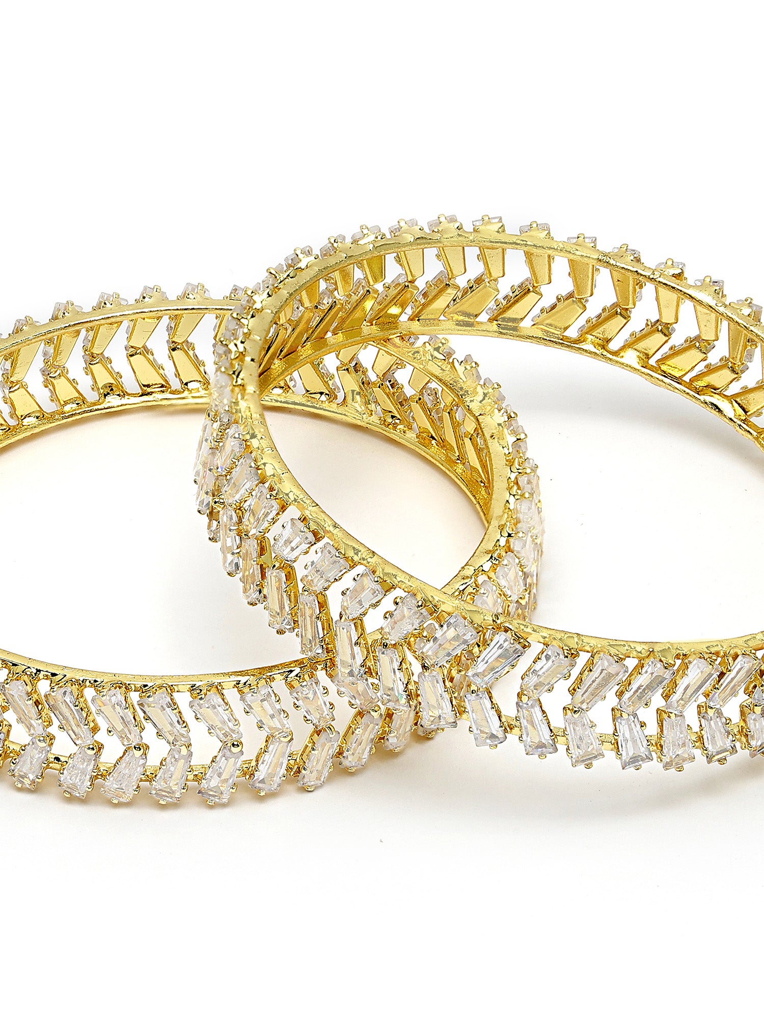 Karatcart Gold Plated Set of 2 American Diamond Studded Bangles for Women