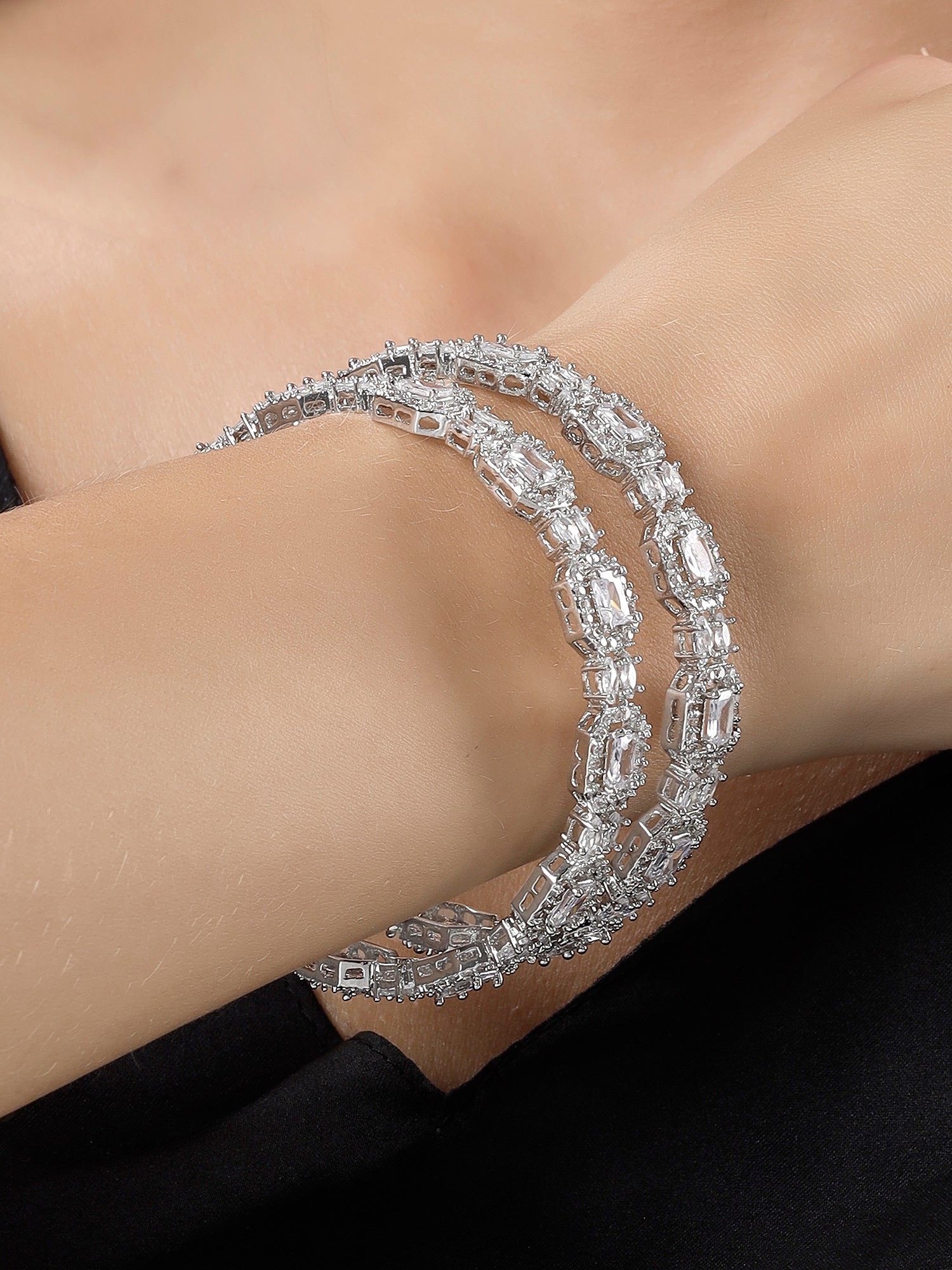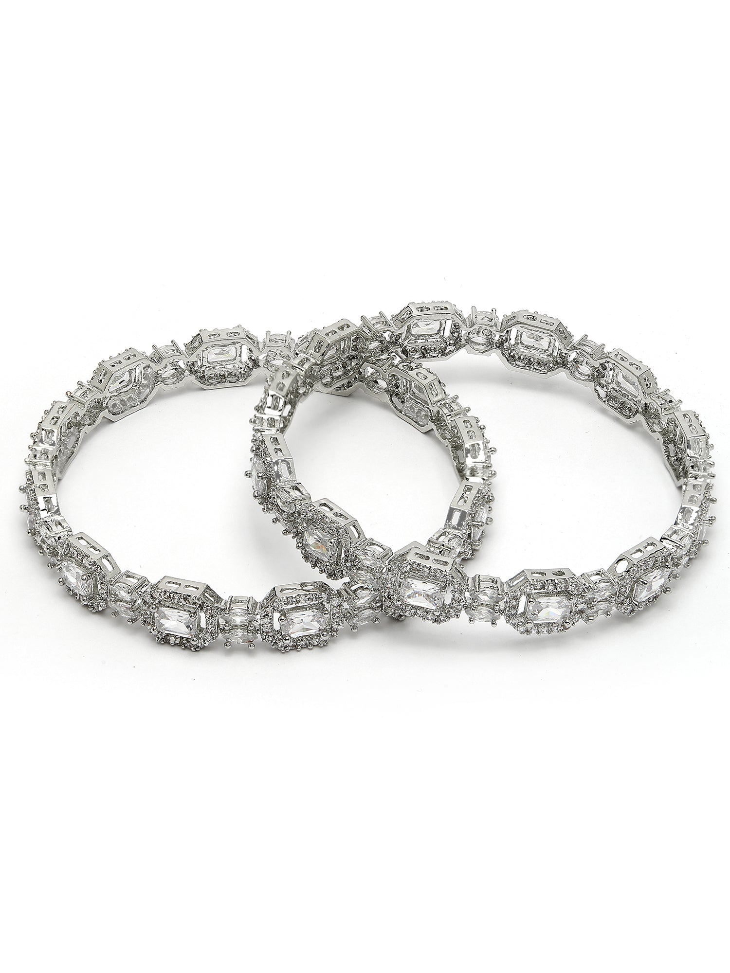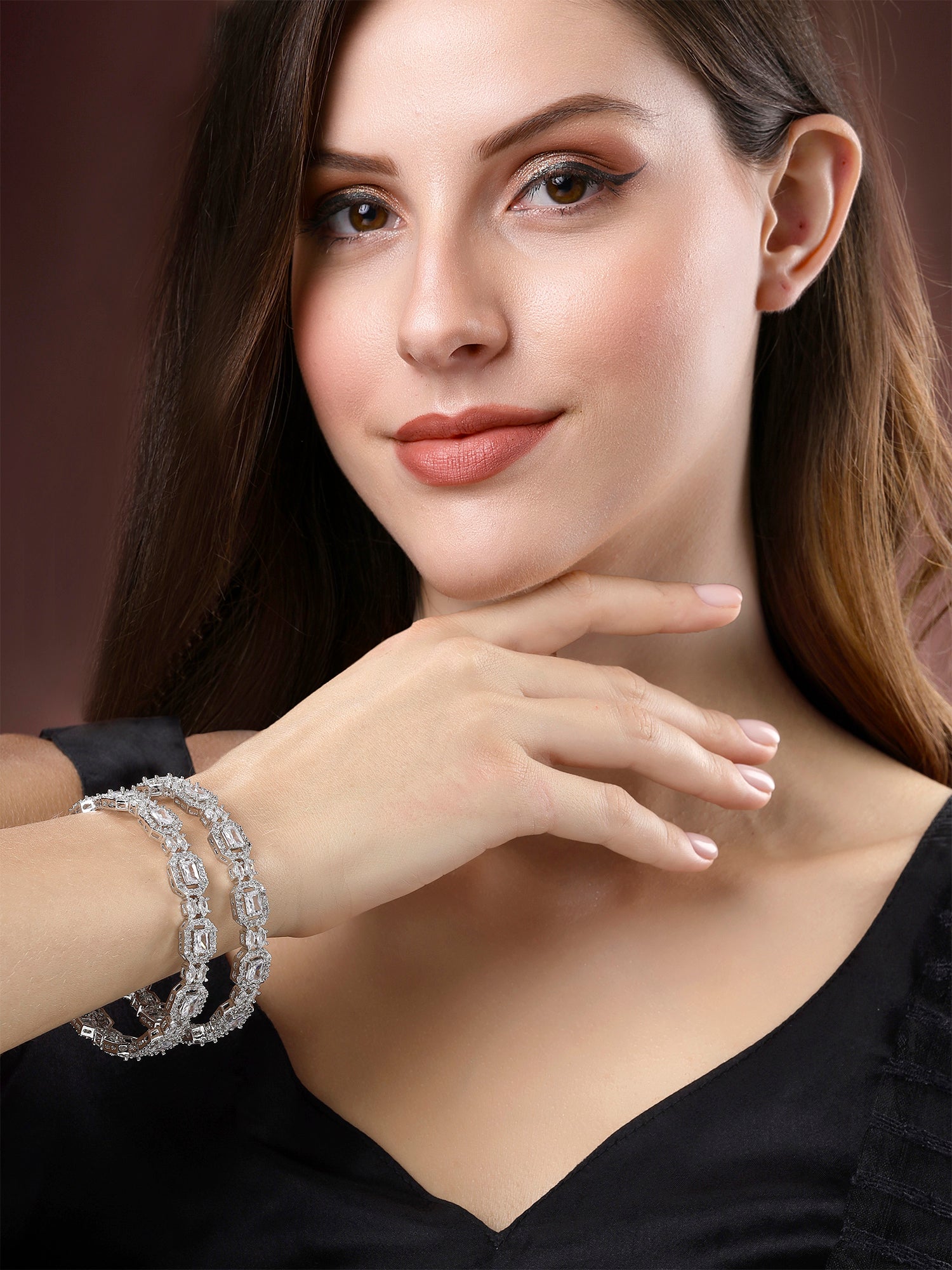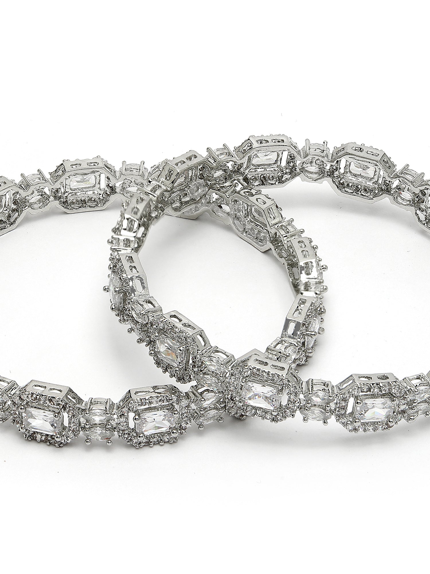Karatcart Silver Plated Set of 2 American Diamond Studded Bangles for Women