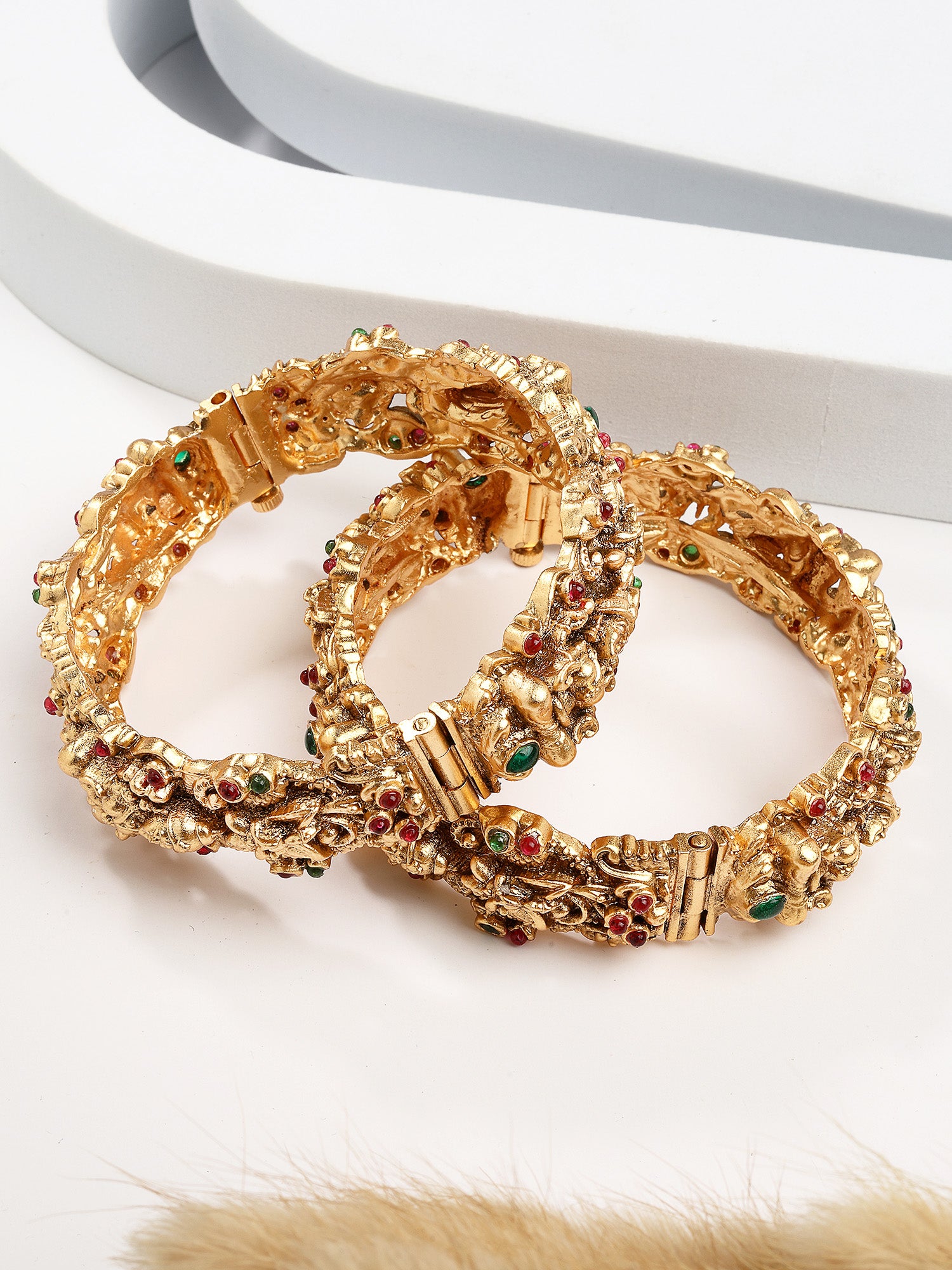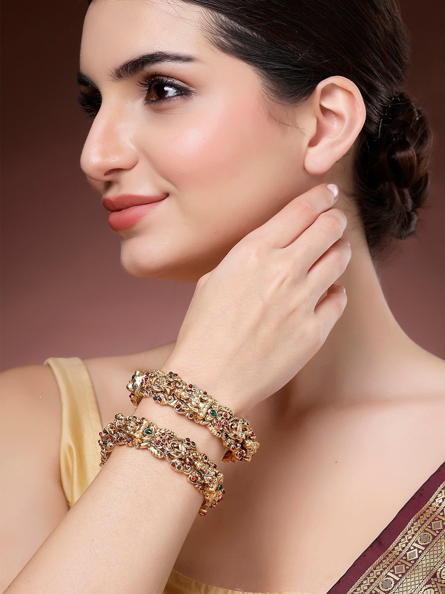 Karatcart Set of 2 Antique Gold-Plated Laxmi Mata South Indian Style Temple Bangles for Women (2.4)