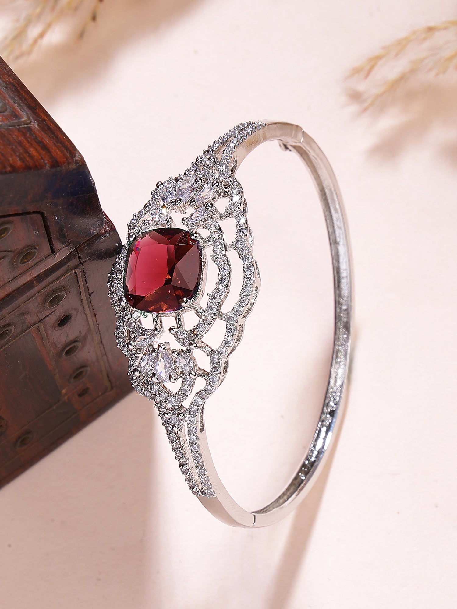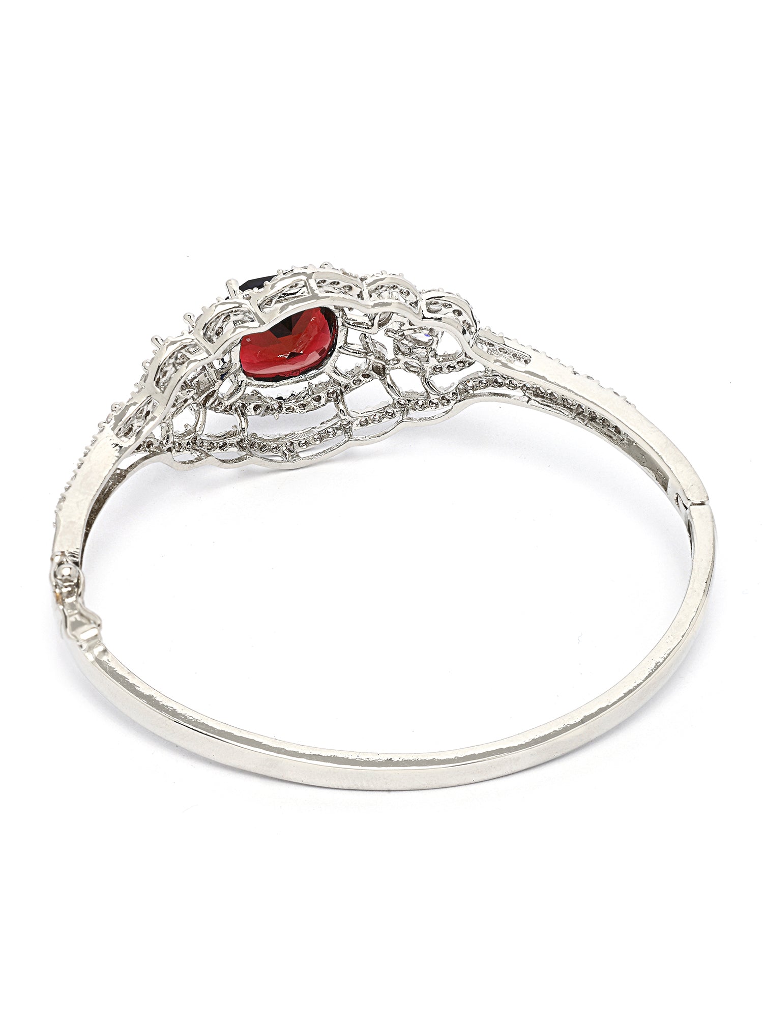 Karatcart Elegant Silver Plated Red American Diamond Designer Bracelet for Women