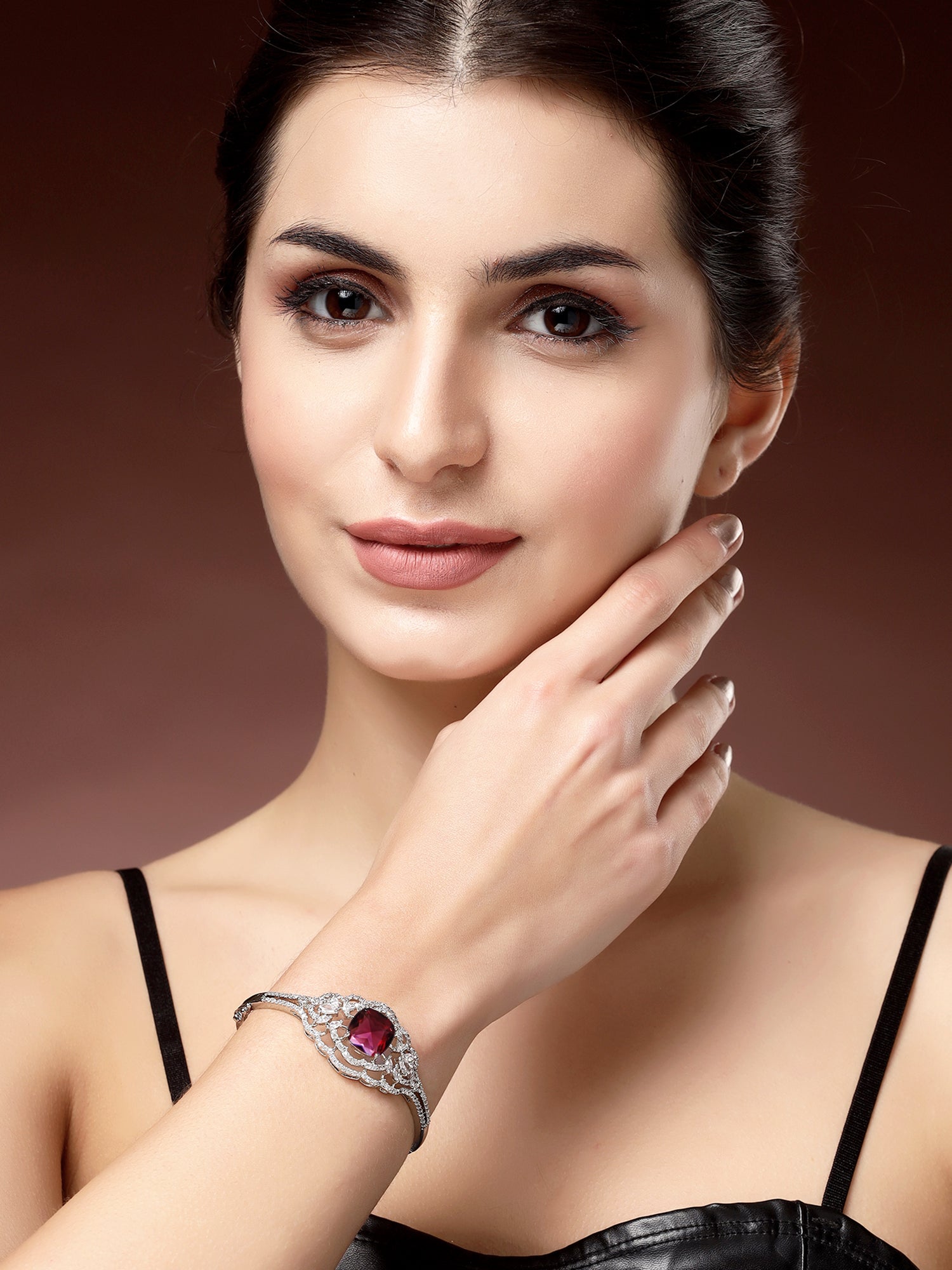 - This is a Red Bracelet by Brand Karatcart which has American Diamond stones. This is Silver Plated. We at KARATCART understand your desire to look the best on any day & we thrive in making any day an occasion. Every individual at Karatcart carries a passion for jewellery and it reflects in our beautiful designs as well as in our breathtaking craftsmanship. We create unique jewellery so you can make heads turn.