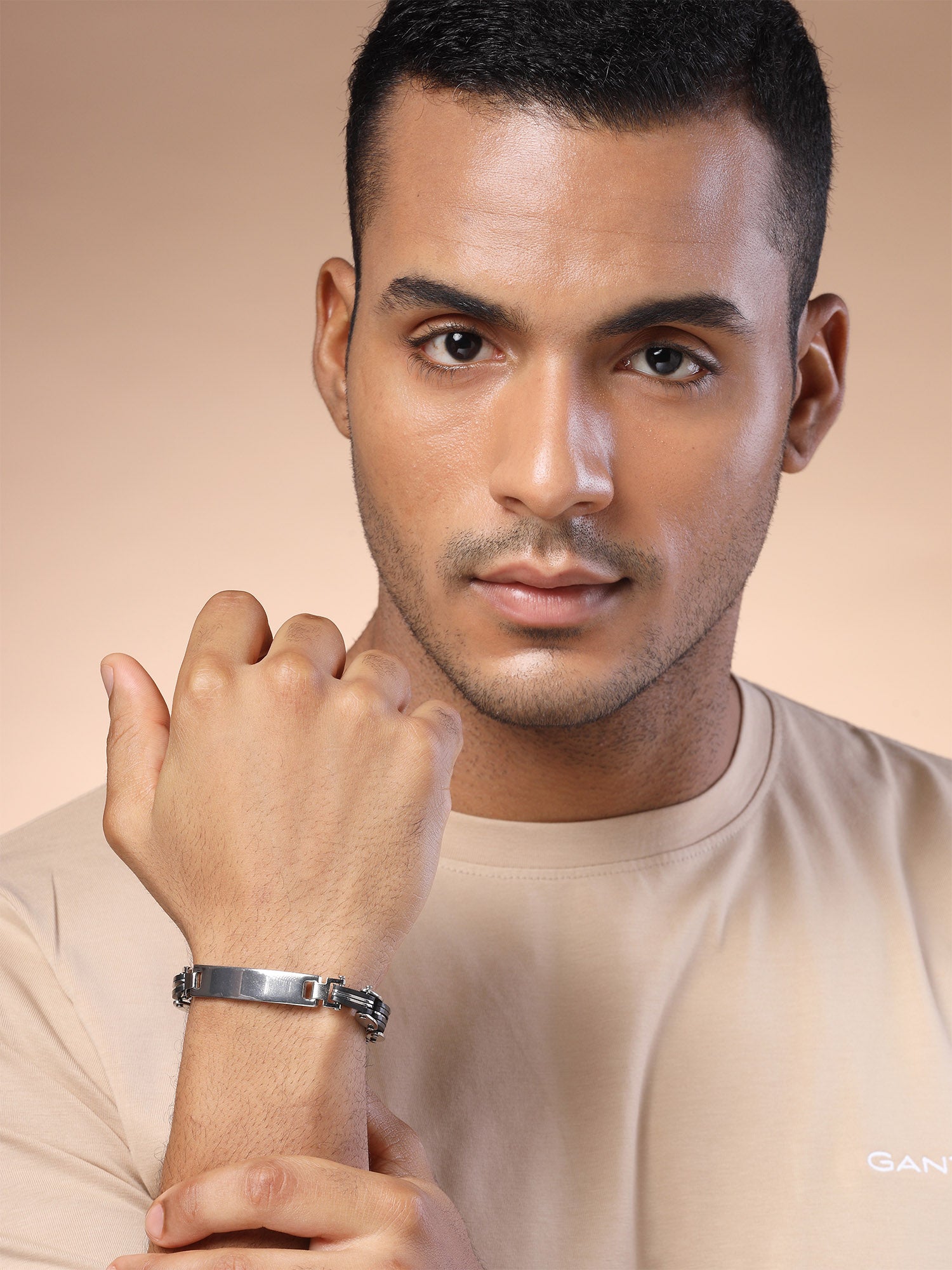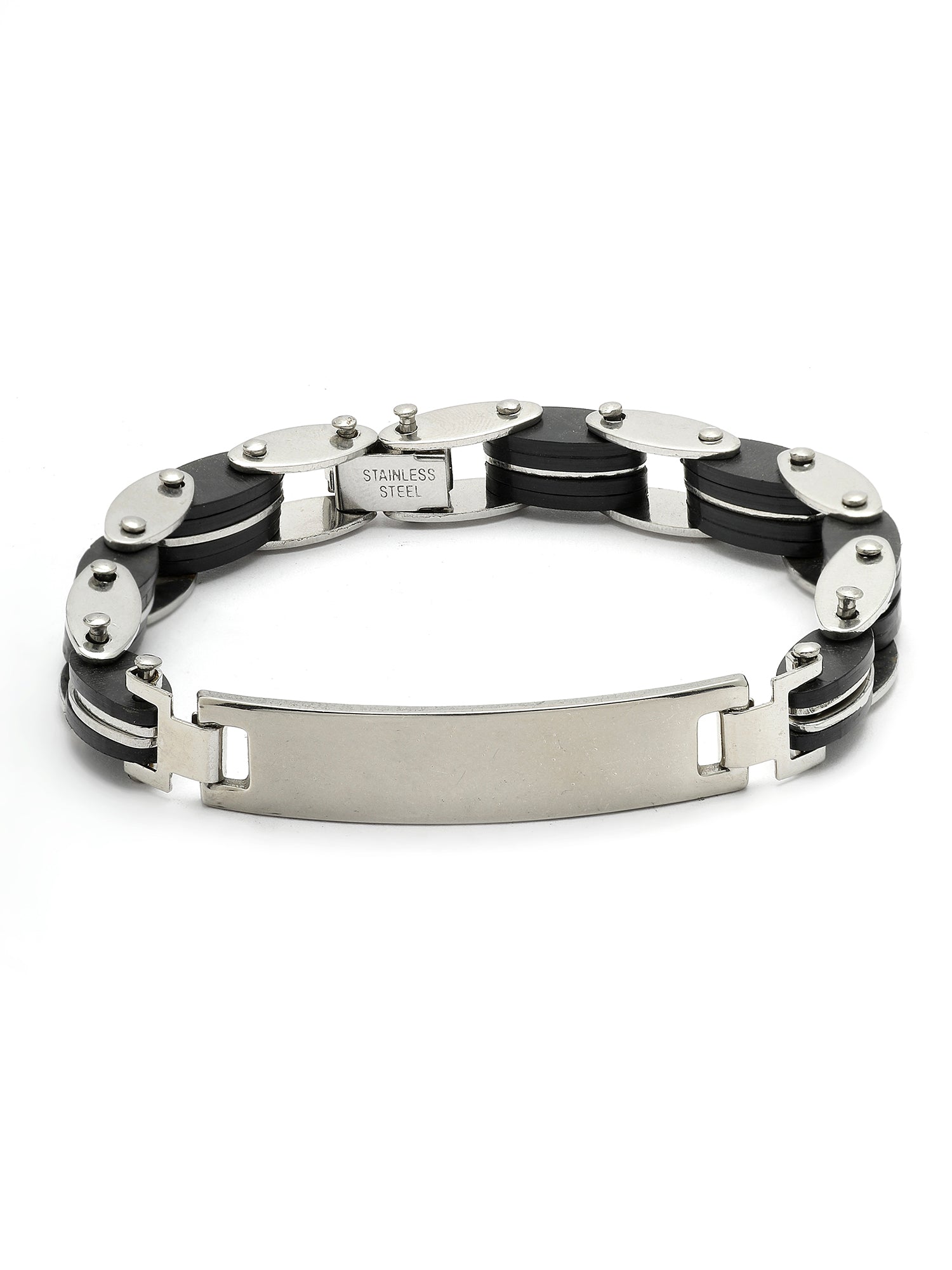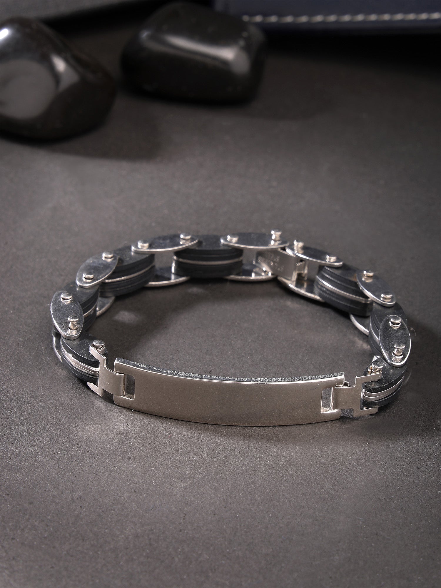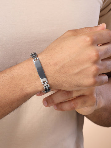 Bohey by KARATCART Black and Silver Link Bracelet for Men