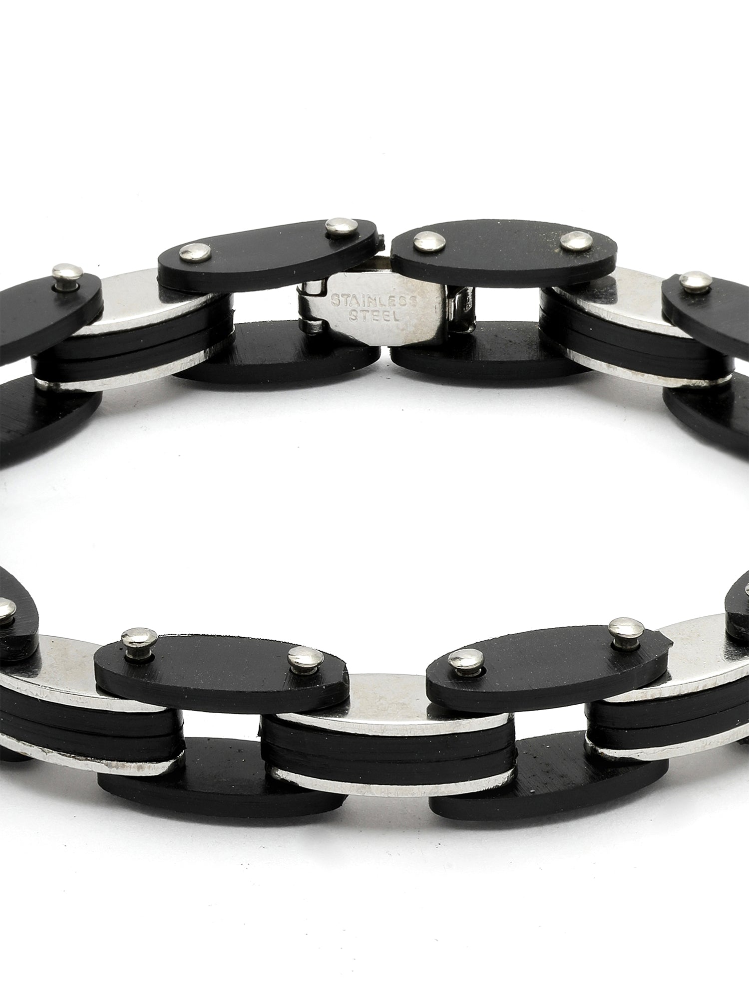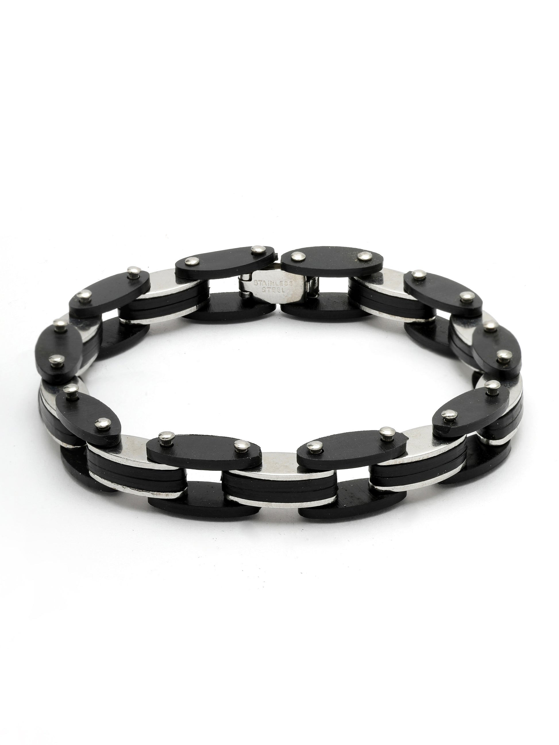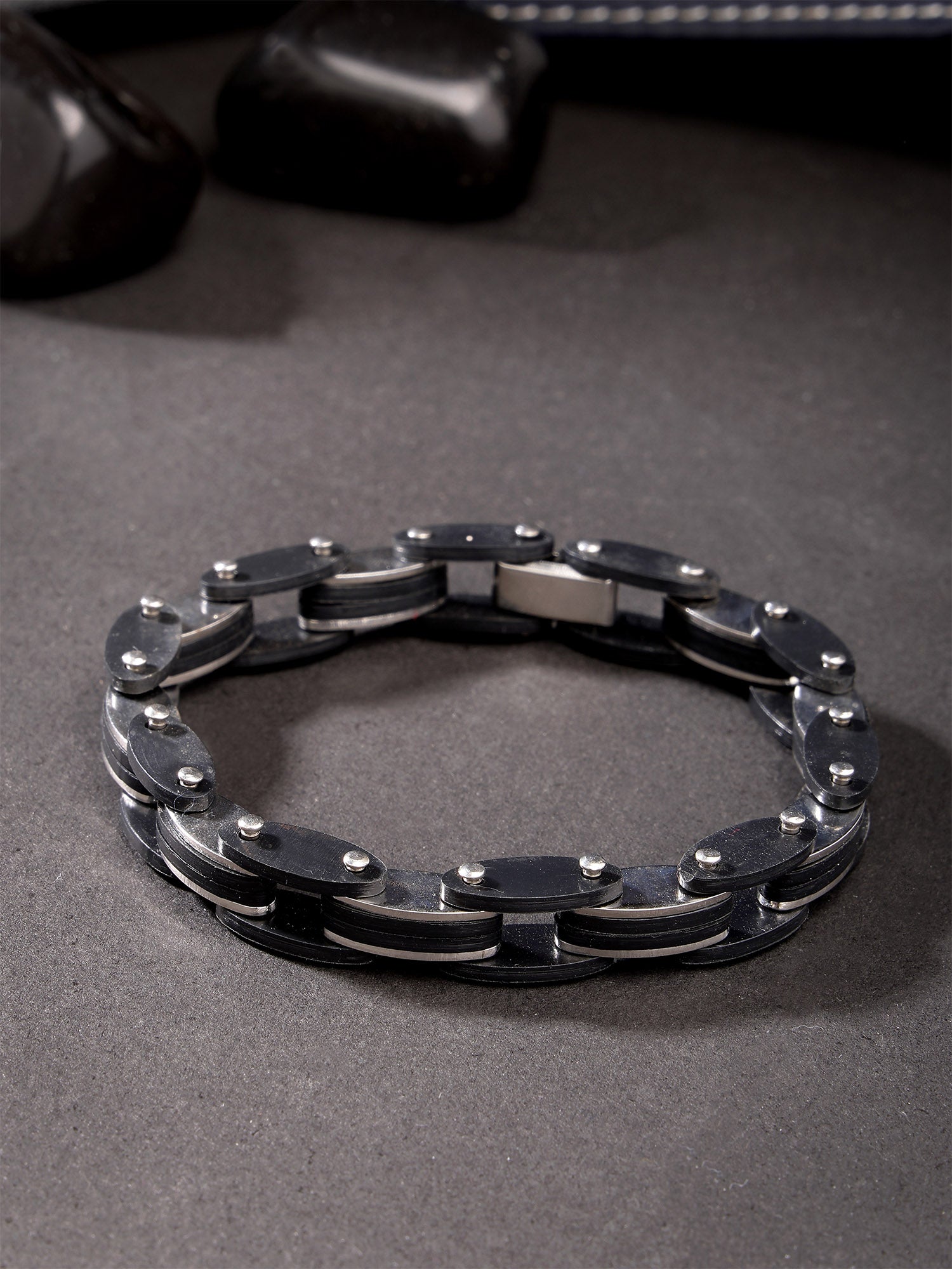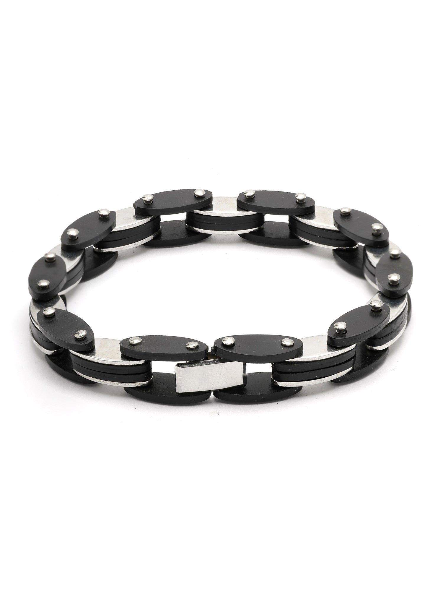 Bohey by KARATCART Black and Silver Link Bracelet for Men