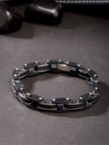 Crafted with precision and style, this fashionable bracelet is designed to make a bold statement. Its chunky and contemporary design sets it apart, making it an eye-catching piece that's perfect for both everyday wear and special occasions. This bracelet is more than just a piece of jewelry; it's a statement of personal style. The chunky chain links are meticulously crafted to provide a comfortable fit while maintaining a robust and masculine appearance. The eye-catching design is sure to draw compliments and admiration, making you stand out in any crowd.