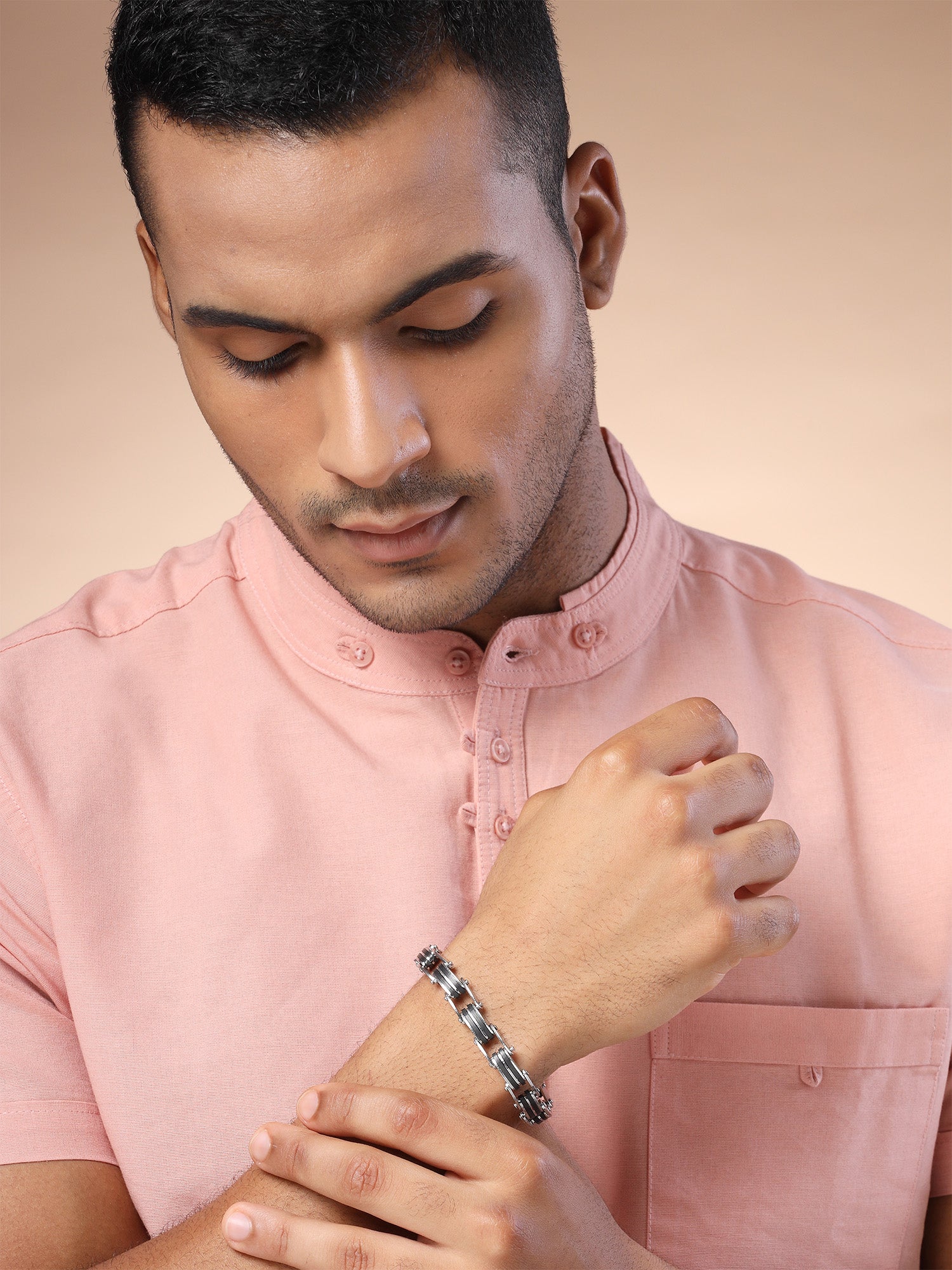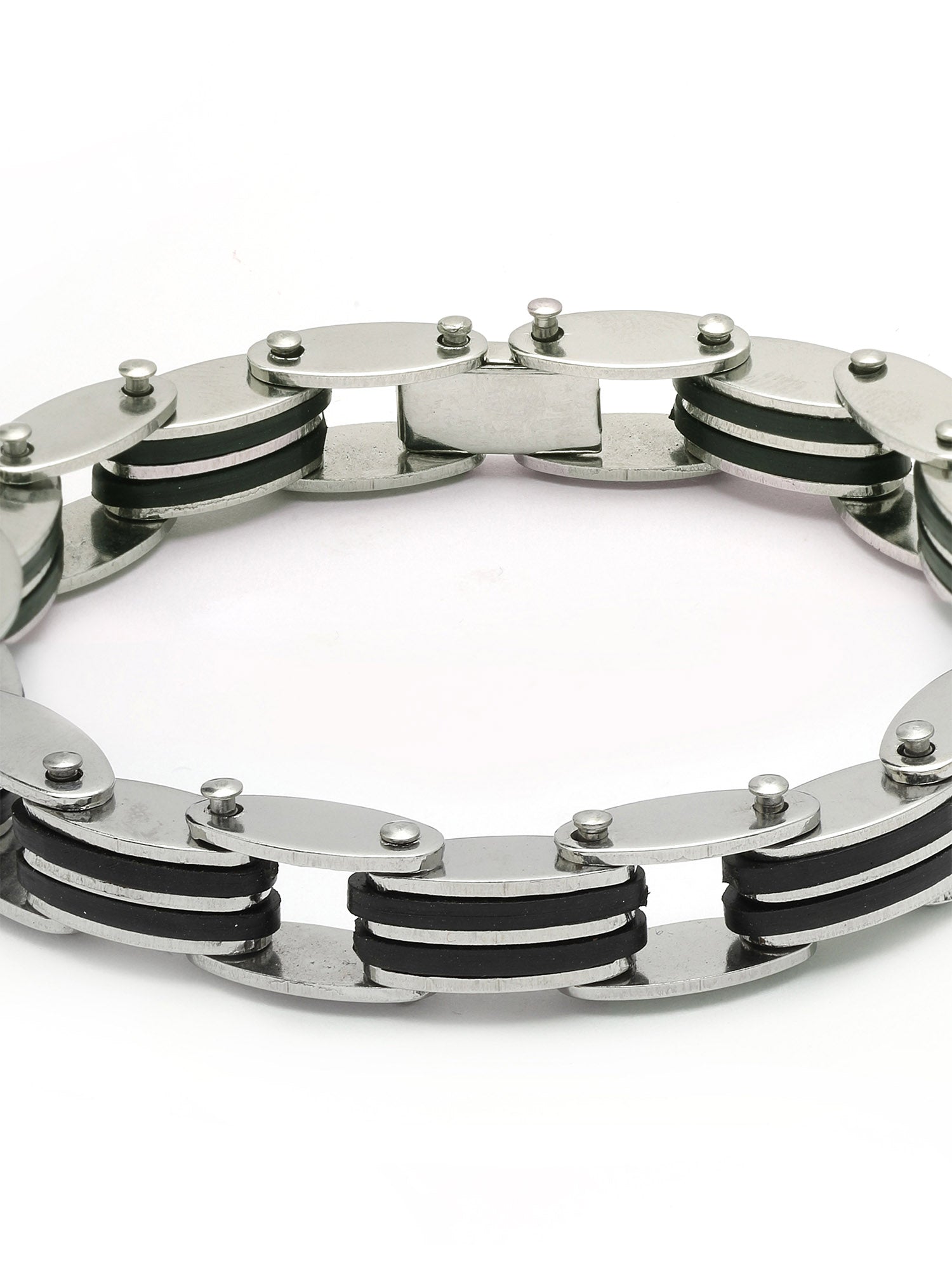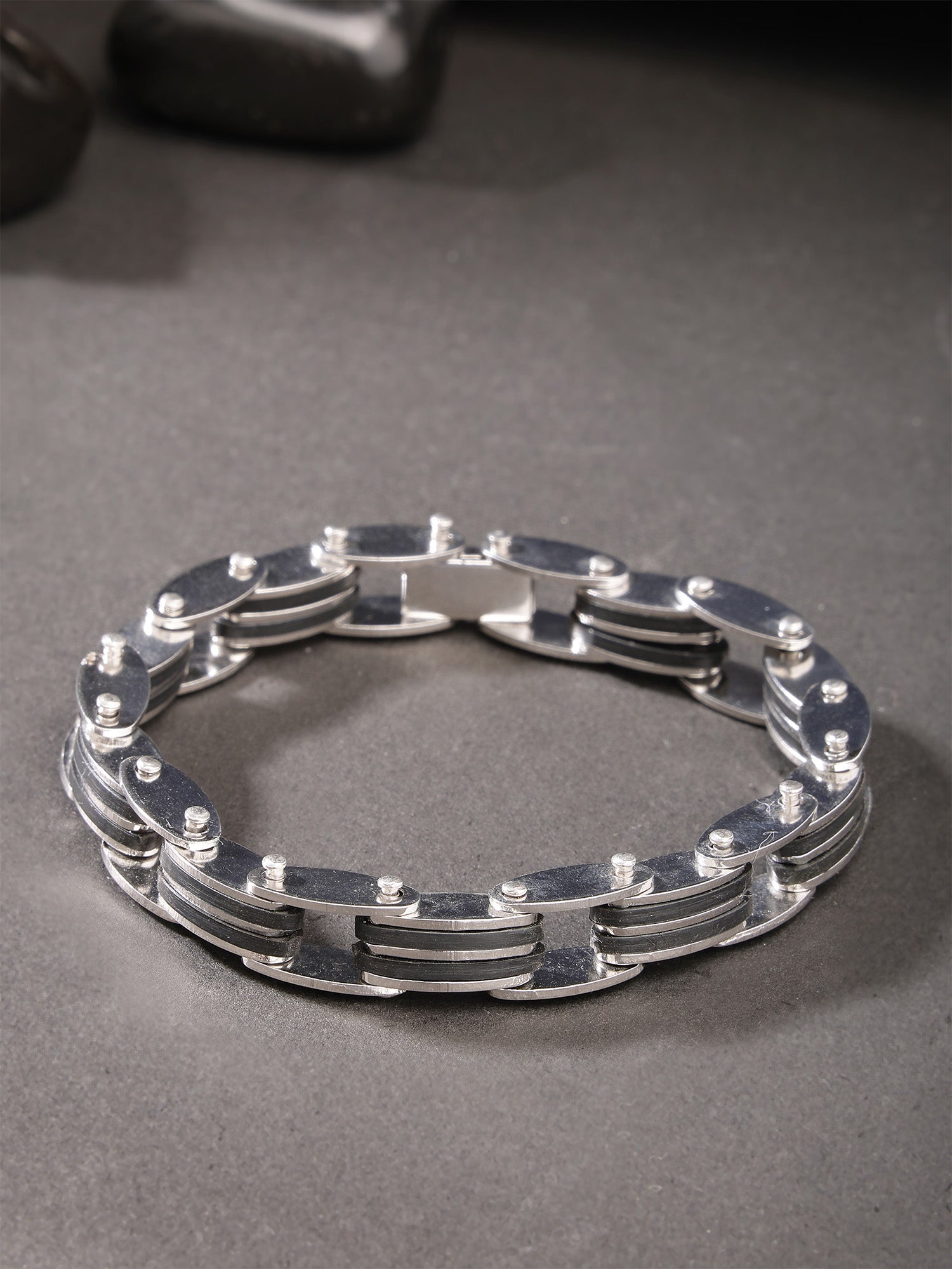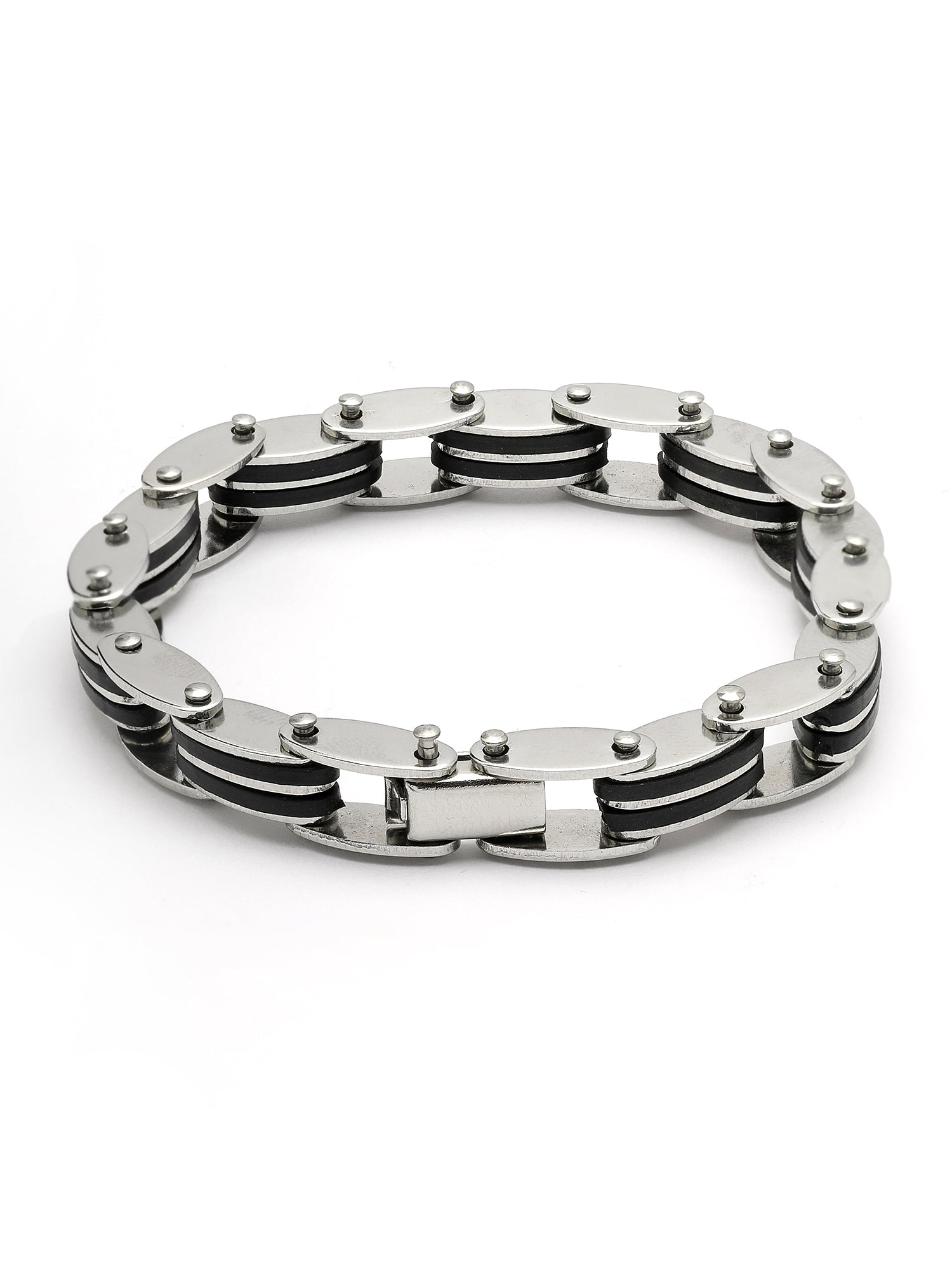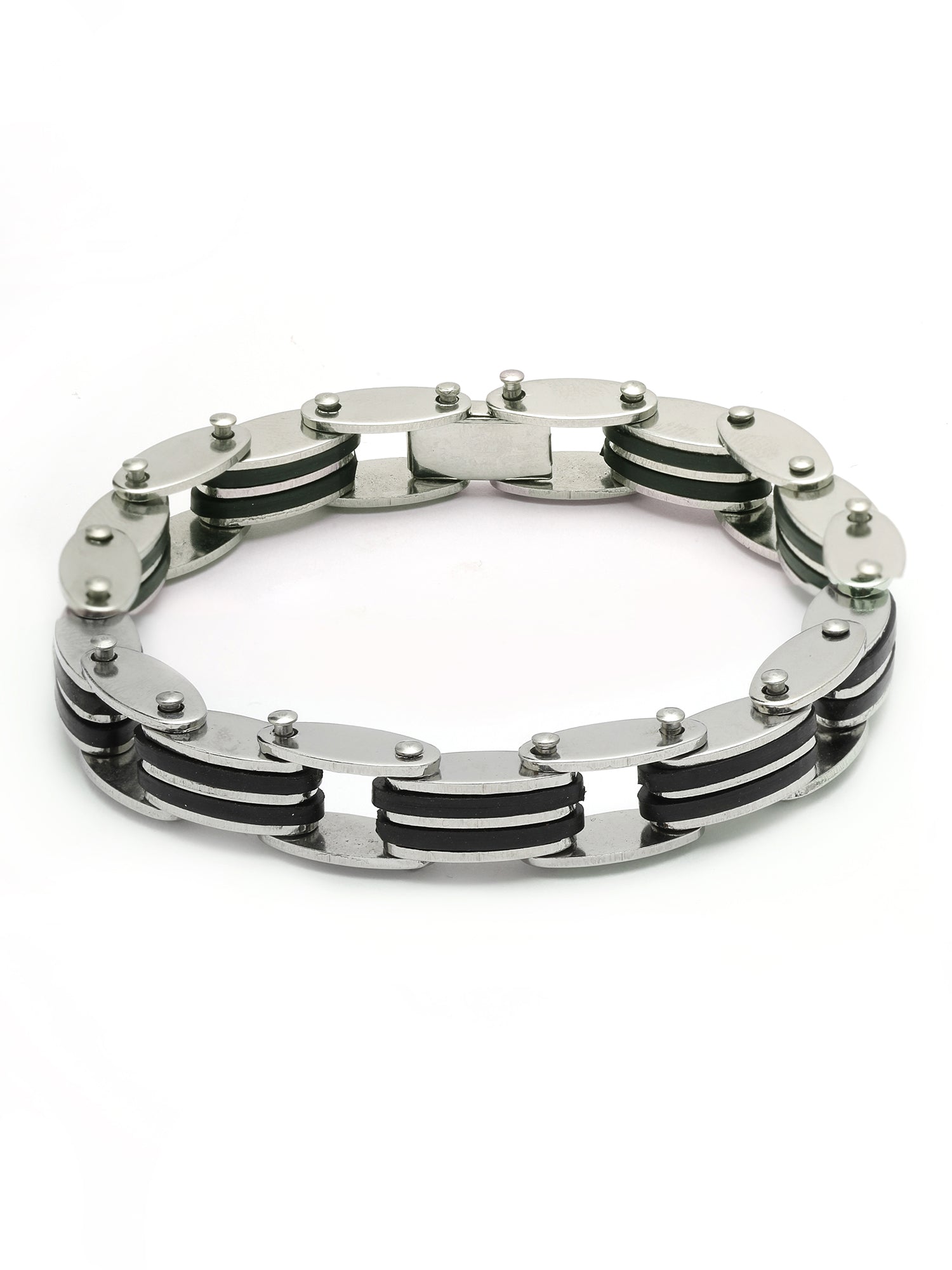 Bohey by KARATCART Black and Silver Link Bracelet for Men