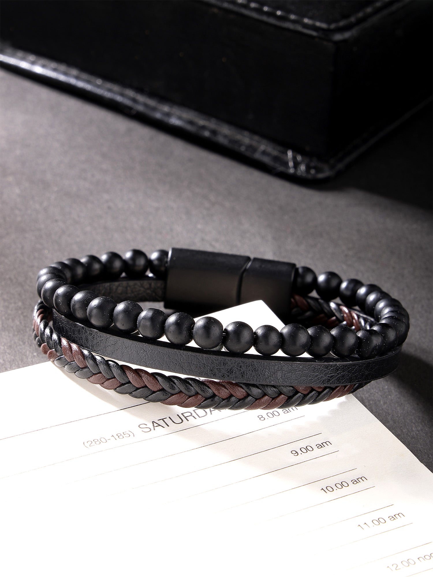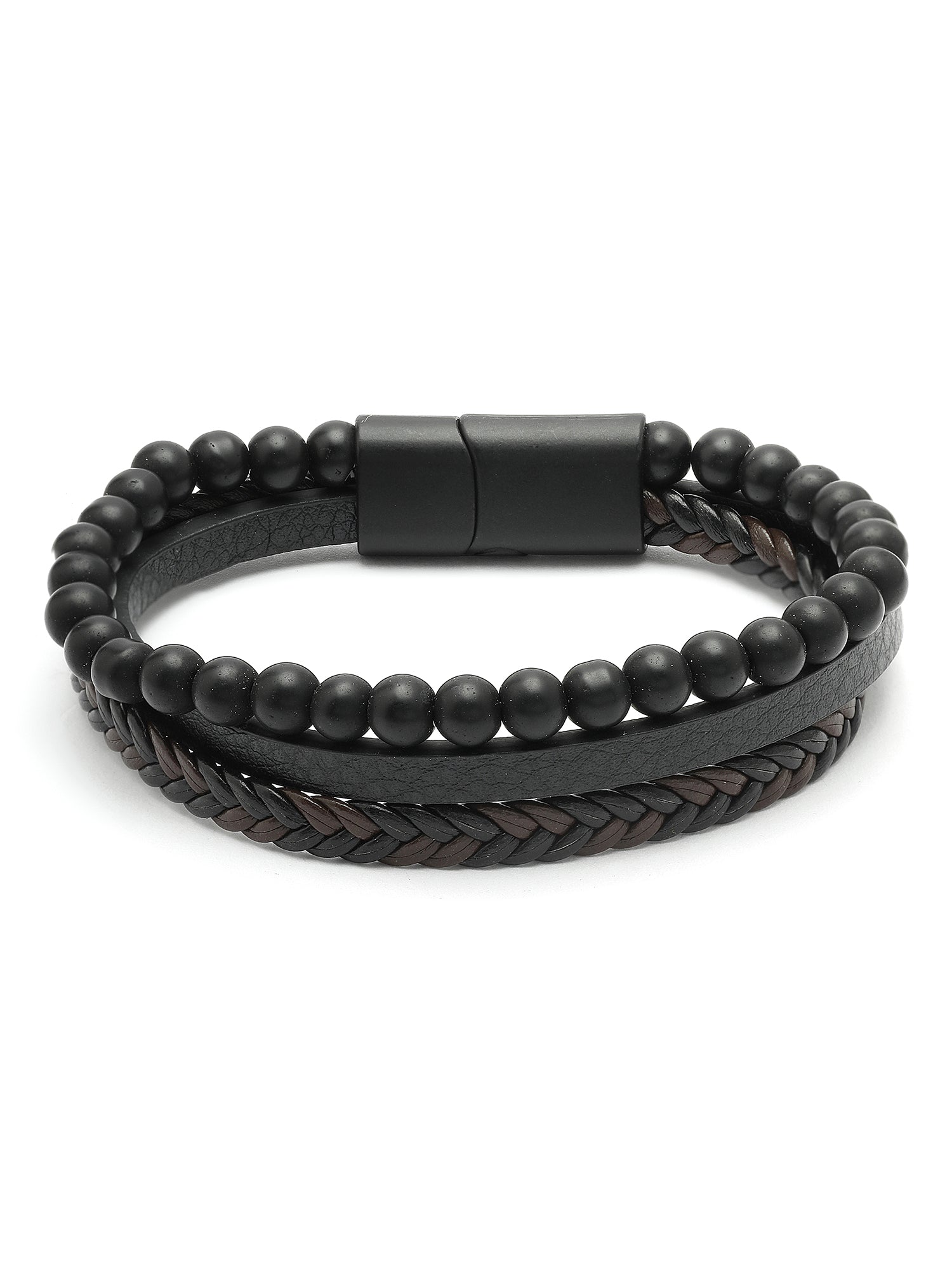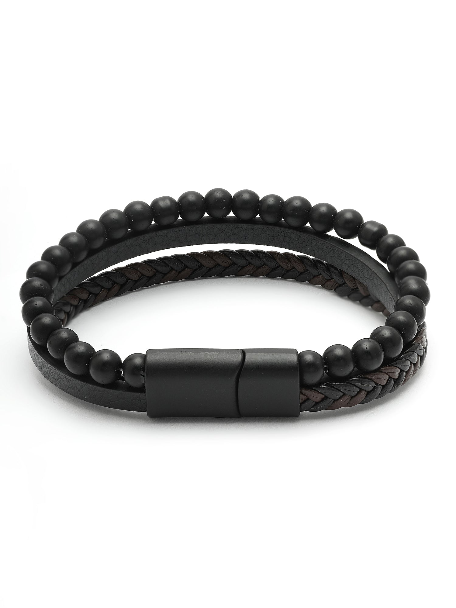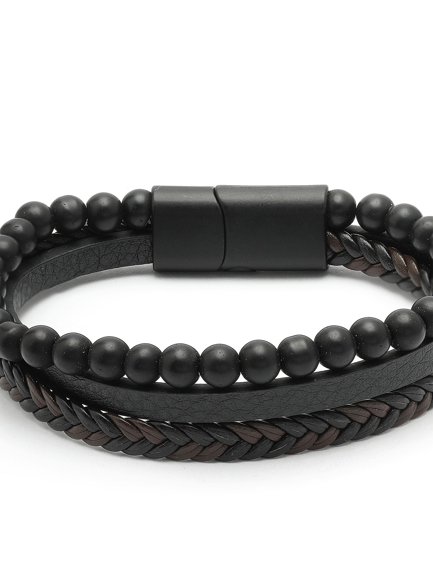 Bohey by KARATCART Black and Silver Link Bracelet for Men