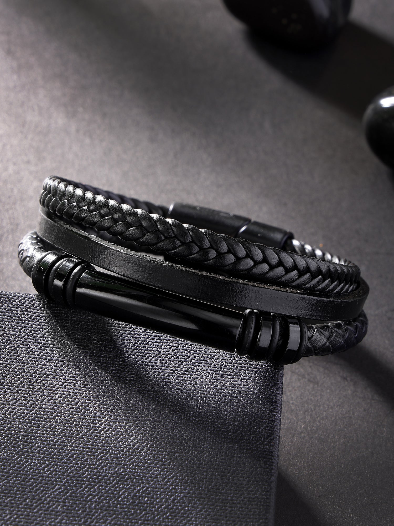 Bohey by KARATCART Black and Silver Link Bracelet for Men