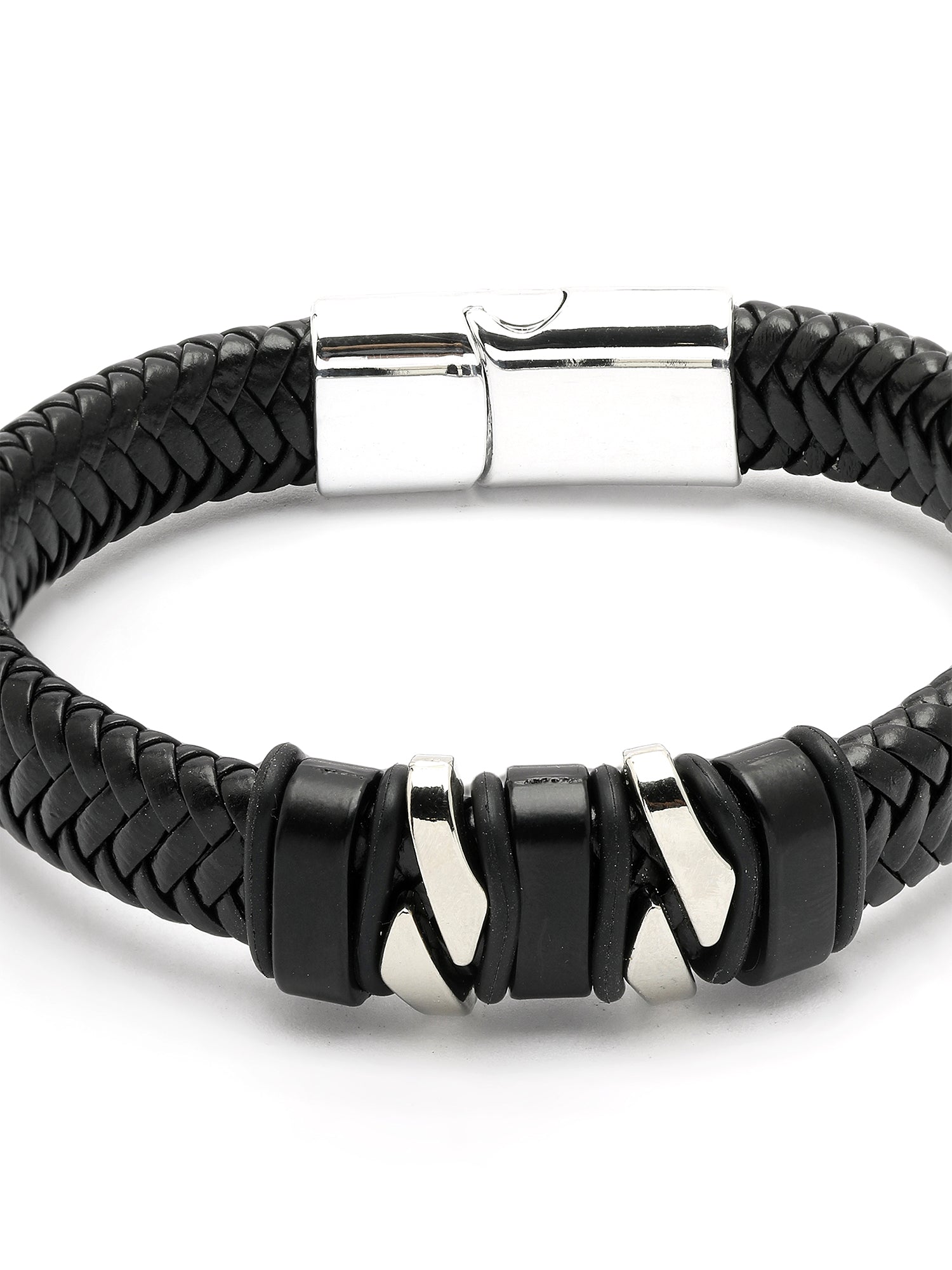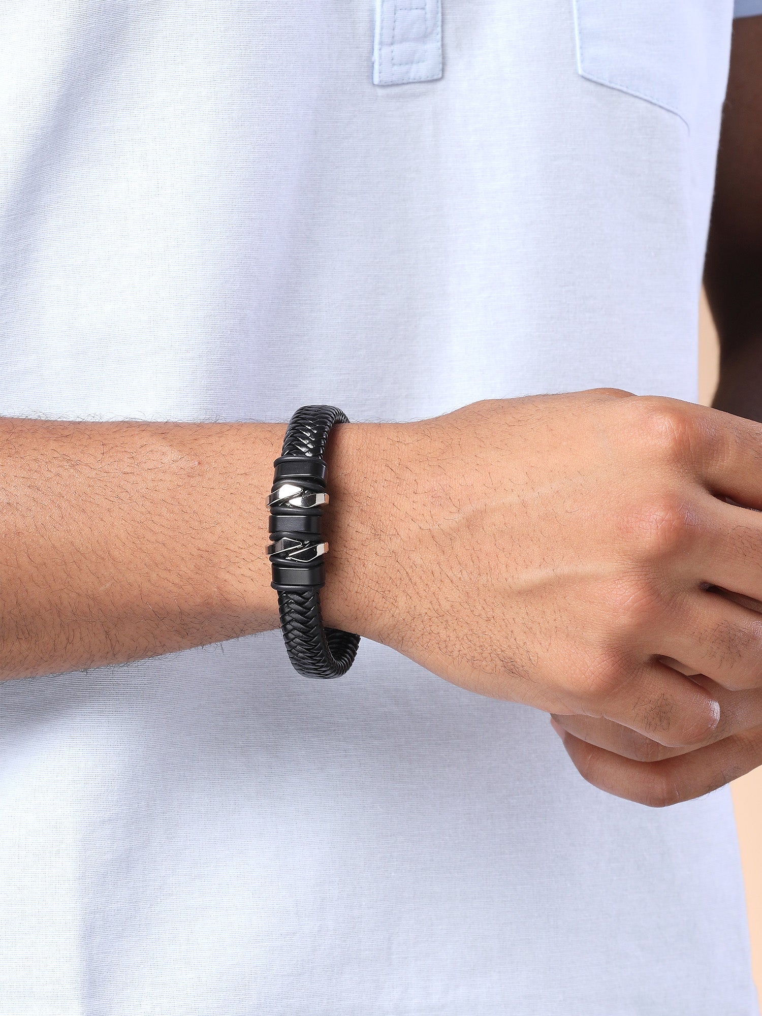 Bohey by KARATCART Black and Silver Link Bracelet for Men