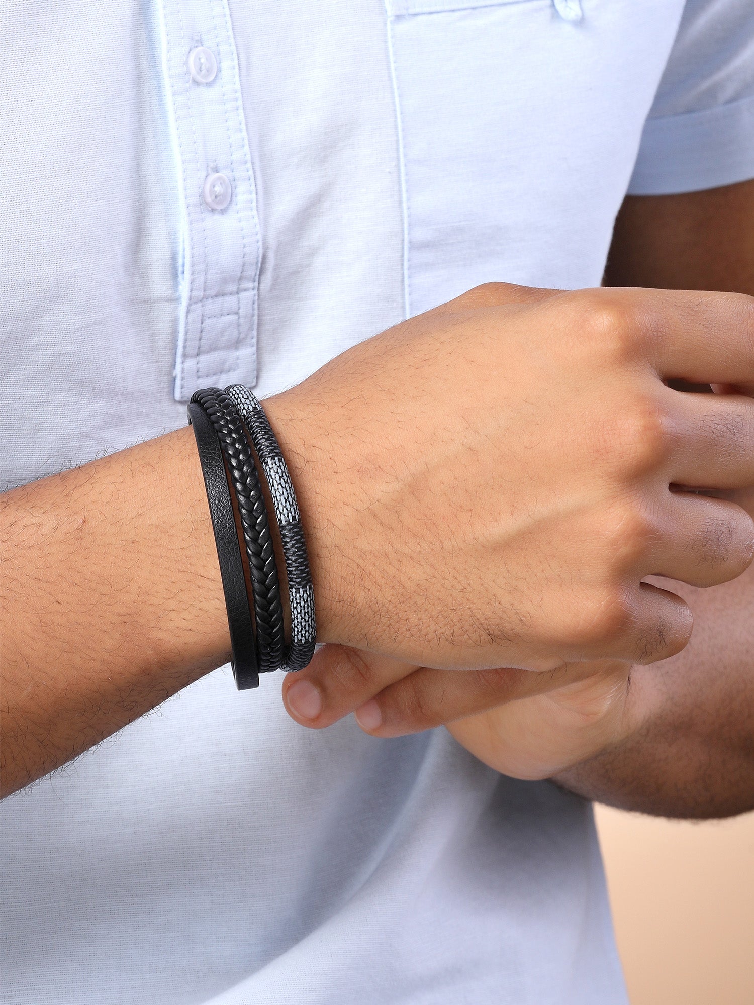 Bohey by KARATCART Men Leather Multistrand Wraparound Bracelet