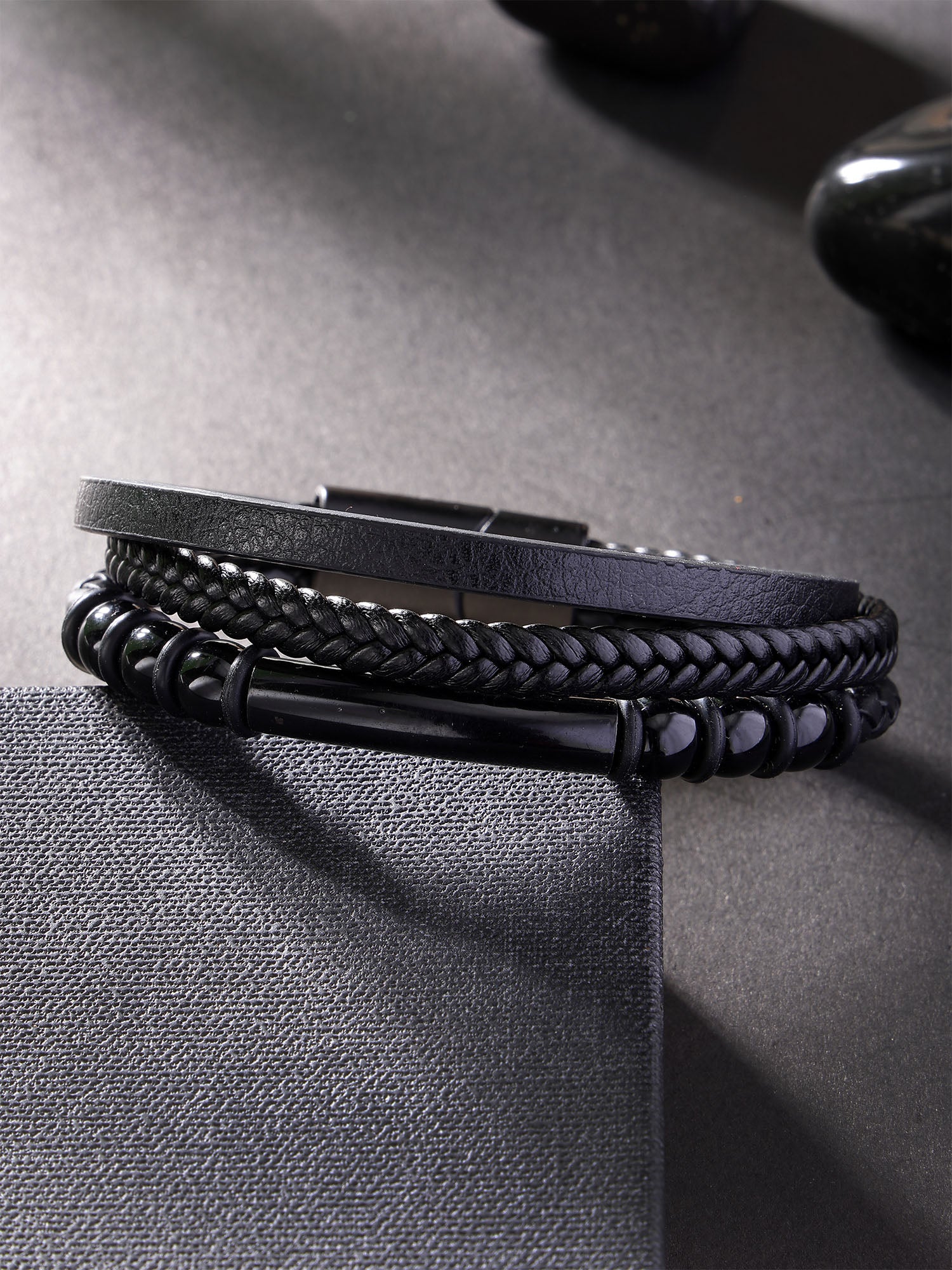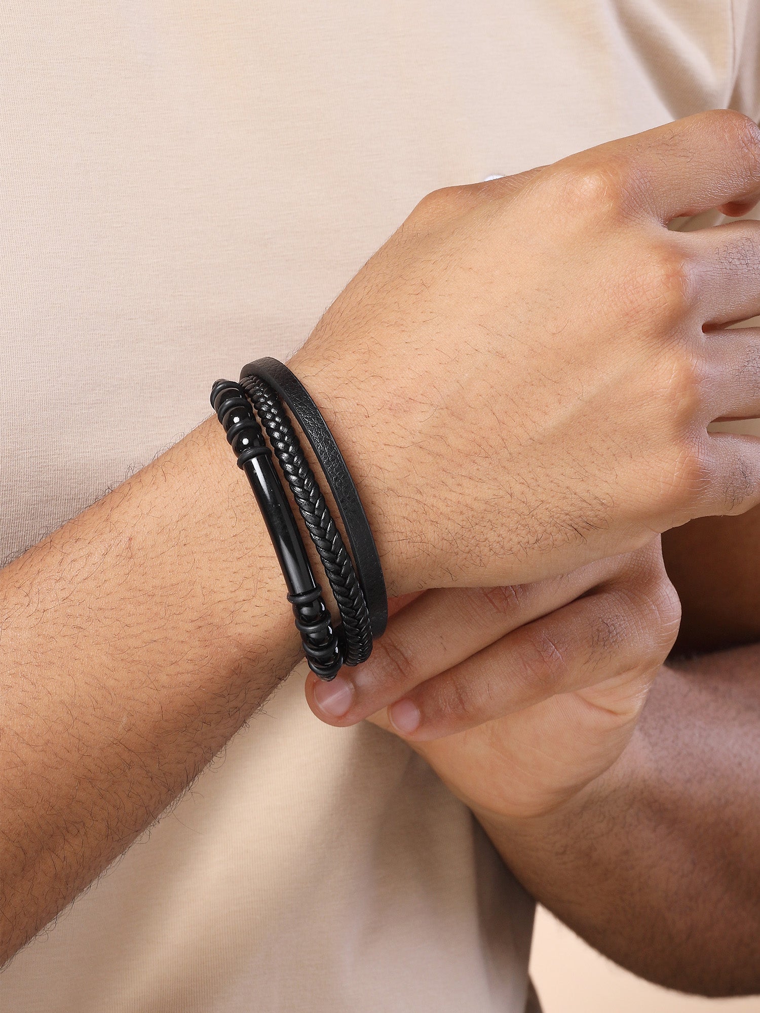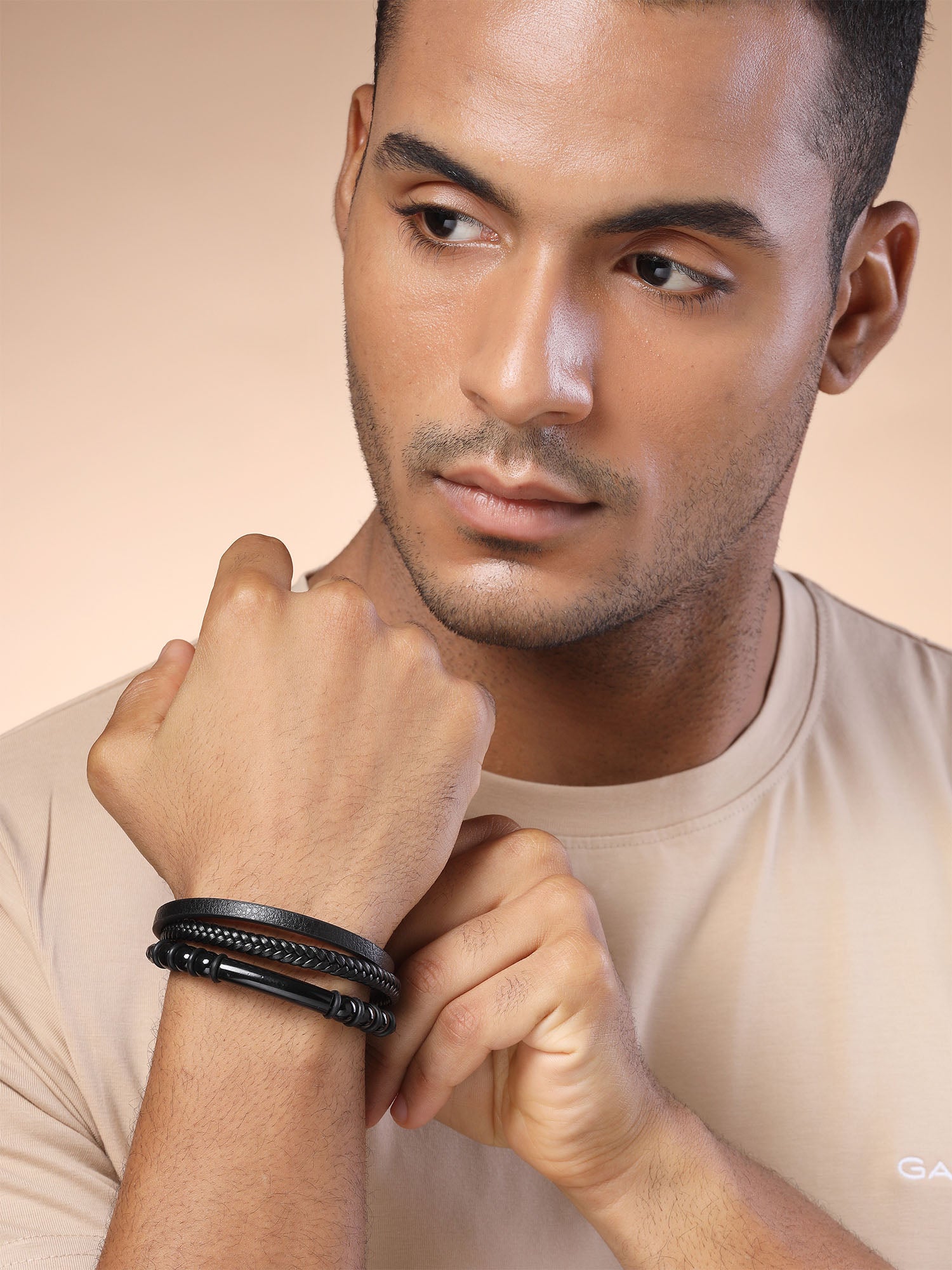 Bohey by KARATCART Men Leather Wraparound Bracelet