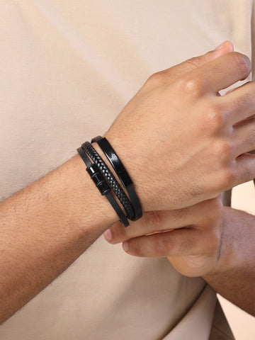 Bohey by KARATCART Men Leather Wraparound Bracelet