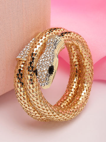 Bohey by KARATCART Gold Plated Cubic Zirconia Studded Snake Chain Bracelet for Women