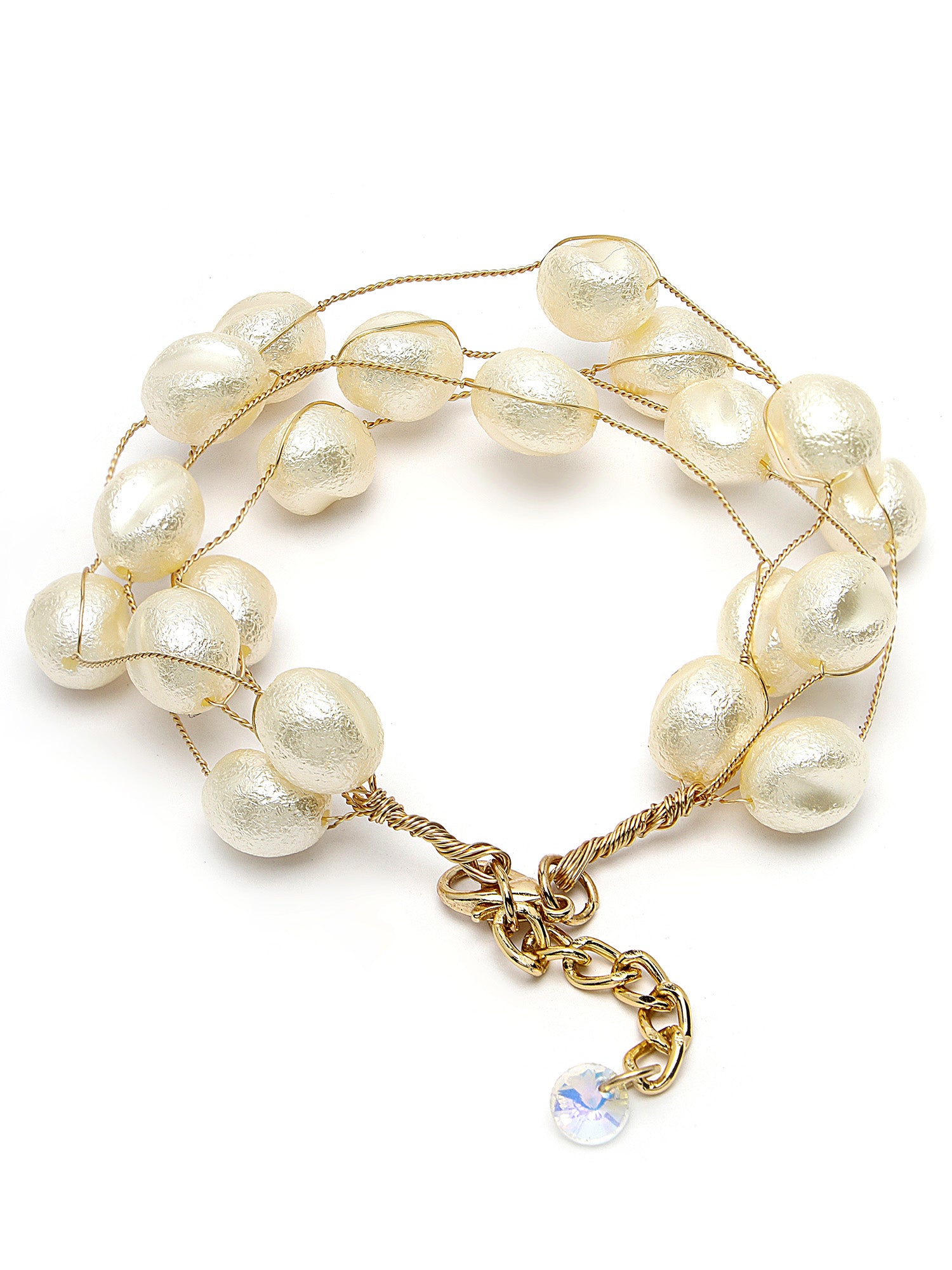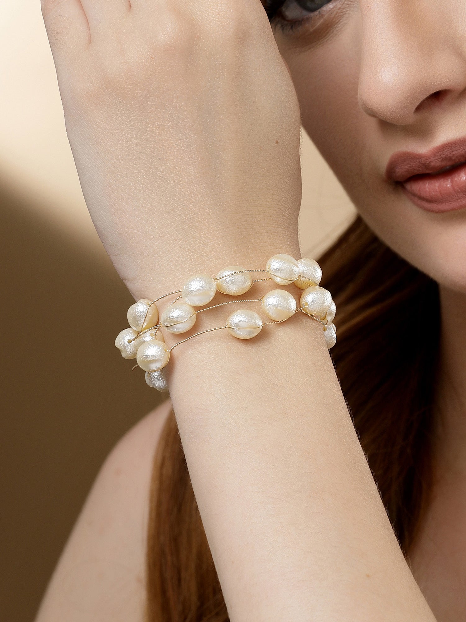 Bohey by KARATCART Gold Plated Multilayer Baroque Pearl Chain Bracelet for Women