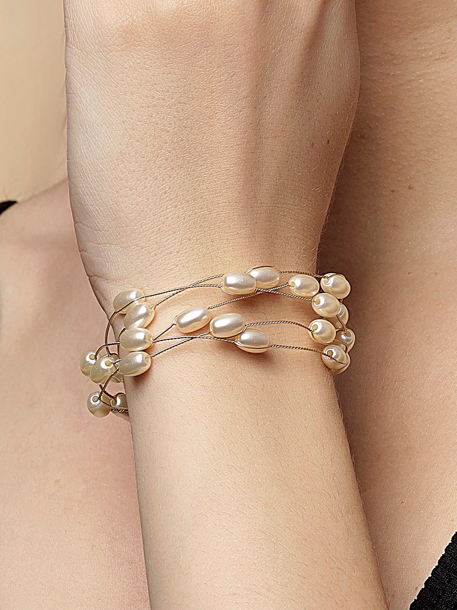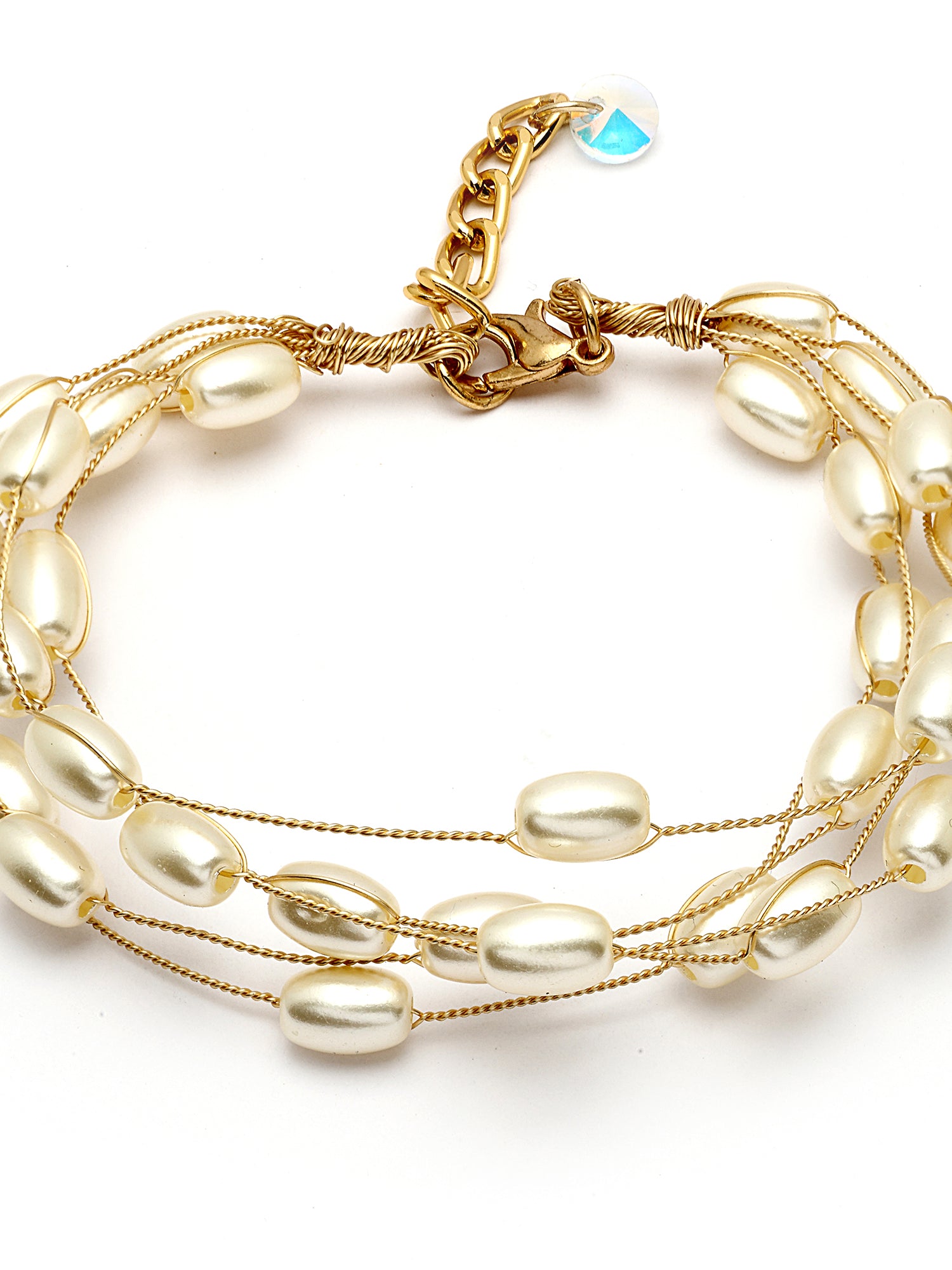 Bohey by KARATCART Gold Plated Multilayer Baroque Pearl Chain Bracelet for Women