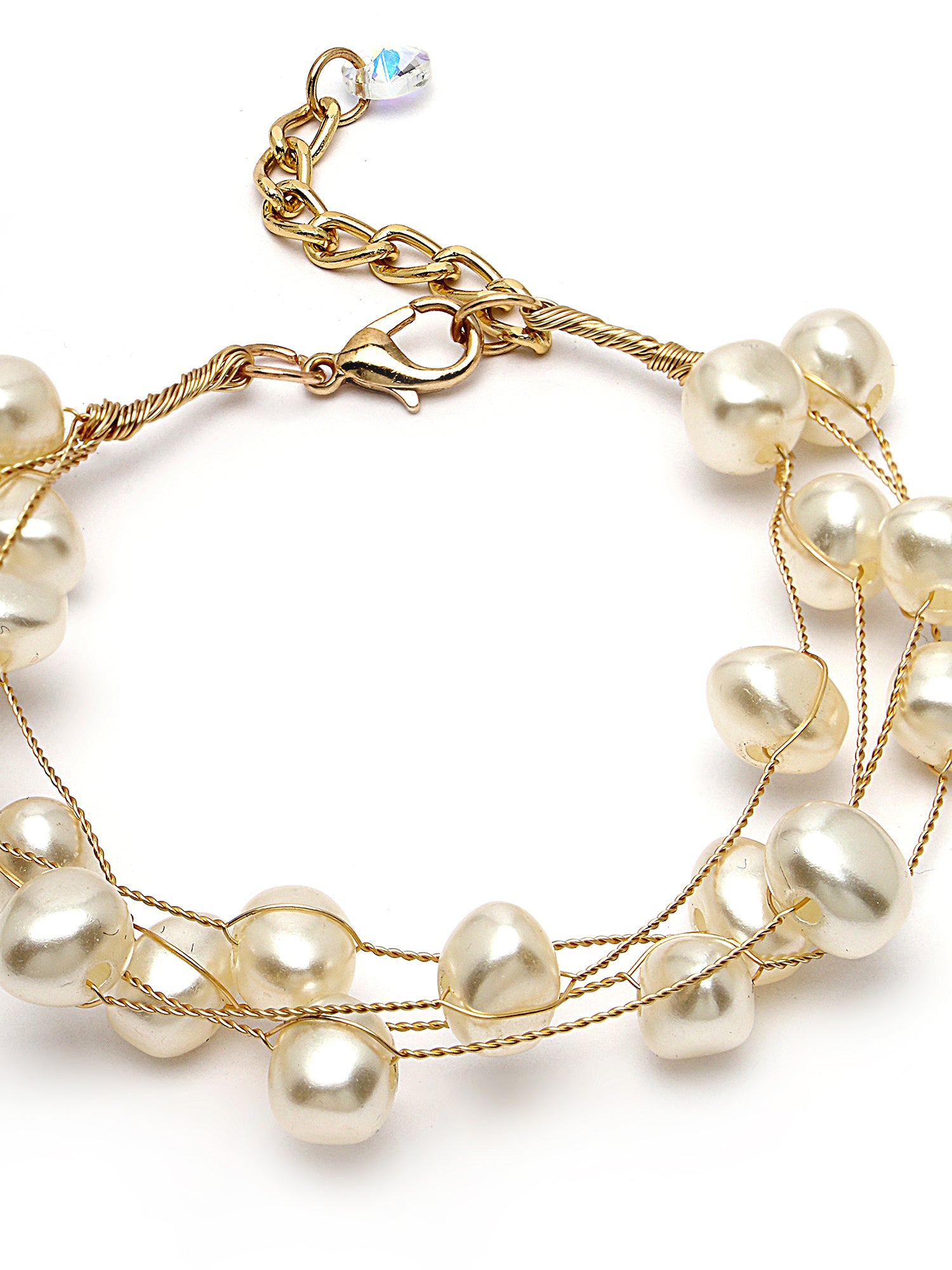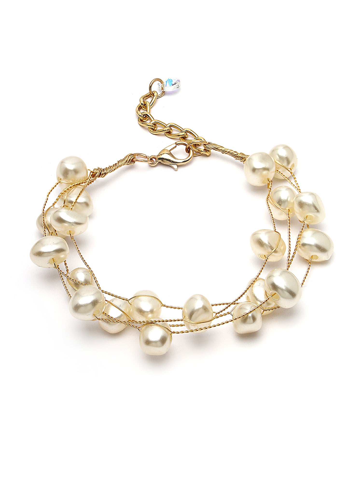 Bohey by KARATCART Gold Plated Multilayer Baroque Pearl Chain Bracelet for Women